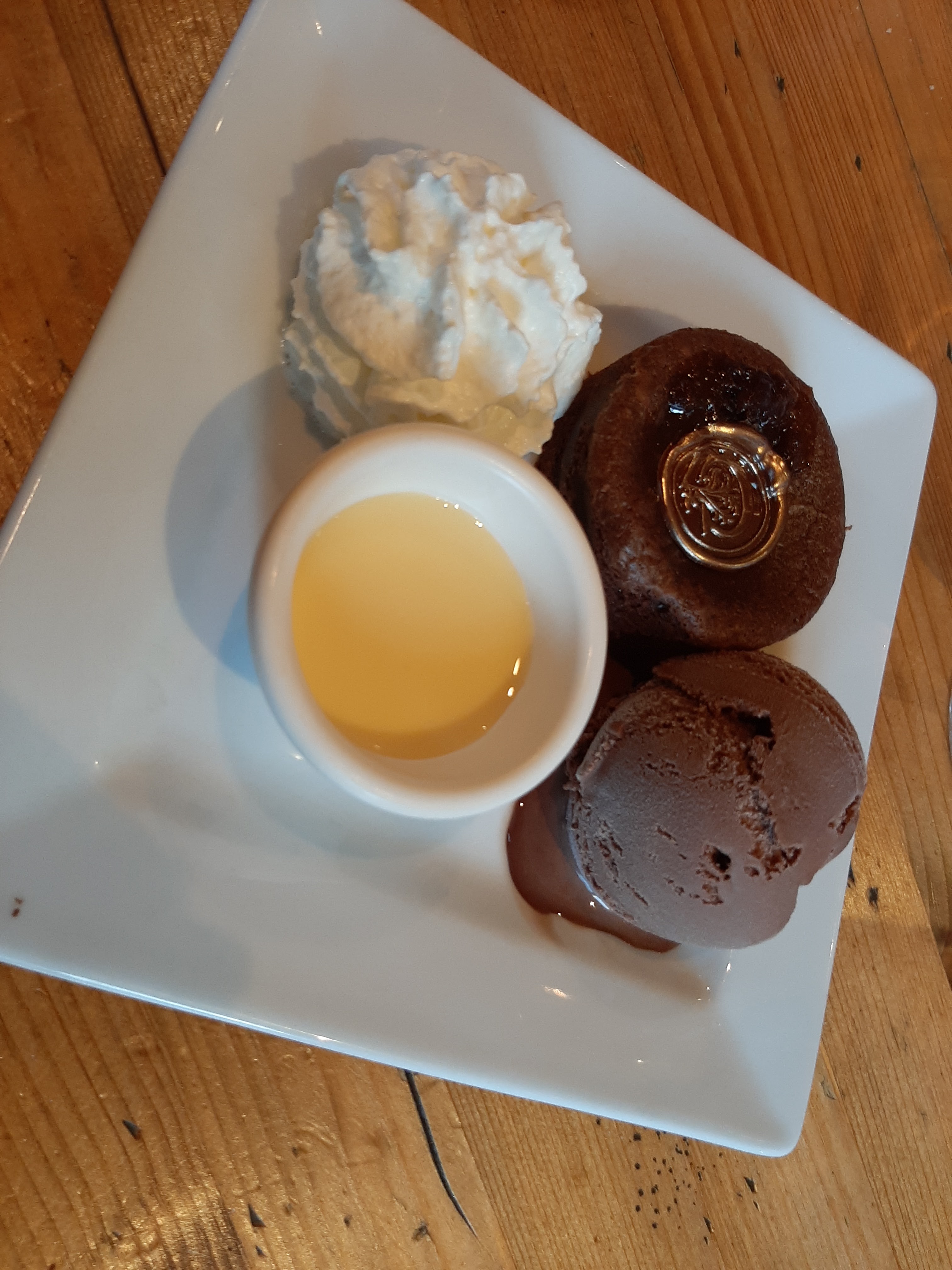 Nous y avons mangé la soupe chatrée (excellente) et en dessert le moelleux au chocolat ainsi que le moelleux au caramel avec la crème anglaise et une boule de glace abricot (dessert à tomber par terre) le moelleux est confectionné par le chocolatier du village et franchement c'est un régal. La patronne et la serveuse sont hyper gentille et souriante. Merci pour cette soirée détendue et pleine de saveur