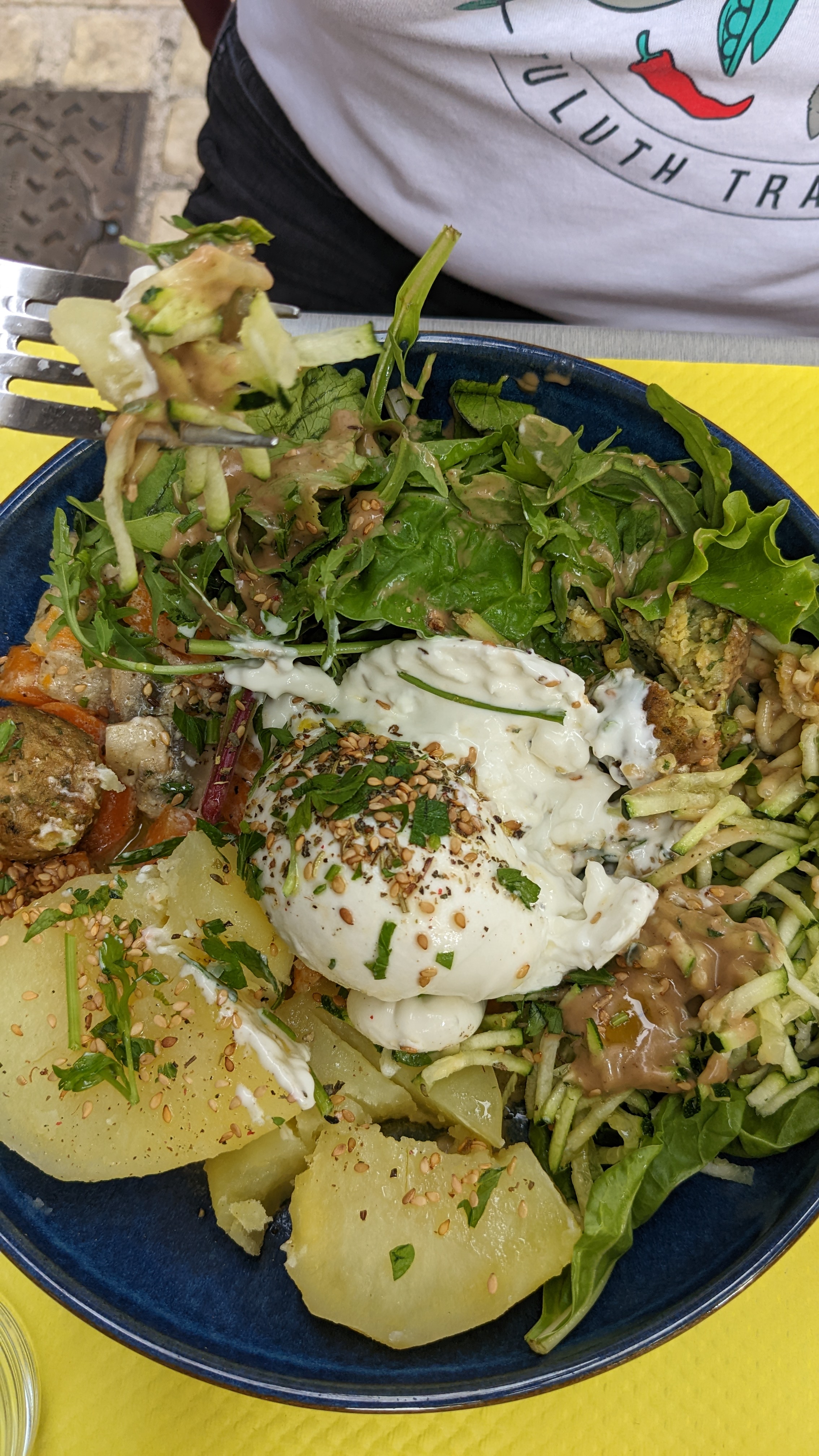 L'assiette végétarienne était un régal ! (et consistante aussi). Le mélange d'épice, un vrai délice. On a voulu réserver le midi pour le soir en pleine fête votive et le patron s'est débrouillé pour que l'on puisse venir manger ! Moment super ! Merci !