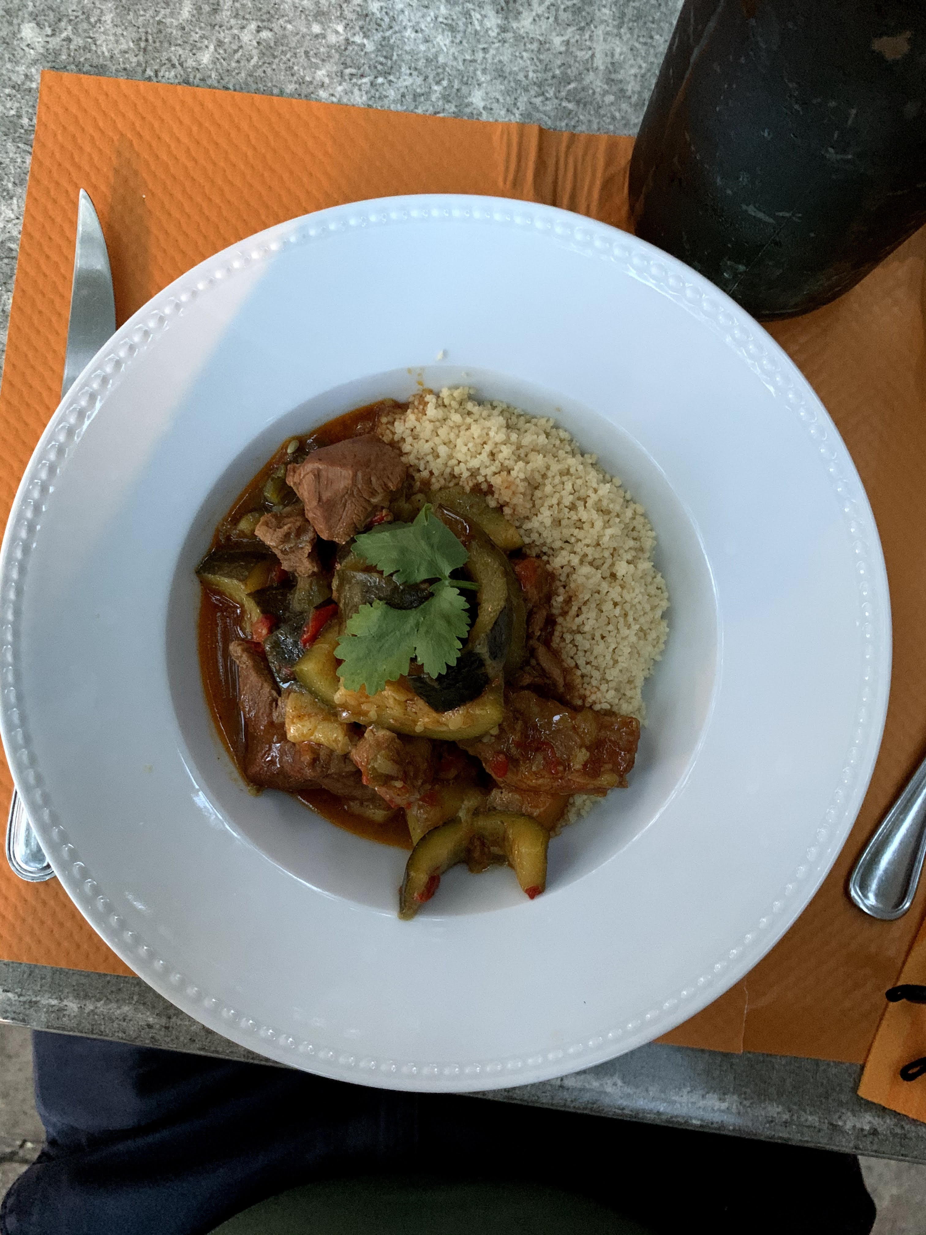 Parfait du service au plat rien à redire. Très bel accueil Cuisine faite maison Tajine d agneau un vrai délice Serveur adorable Ça fait plaisir de voir des adresses aussi parfaites Mérite bien son guide du routard Merci pour ce bon moment et merci au serveur pour sa très grande gentillesse