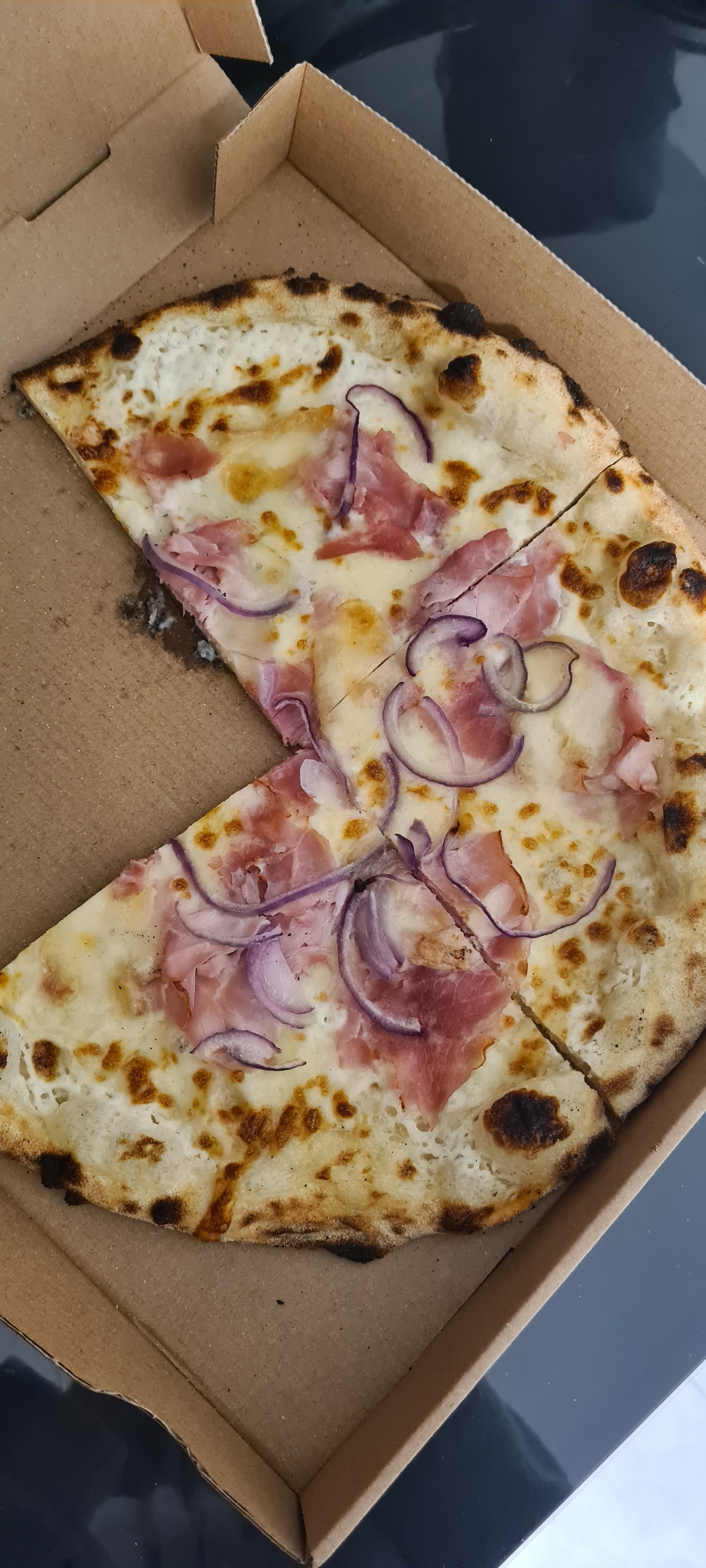 Les pizzas sont très bonnes. Nous y avons été trois-quatre fois et avions été plutôt satisfait. Malheureusement hier soir nous avions commandés deux pizzas (une mortadella et une burrata), mais la mortadella nous a été servi avec un supplément « ver/asticot » qui n’était pas vraiment souhaité, ni souhaitable. Visiblement nous n’étions pas les seuls à qui cela est arrivé et un autre commentaire d’il y a un mois signal le même problème. Après les avoir appelés, ils ont proposés de nous en offrir une seconde Mortadella, sans asticot cette fois-ci. La seconde n’avait plus ce problème pour le coup. C’est vraiment dommage car leurs produits sont vraiment très bon, et j’espère qu’ils prendront les mesures pour que cela ne se reproduise plus.