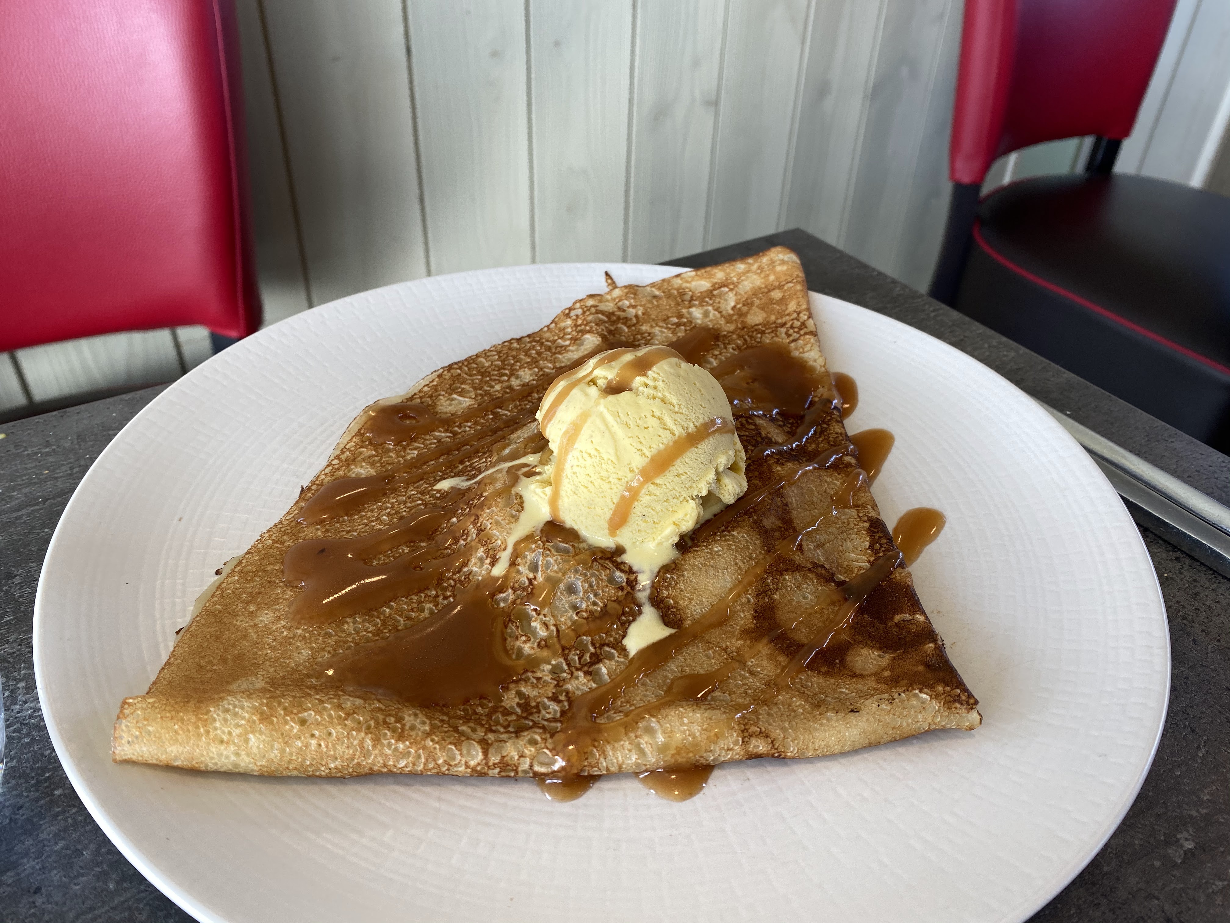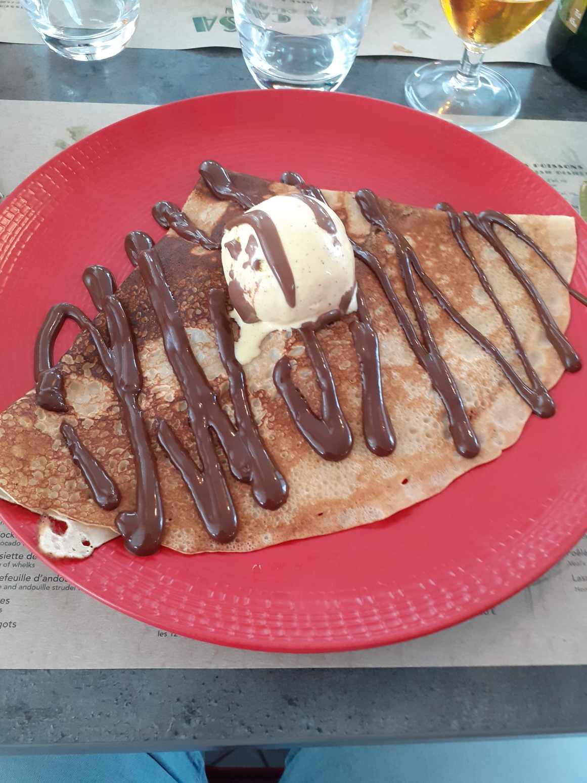 Génial ! Très bon et super rapport qualité prix !!! Un personnel super aimable et des plats très copieux ! Jolie terrasse ! Si je peux juste être tatillonne nous avons trouvé que la pâte à galette manquait légèrement de sel, mais la texture était formidable! Au plaisir de revenir !