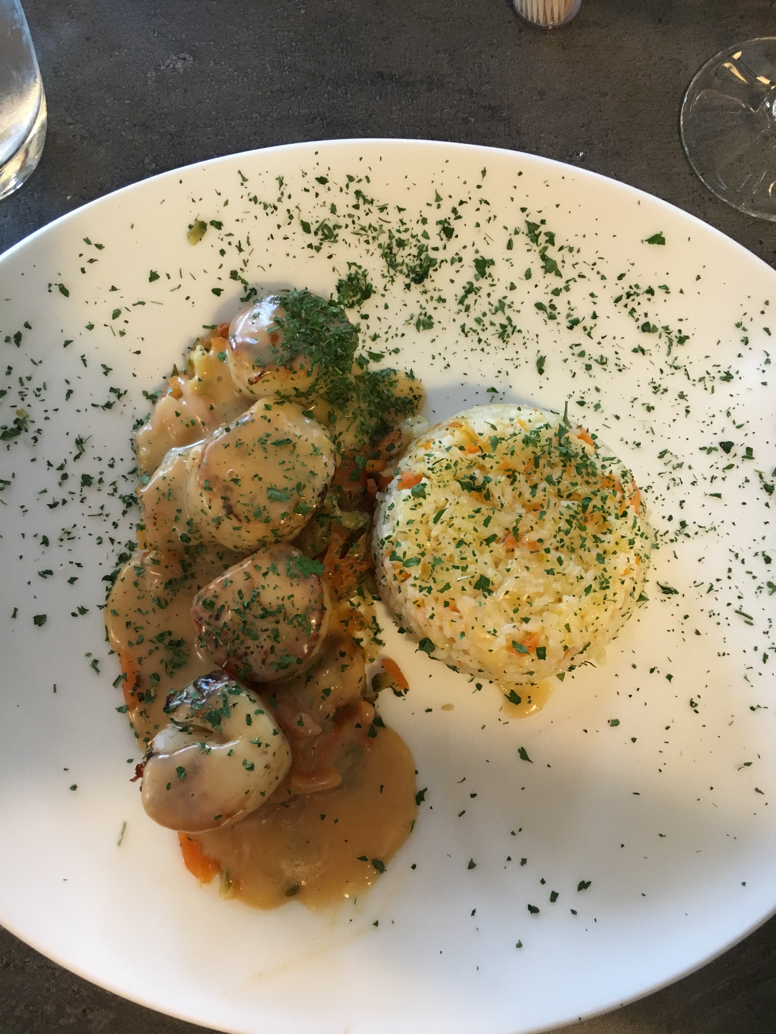 Nous avons choisi ce restaurant après avoir vu les photos des plats très alléchant... une tromperie car d'une part les plats vu sur les photos n'était pas à la carte (galette au noix de saint jacques)et d'autre part il semblerait (car je n'ai pas vu) que ce que l'on a mangé sort directement d'un sachet sous vide et direction micro onde ou bain marie (pavé de poisson avec un gros morceau de cartilage et pas cuit au milieu). Le service était très bien; Dommage nous nous sommes fié au standing chic de la déco du restaurant un flop pour ma part.