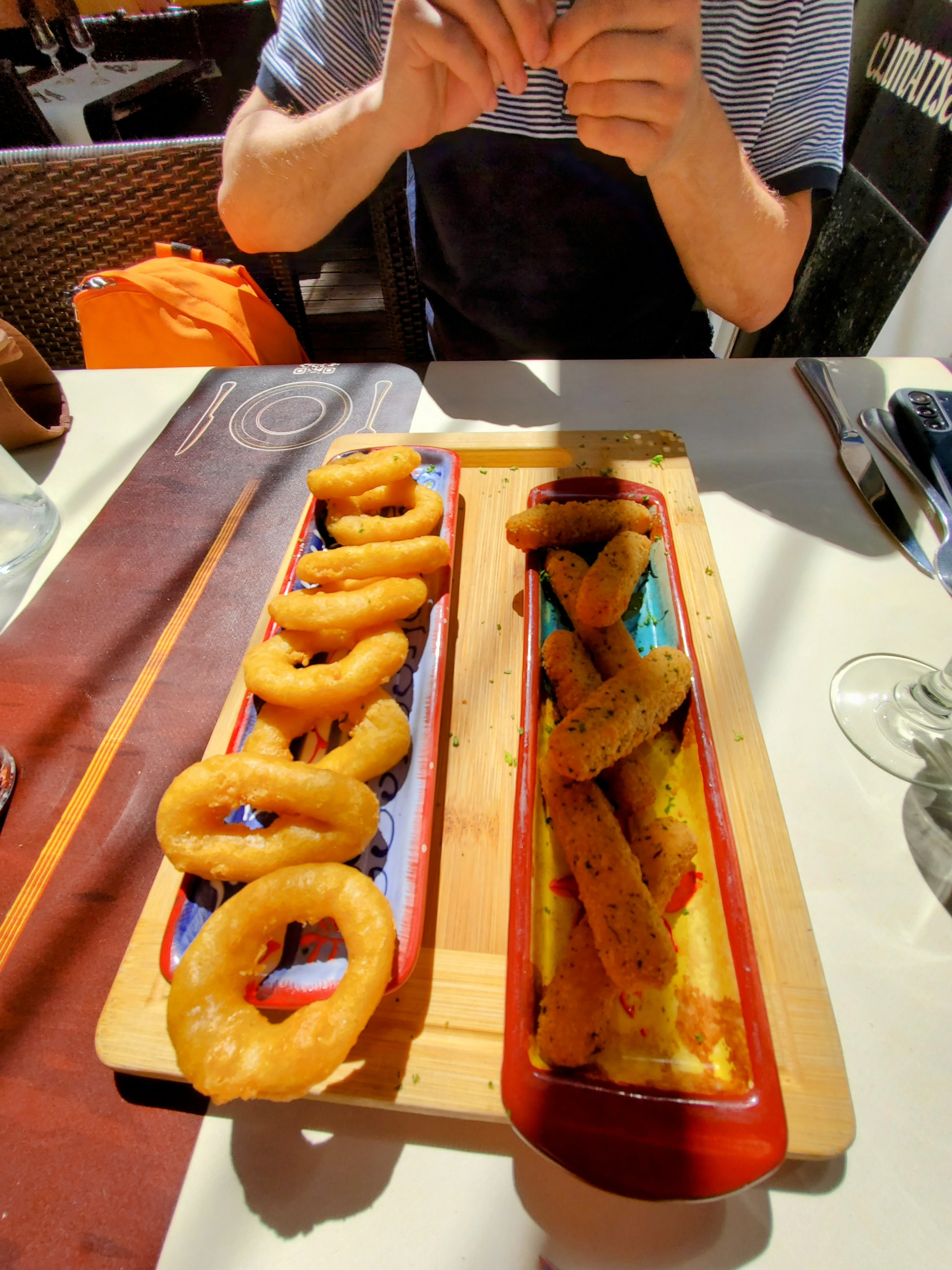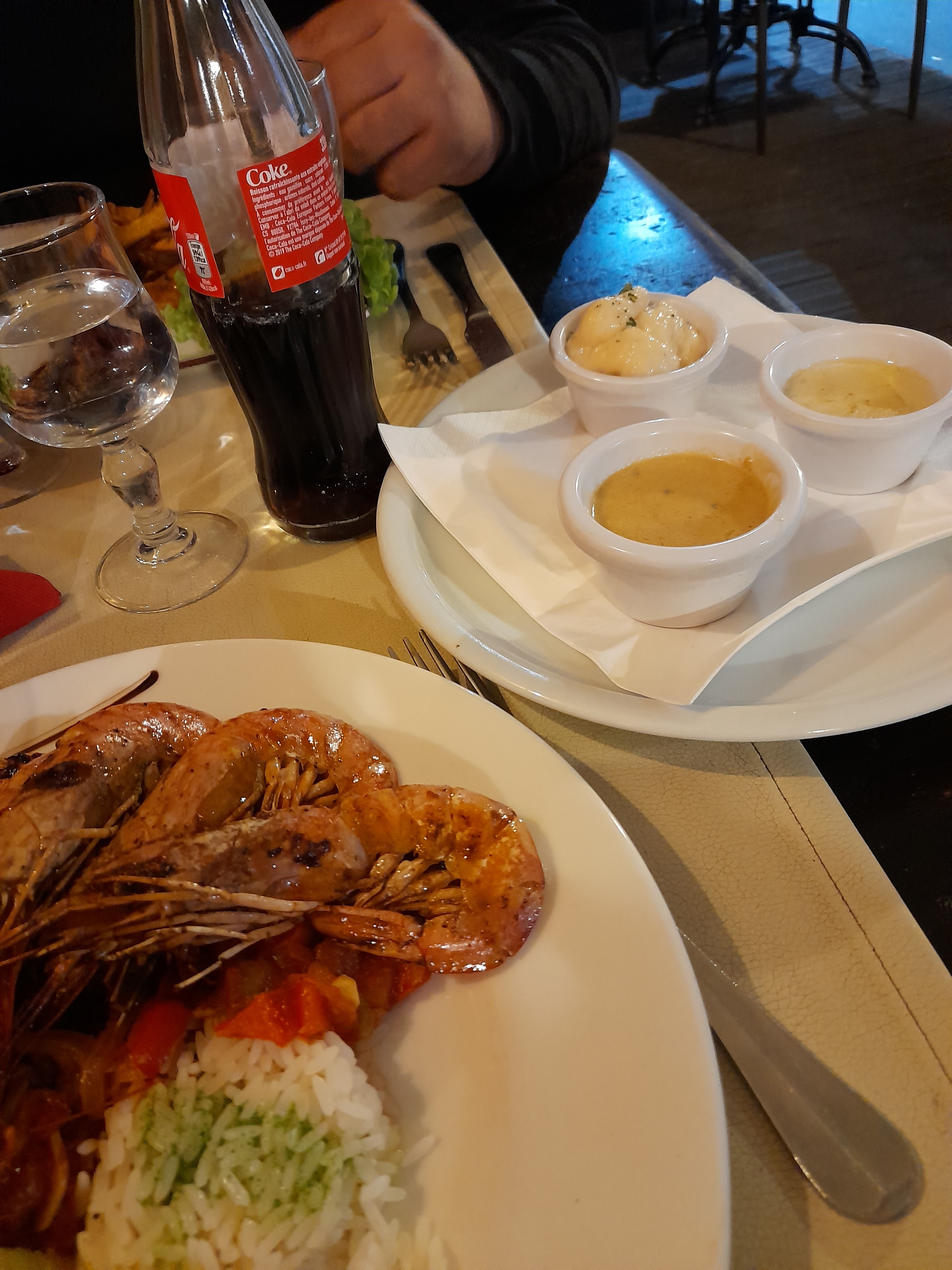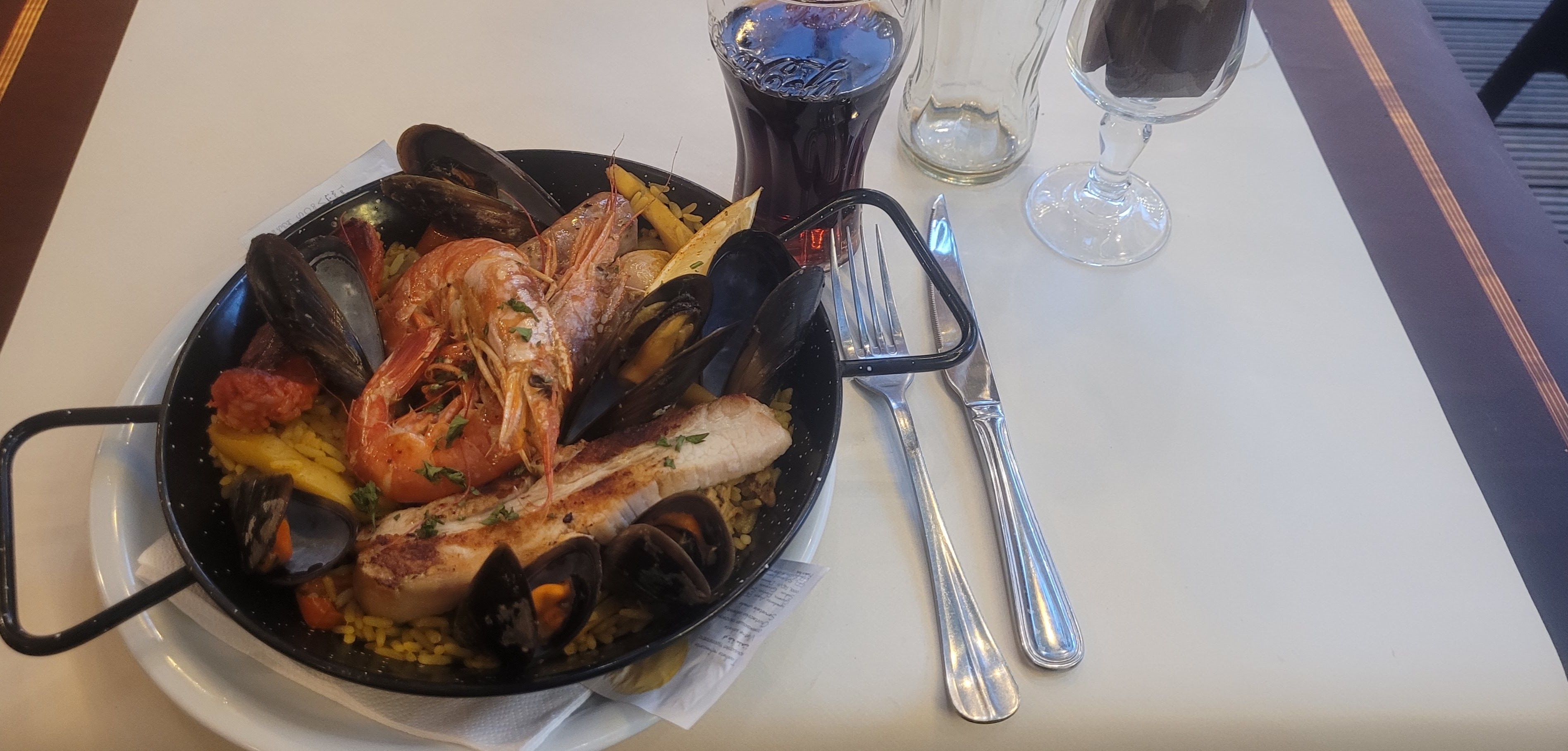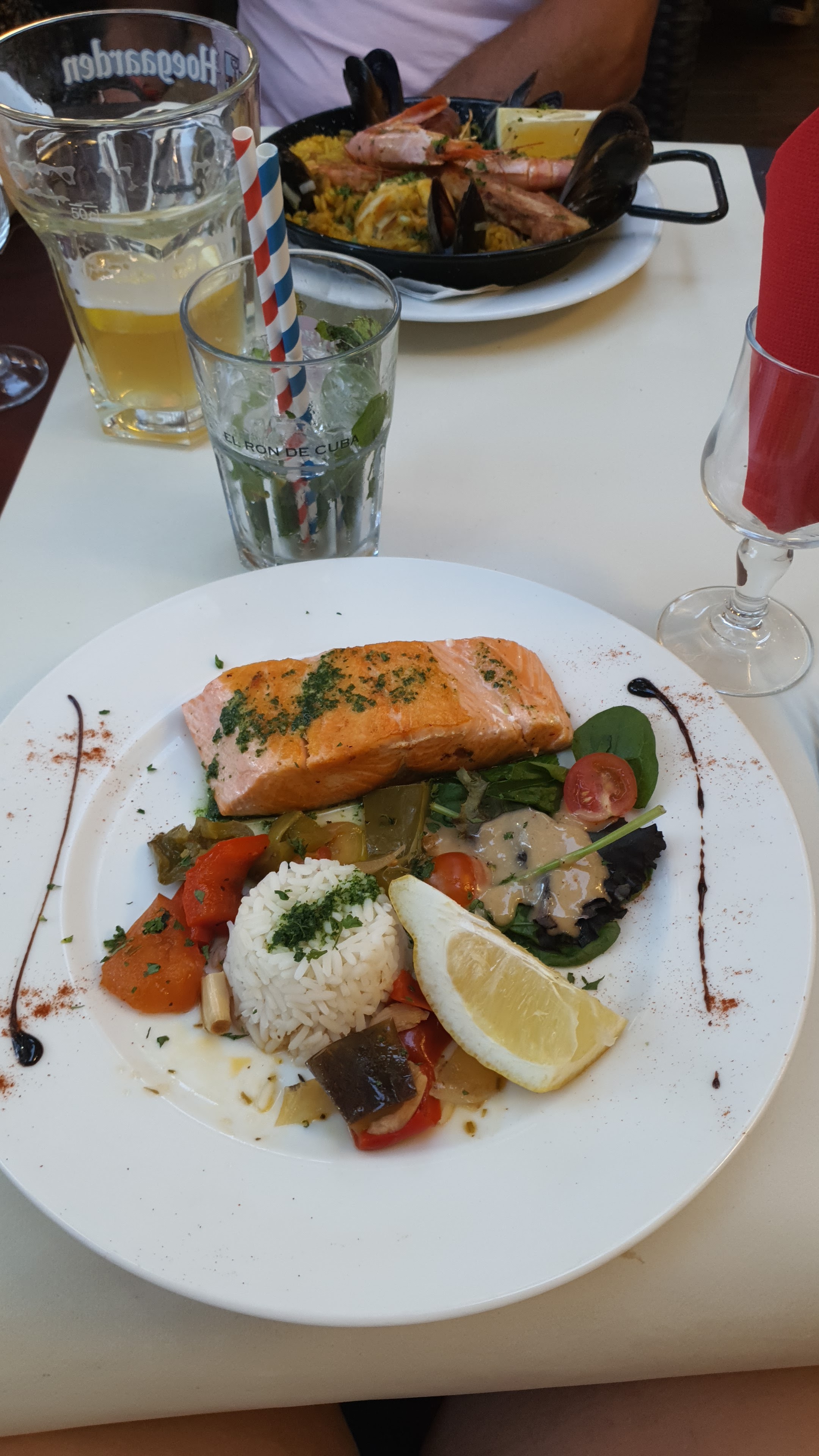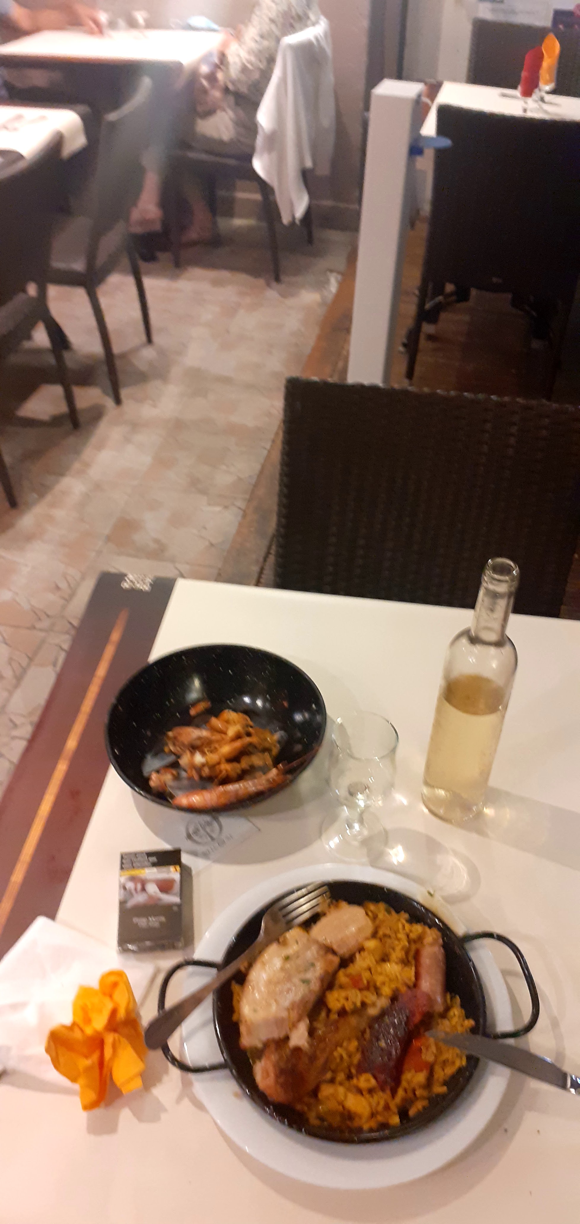 Nous avons très bien mangé a 2 reprises pendant nos vacances. Paella, tapas, sangria… Très bien reçu notamment par Hugues et son collègue.