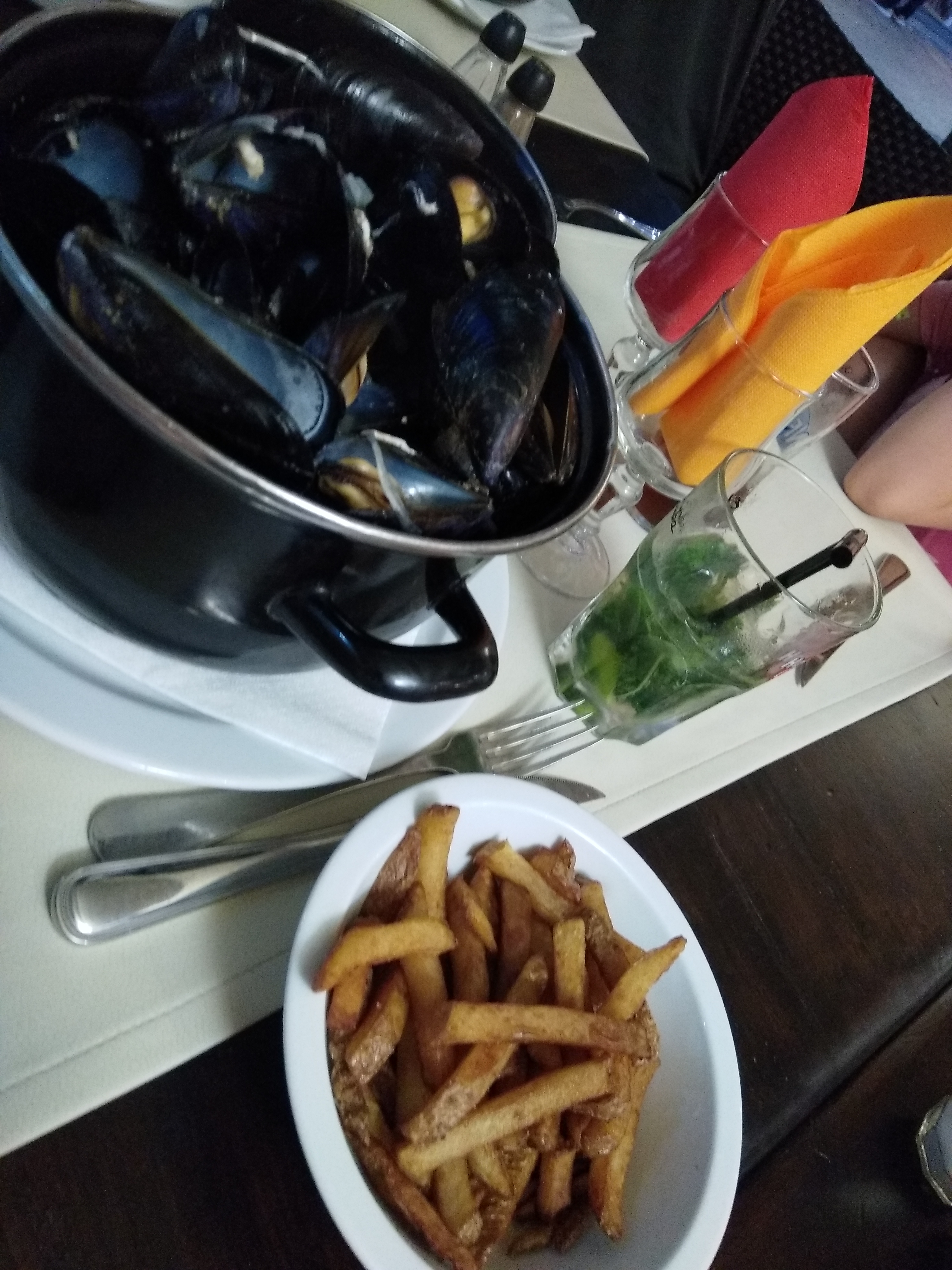 Le plat du jour (loup) était bon mais les moules à l’aïoli non et les frites insuffisantes! Un peu déçue Service très correct avec des serveurs très vifs!