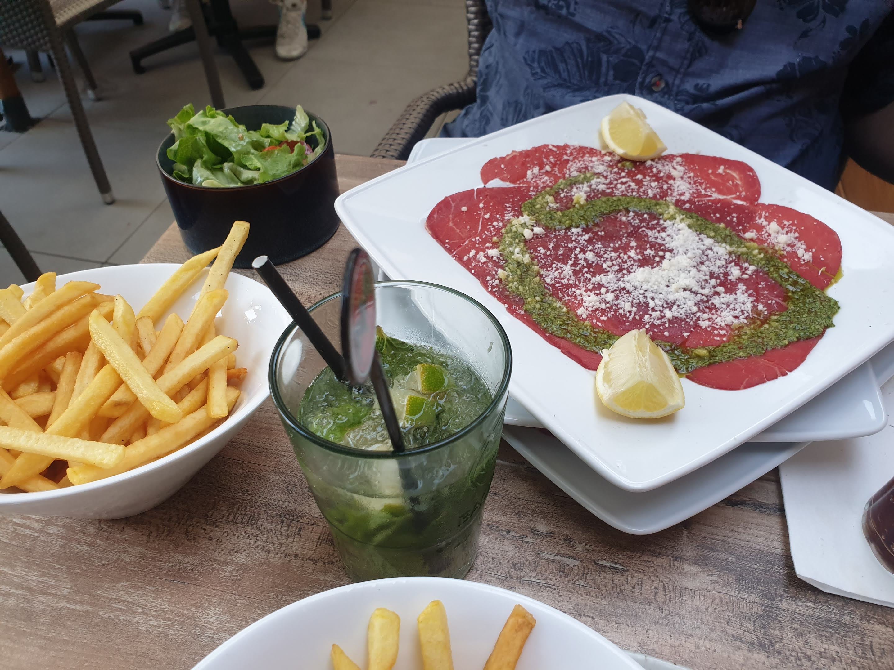 Un très bon restaurant ! Il y avait longtemps que je n’avais pas profité d’un carpaccio à volonté ! Servi avec des frites, de la pizza blanche et une salade ! La pizza était aussi à tomber. En résumé, super endroit, super cuisine, ambiance et service au top 😁