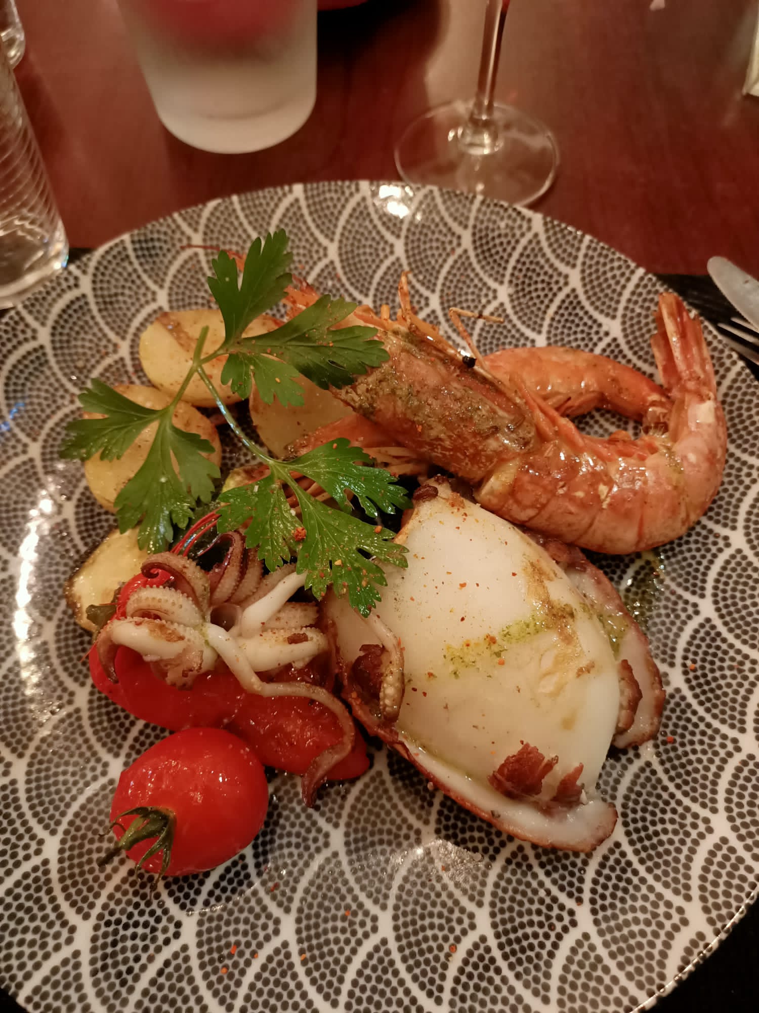 Excellent service et excellente cuisine! Entrée: assiette catalane ; Plat : la seiche et ses deux sœurs (2 gambas) ; Dessert : tiramisu fraises. Mon mari et moi recommandons vivement cette adresse! Belle surprise!