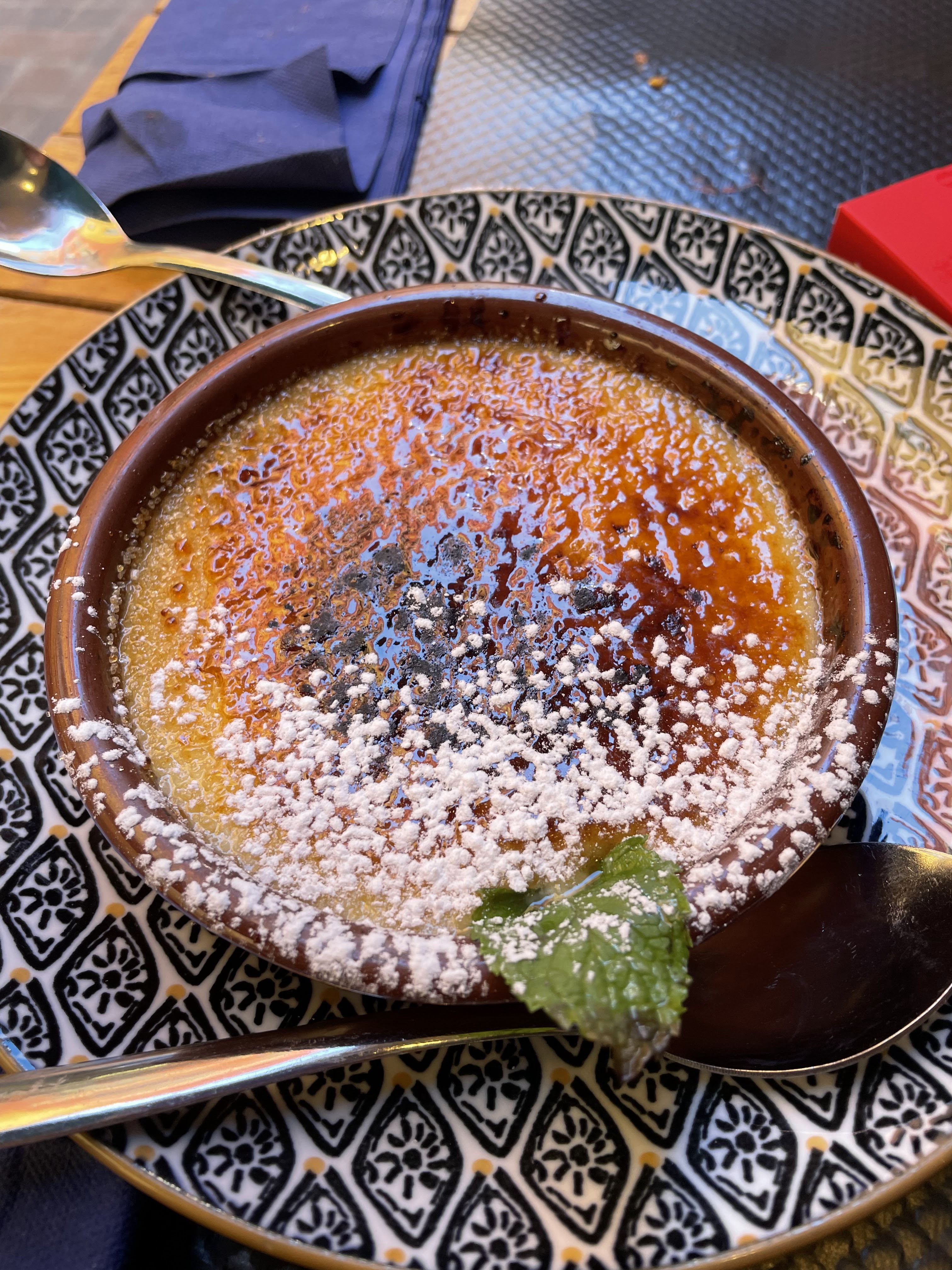 Une pause gourmande au frais lors de notre visite de Collioure...délicieuse salade tout en fraicheur, un plat de poisson délicieux et une crème catalane fameuse. Un bon moment dans un cadre sympatique.