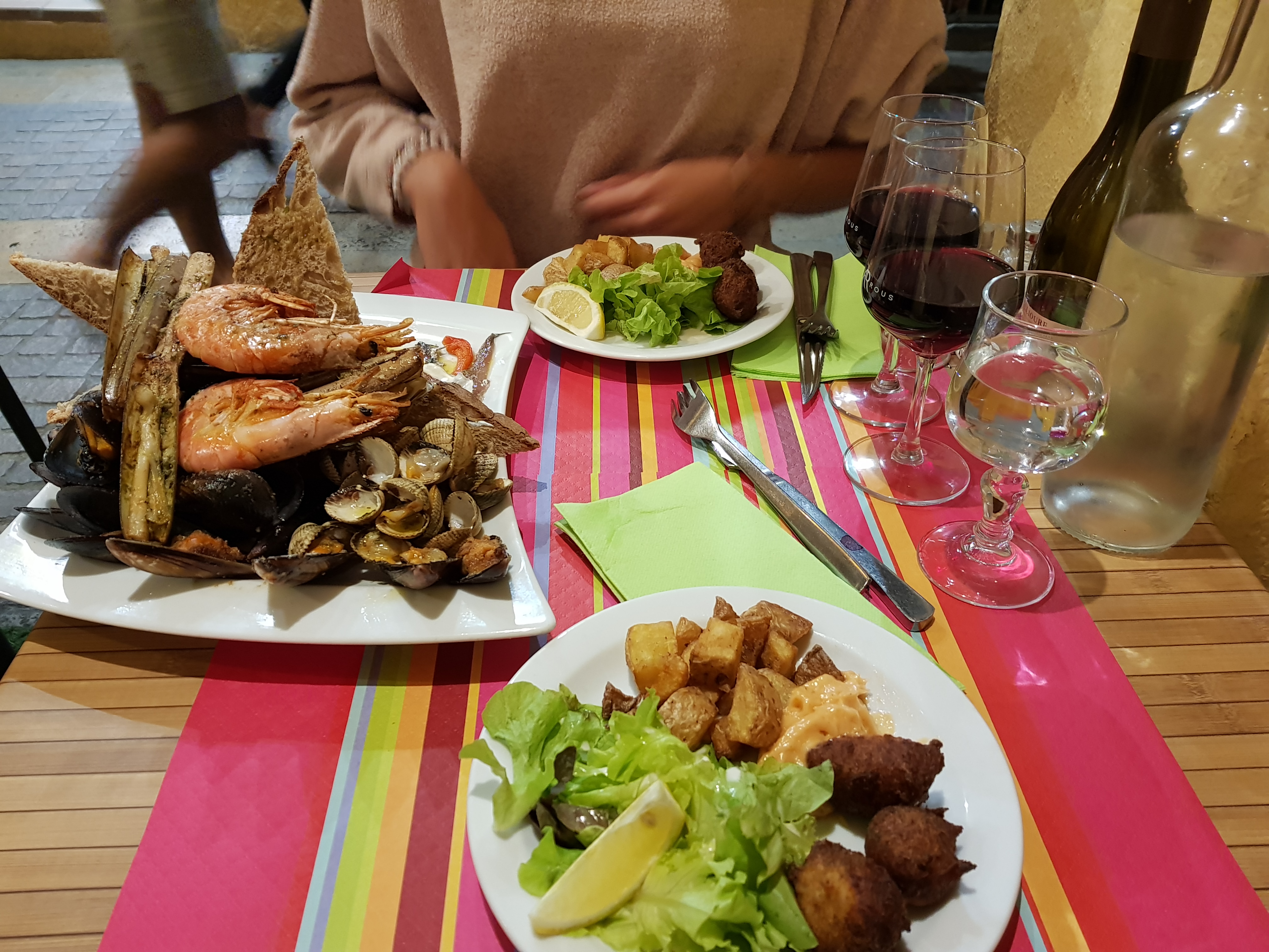 Dégustation de la spécialité de la ville : les anchois ! Une belle découverte pour ma part ! Une très bonne paella, copieuse avec de beaux morceaux de poissons et viande. Le personnel est très sympathique et arrangeant sur les réservations.