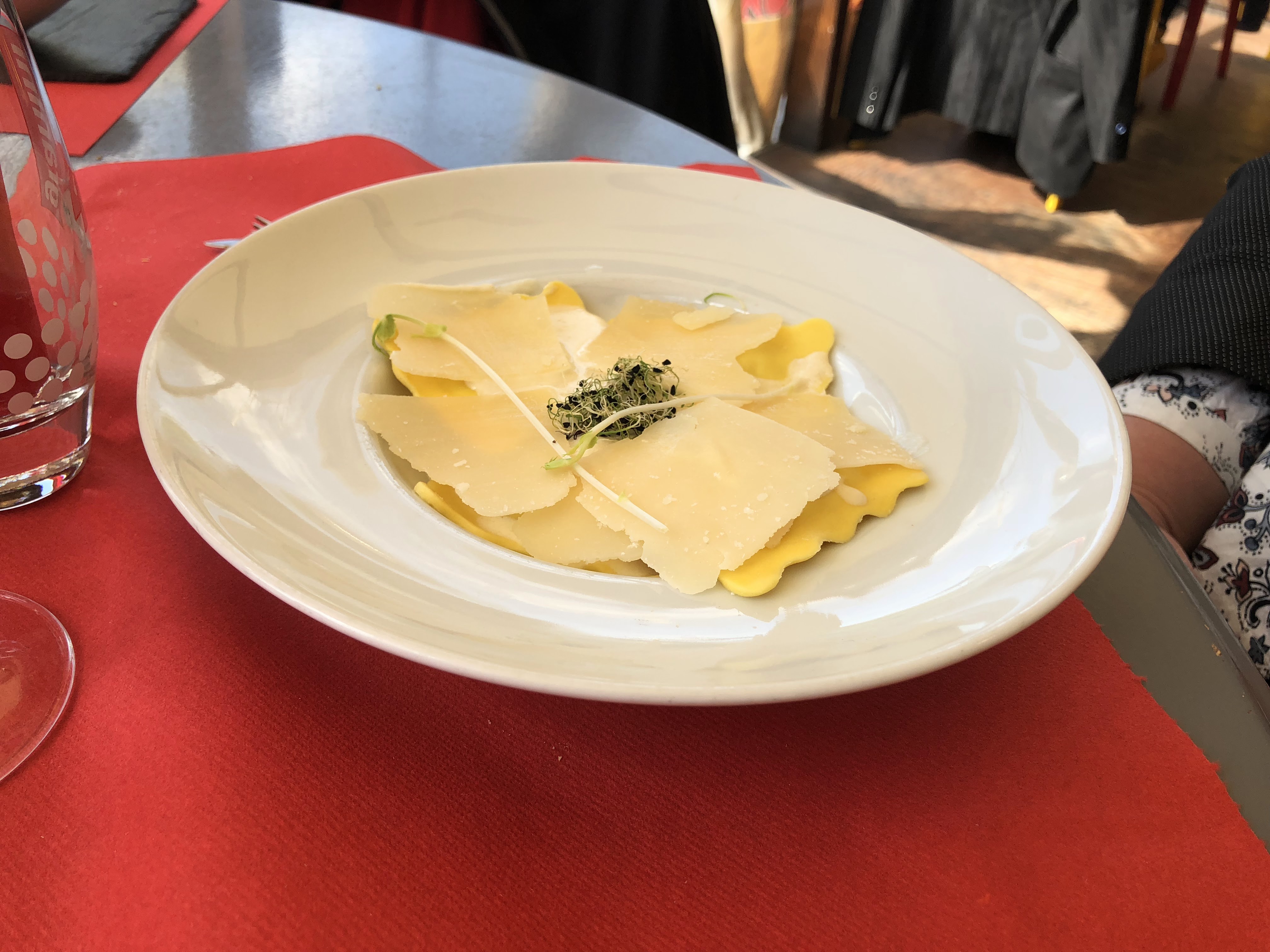 Je vous recommande ce restaurant au très bon rapport qualité/prix. Table 22 , risotto et pâtes carbonara. Excellent accueil, service de qualité, merci mesdemoiselles. Les petits plus: les fleurs séchées sur le risotto et le thé à la menthe fraîche, délicieux ! Egalement, un petit plaid tout doux en terrasse.