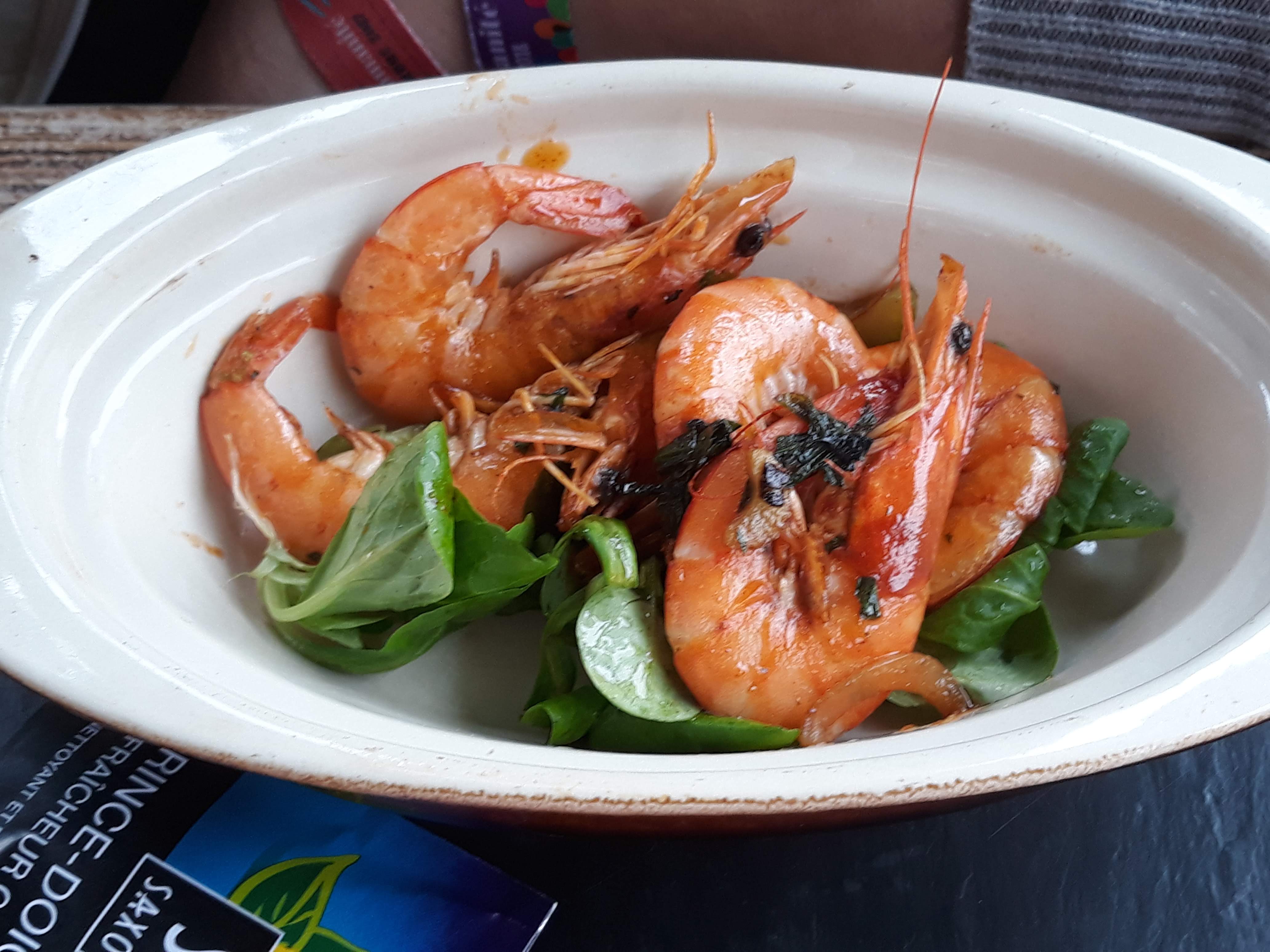 Plus que médiocre. N’y allez pas. Je pense que je vais être malade. J’ai pris l’entrée de leur menu, poêlée de crevette et chorizo. Il y avait de vieilles crevettes avec deux crevettes fraîches. Je n’ai pu manger que les 2 crevettes. Le chorizo paraissait également très fatigué et sentait mauvais. Bref, je n’ai presque rien mangé de mon entrée. Je l’ai signalé au serveur qui m’a proposé un digestif mais je pense qu’il y a vraiment un problème de qualité dans ce restaurant. Il y avait ensuite une pièce de bœuf en plat dans le menu. L’onglet était généreux et bon mais les frites sans goût et pas assez cuites. La sauce au poivre n’avait pas le goût de poivre.Je n’ai pas vu le patron de ce restaurant où les employés semblent un peu livrés à eux même. Bref à éviter. Un attrape touriste.