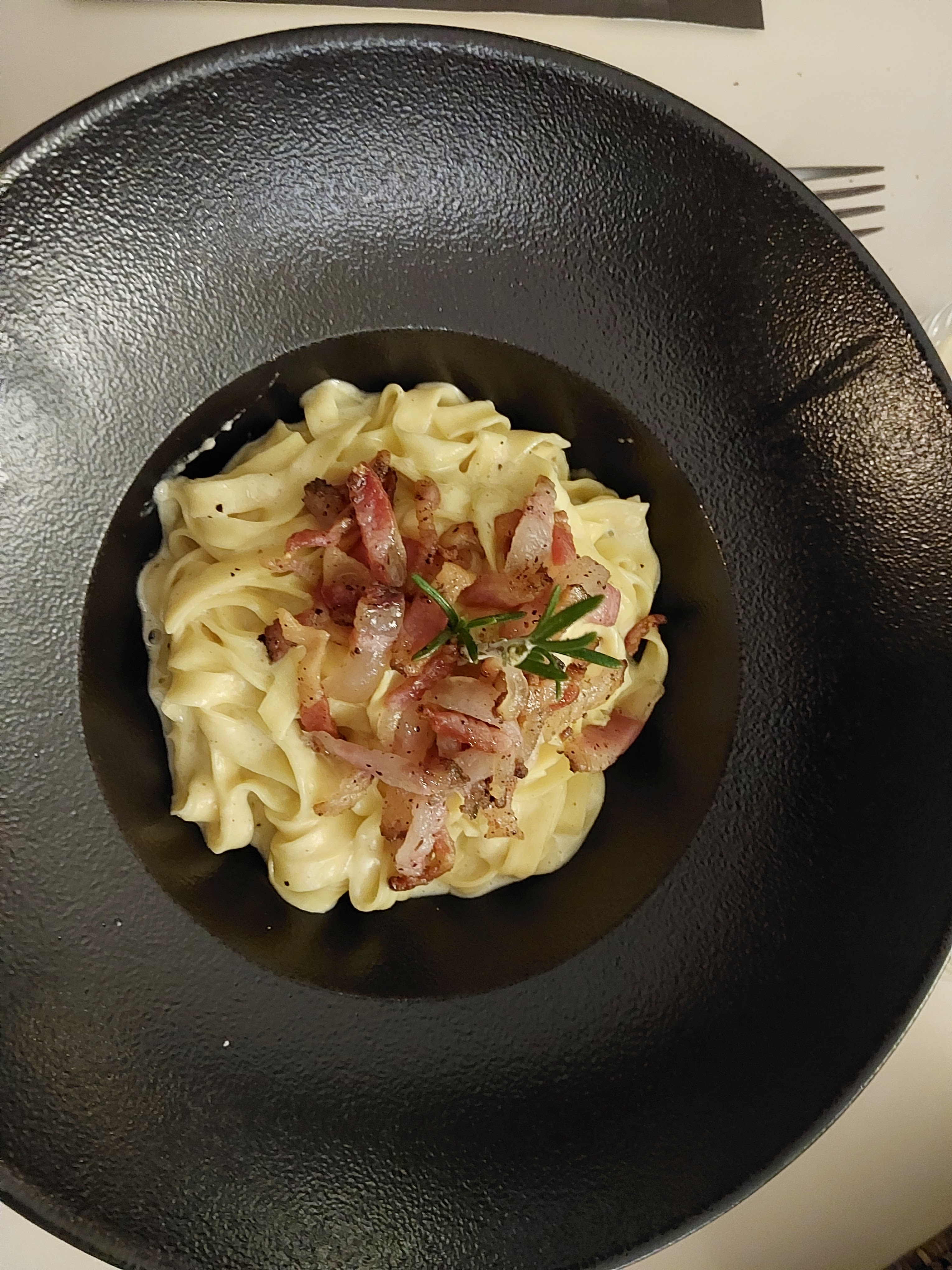 16€ des pâtes carbo où la sauce est douteuse à la vue et au goût (venant probablement d'une crème fraîche rance?) qui semble bien liquide (coupée à l'eau ?!) La cuisson des pâtes était pourtant correcte mais j'ai préféré ne pas prendre de risques vu le goût insipide de l'ensemble. Je rejoins aussi les commentaires sur le gérant (ou en tout cas celui qui fait payer) : merci et s'il vous plaît ne devraient pas être en option. Et pour le sourire on repassera mais bon non, nous on ne repassera pas