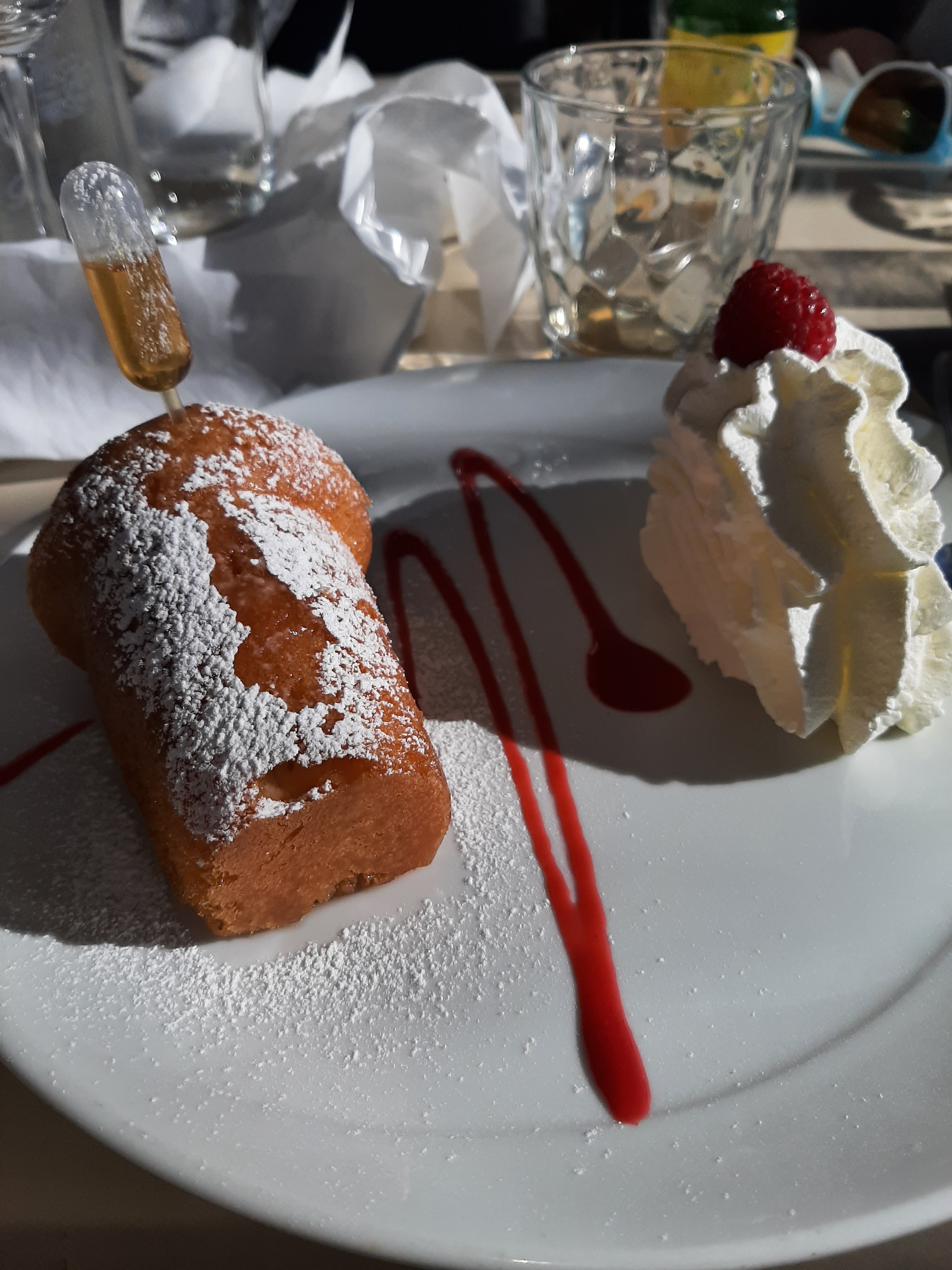Les seiches étaient très bonnes, comme les frites. Le tiramisu était excellent. Magnifique soleil pour compléter ce bon moment.