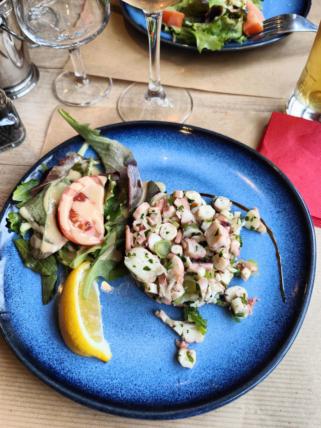 Super dîner, j'ai pris la salade de poulpes et les petits farcis à la Provencale les produits étaient frais et savoureux avec une équipe au top.