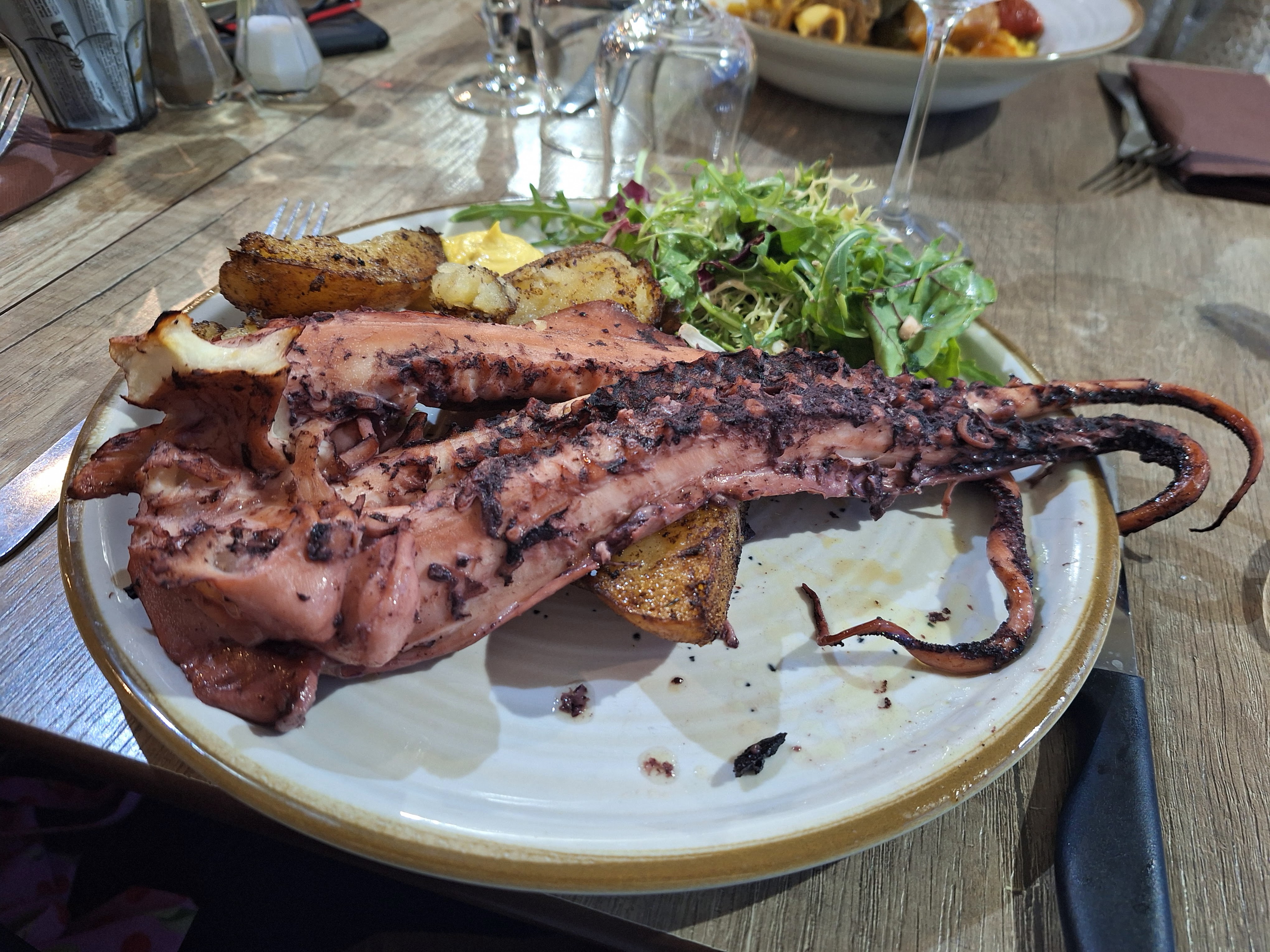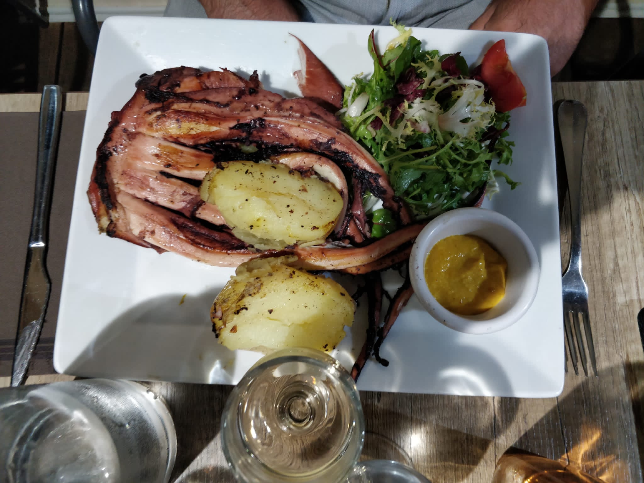 Nous voulions du poulpe grillé. Un régal, assiette copieuse. Malgré l'affluence de ce dimanche de la fête des mères, les serveurs étaient aux petits soins et avons appréciés qu'ils ne nous pressent pas afin de libérer si besoin la table.