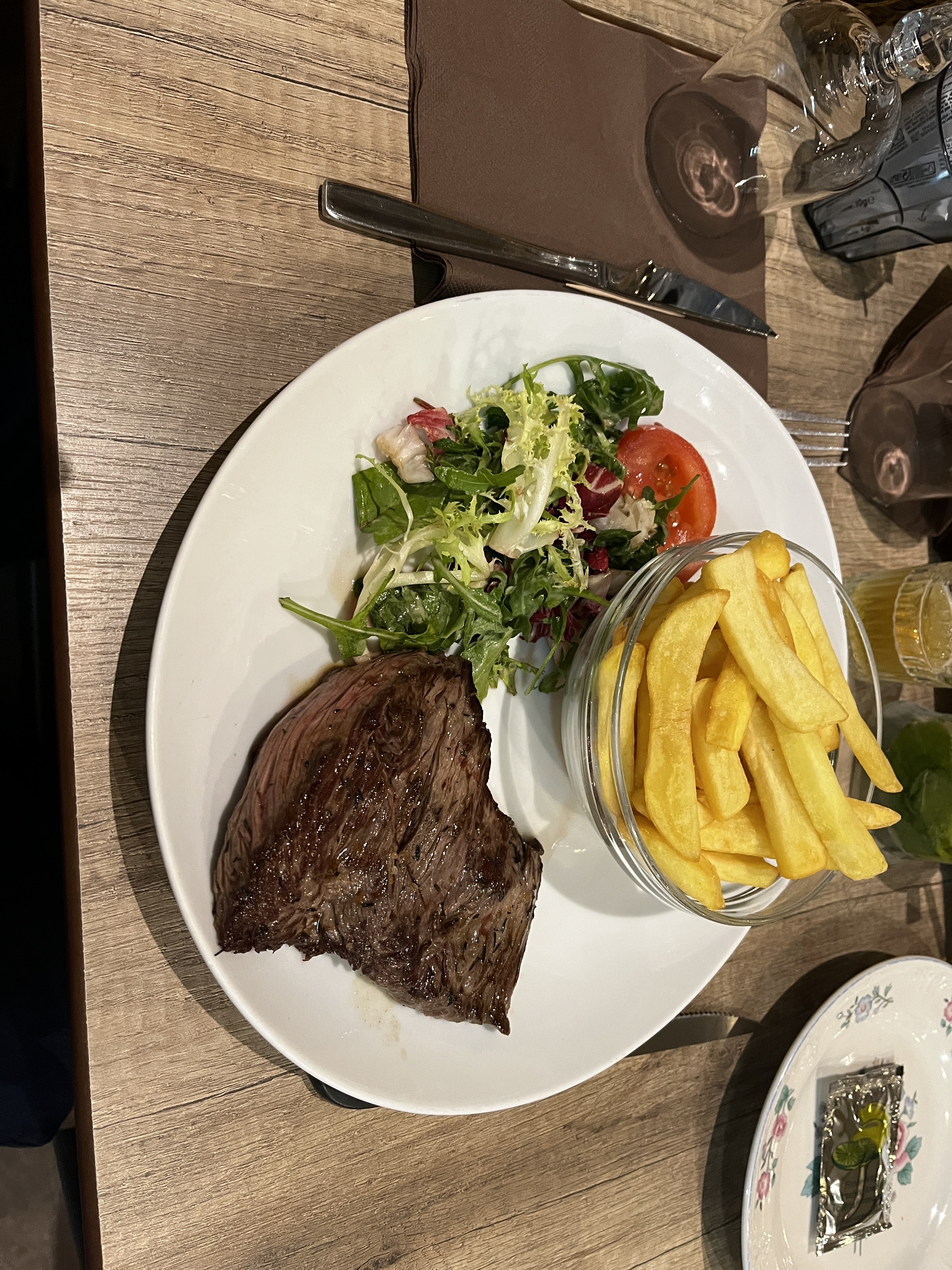 Nous n’étions jamais venus mais nous reviendrons ! Nous avons été très bien accueillis et le service est excellent. Les deux serveurs se veulent aimables, courtois, souriants, très polis, tout en restant discrets et professionnels. Le service est très rapide et la nourriture demeure copieuse et très bonne. Je suis enceinte et notre serveur s’est assuré que la viande soit coupée afin qu’elle soit très bien cuite, ce qui est très attentionné. De l’apéritif au dessert, c’est un sans faute et nous avons passé une très bonne soirée. Nous recommandons cet établissement !