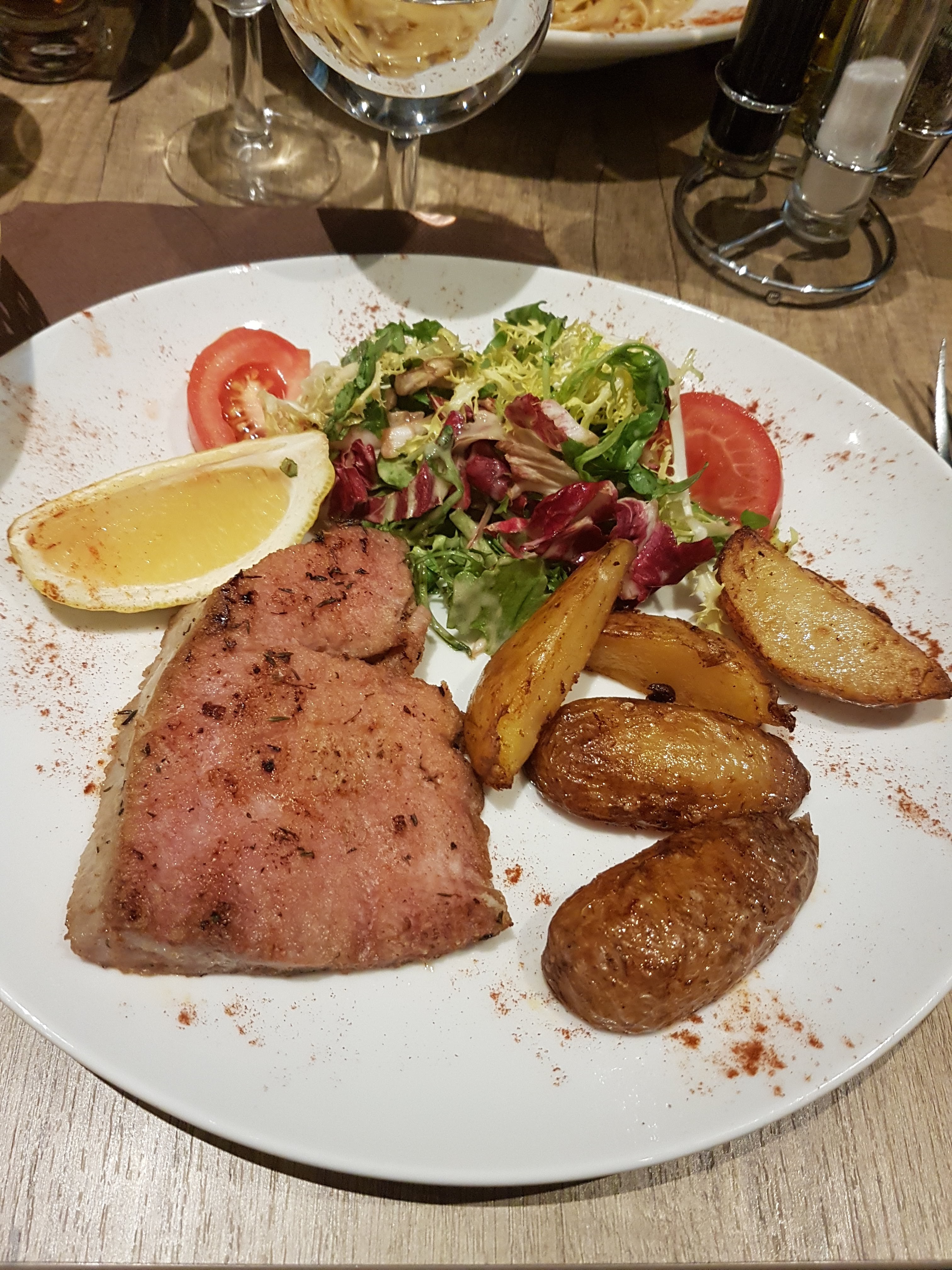Les pizzas sont excellentes. Le loup très bon, manque un peu d'assaisonnement. Les Frites sont bonnes, sans plus. Le dessert profiteroles était excellent. Personnel agréable et sympathique.
