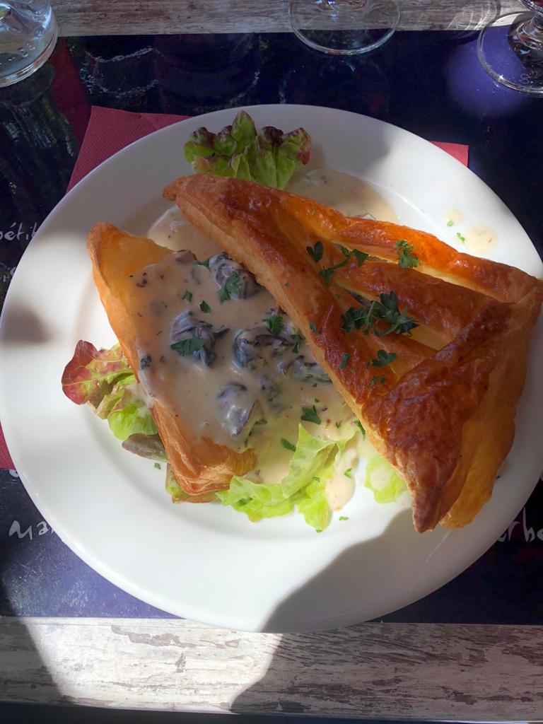 Mon choix au passage par ici. Ce jour j’ai essayé le feuilleté aux escargots, de vrais escargots avec crème chaude et feuilleté moelleux ! Puis faux filet aux girolles comme en automne, tendre et gout de la forêt. Dessert simple fromage blanc! Arrosé par un bon rouge local… Merci ce fut un grand moment et belle rencontre…..