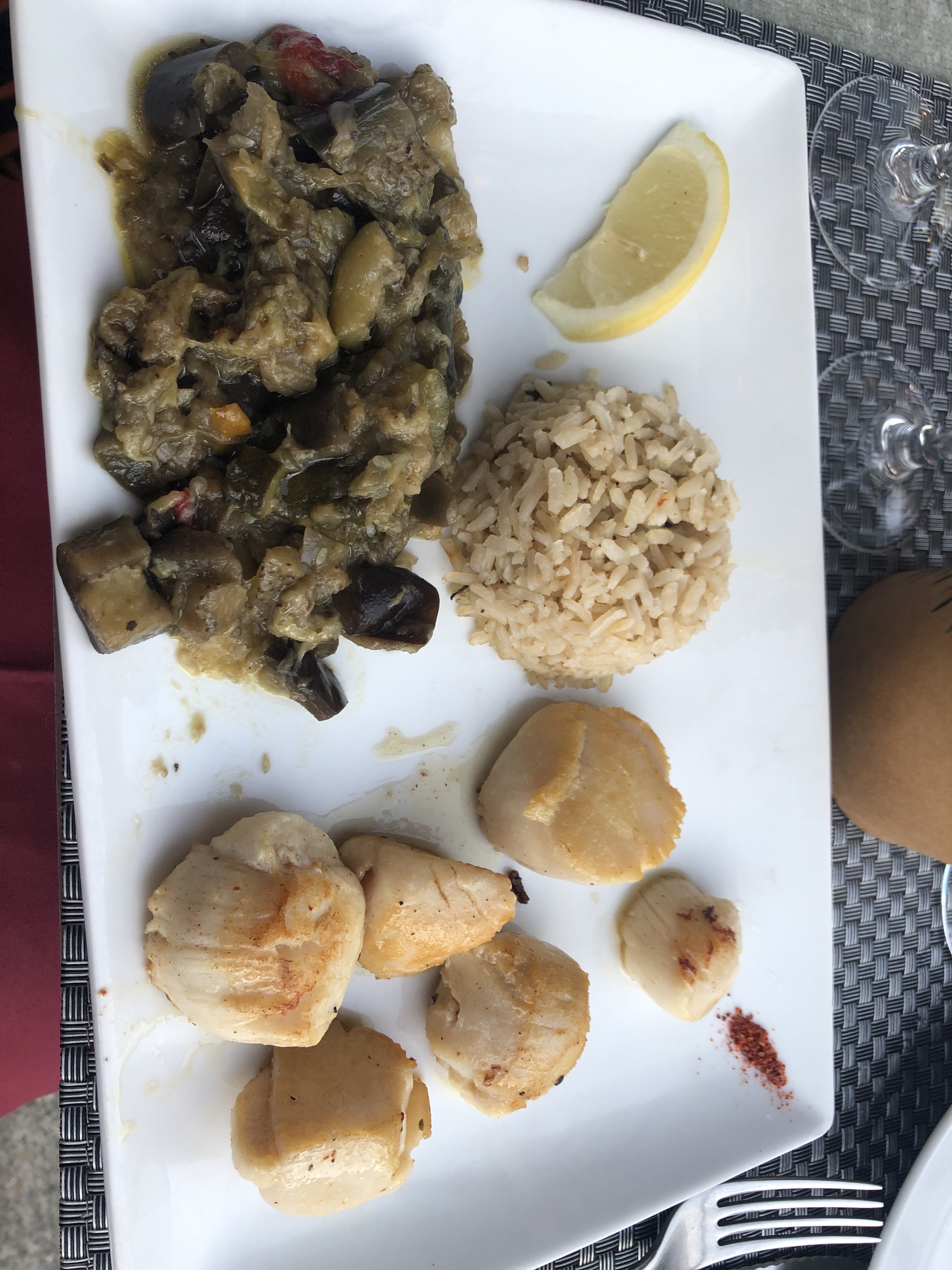 Excellent !!!! Loup à la plancha pour mon mari , seiches et calamars à la plancha pour moi , succulents !!! Desserts tops !!! Le service était exceptionnel également, merci !!!! A refaire !!!