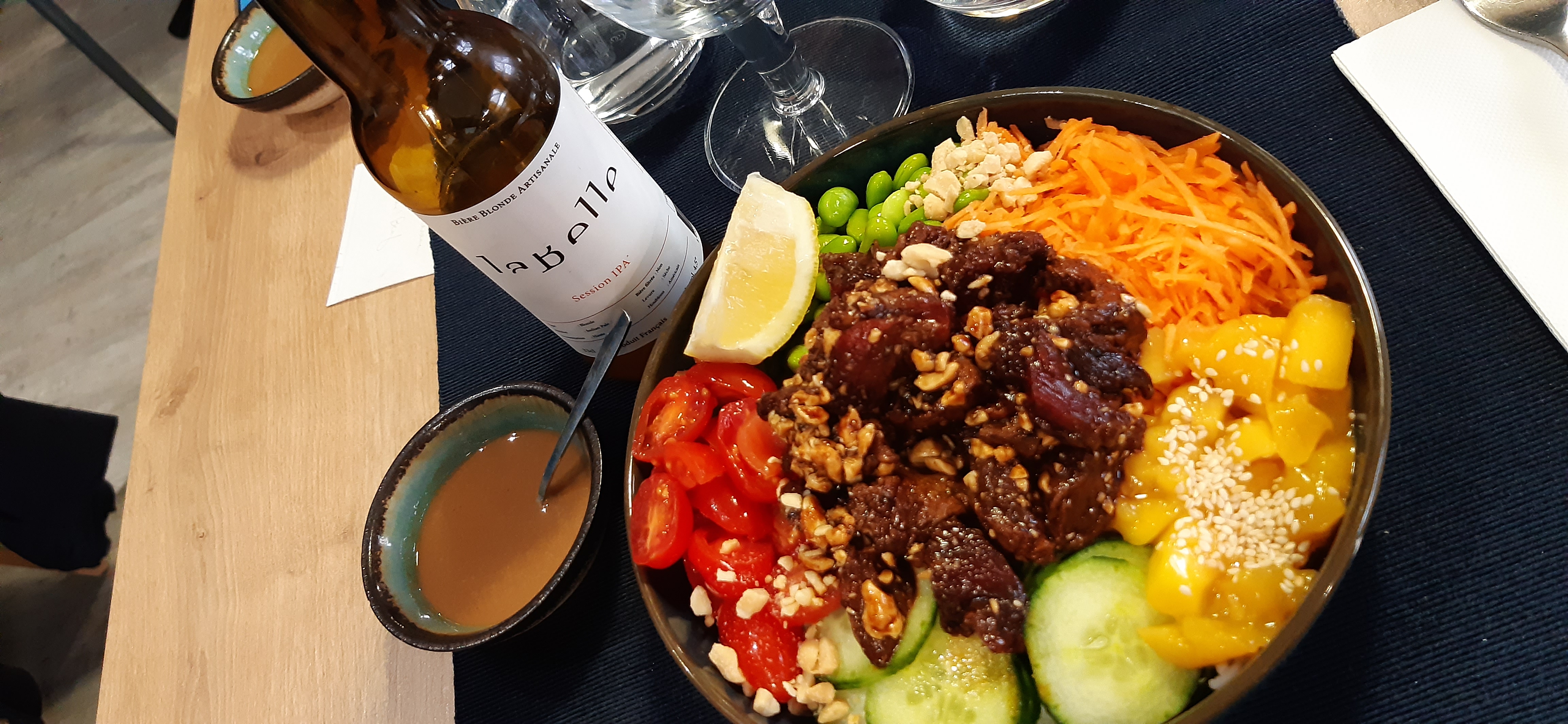 Nous avons déjeuner un samedi midi, tout à était parfait de l accueil au goût des plats en passant par la bière. Les bols de salades avec le bœuf ou le saumon sont suffisamment copieux. Je recommande chaleureusement