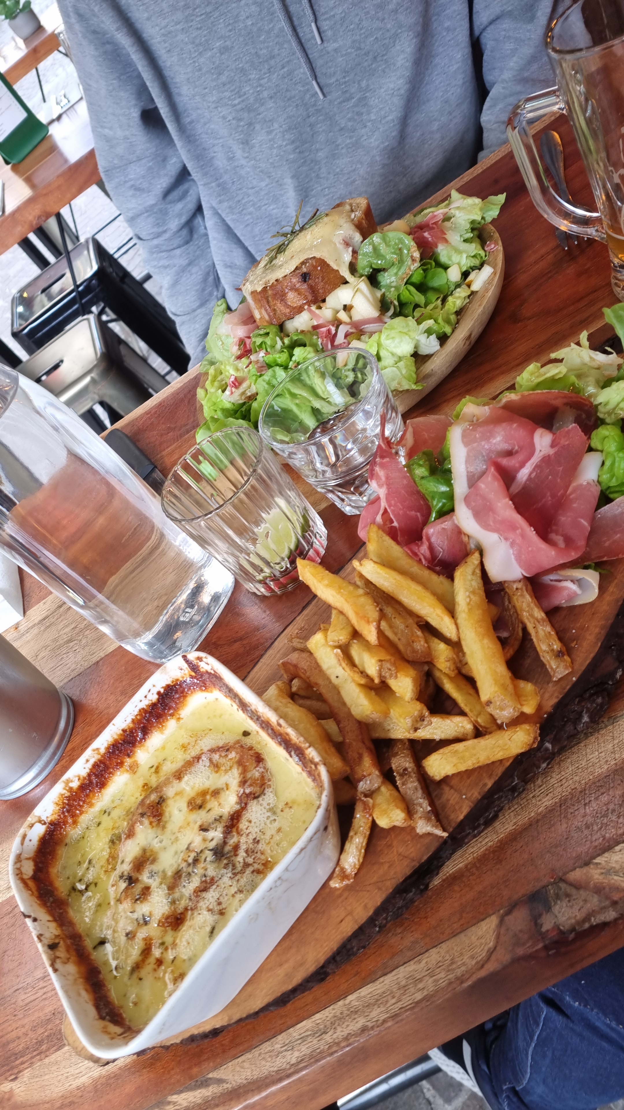 Nous sommes rentré pour boire et verre et au final nous avons mangé..même très bien mangé ..les tapas sont très bon (accras, frites fraiches, plateau charcut-fromages, aiguillettes de poulet, 1/2 camembert),.. et les plats donnés très envies ..Je recommande + + Pensez à réservez votre table😋