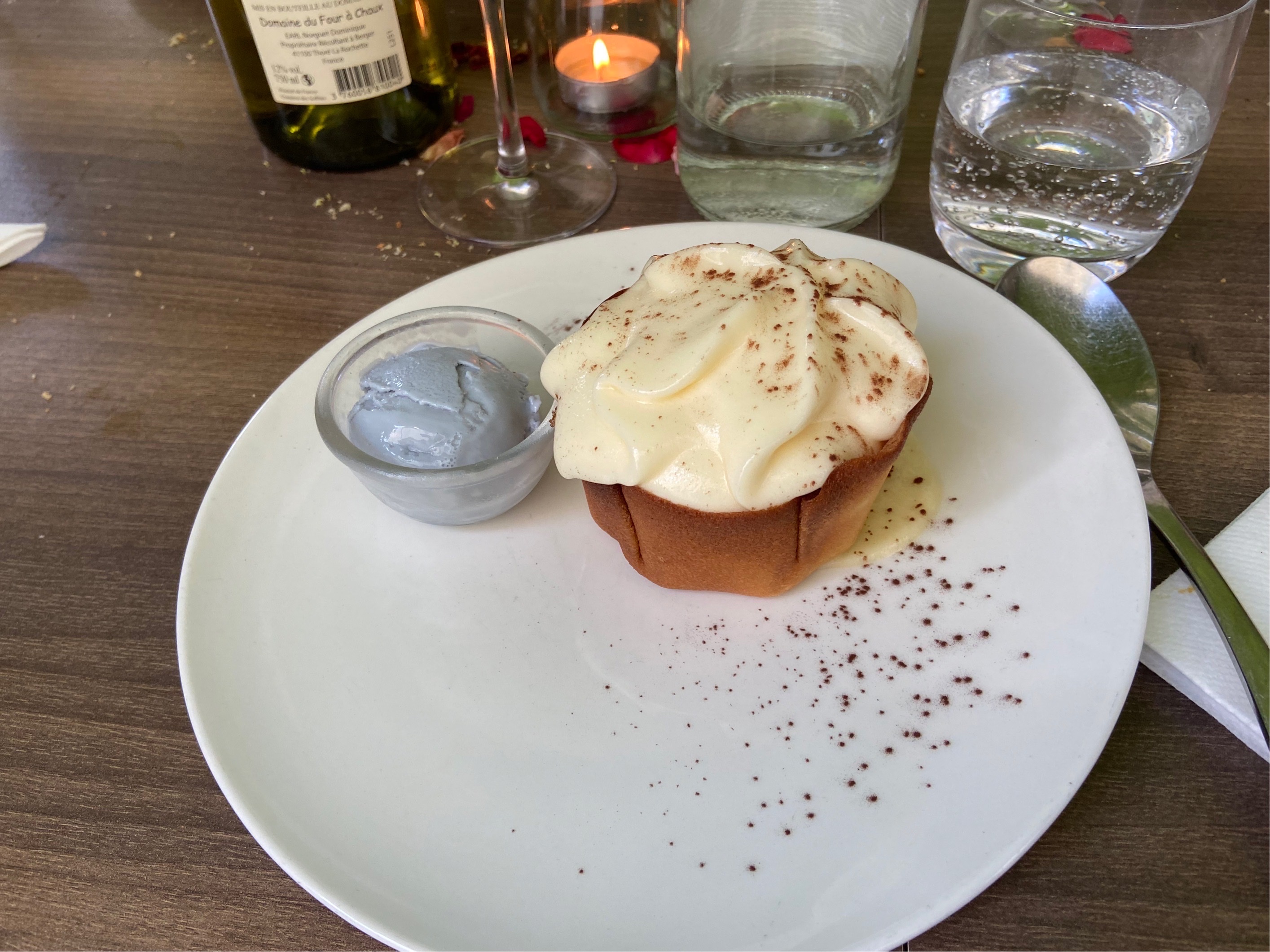 Tres bonne impression que cette découverte. Le lapin chasseur était délicieux (sauce un peu courte ?) et la tarte au citron revisitée avec sa glace à la lavande un délice (pas très facile à manger). Seule petite déception : le verre de vin (Crozes-Hermitage) qui ne m’a pas convaincu, mais ça vient peut-être de moi, je ne suis pas un connaisseur des vins de cette région.