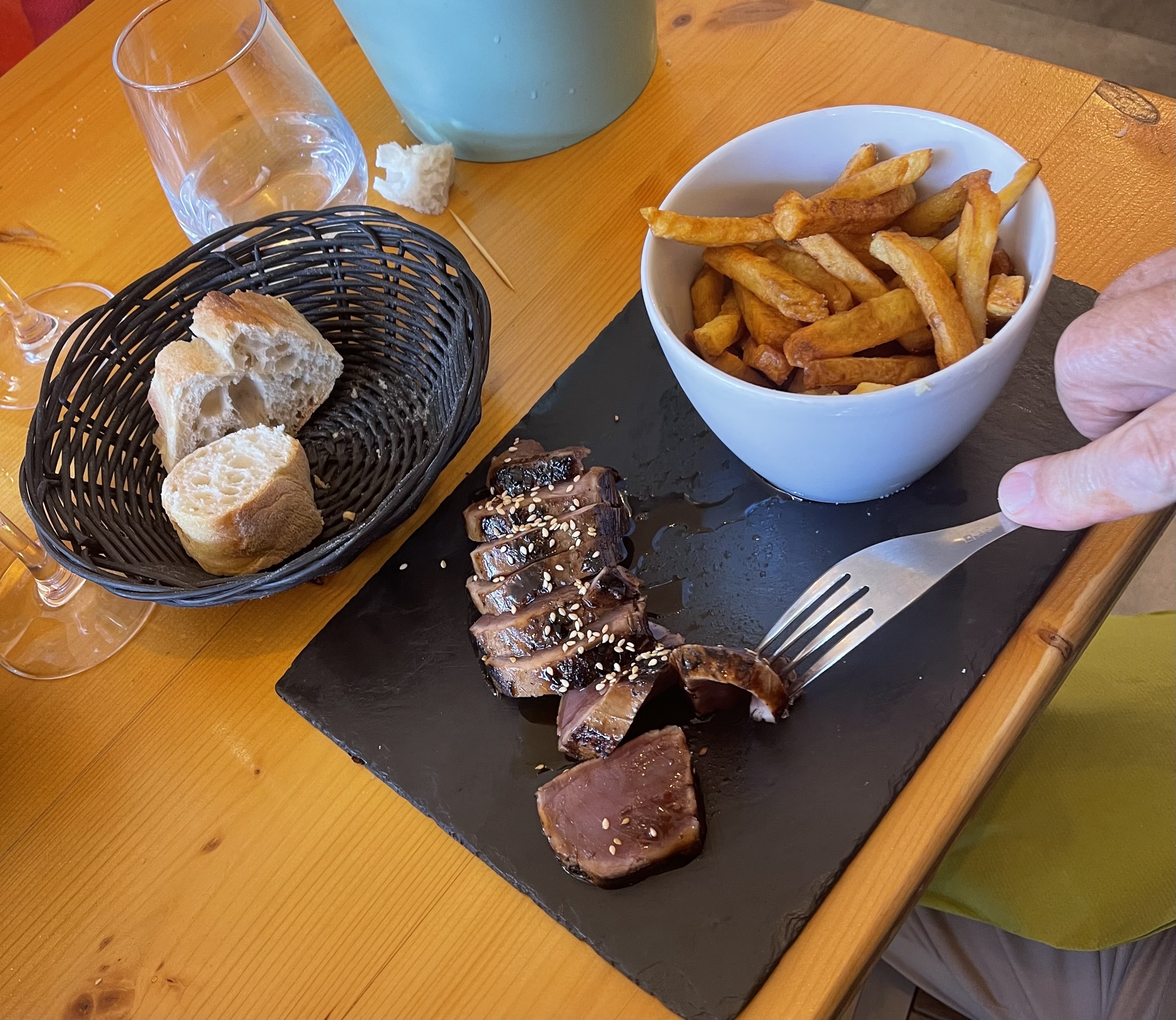Pour un amateur de thon frais et de vin ( bière Gorge Fraîche pression aussi), y a pas mieux ! La planche de thon est parfaite! Les frites pourraient être incluses avec les plats ,sinon,top!! Et le prix du vin permet de prendre des bouteilles au resto.