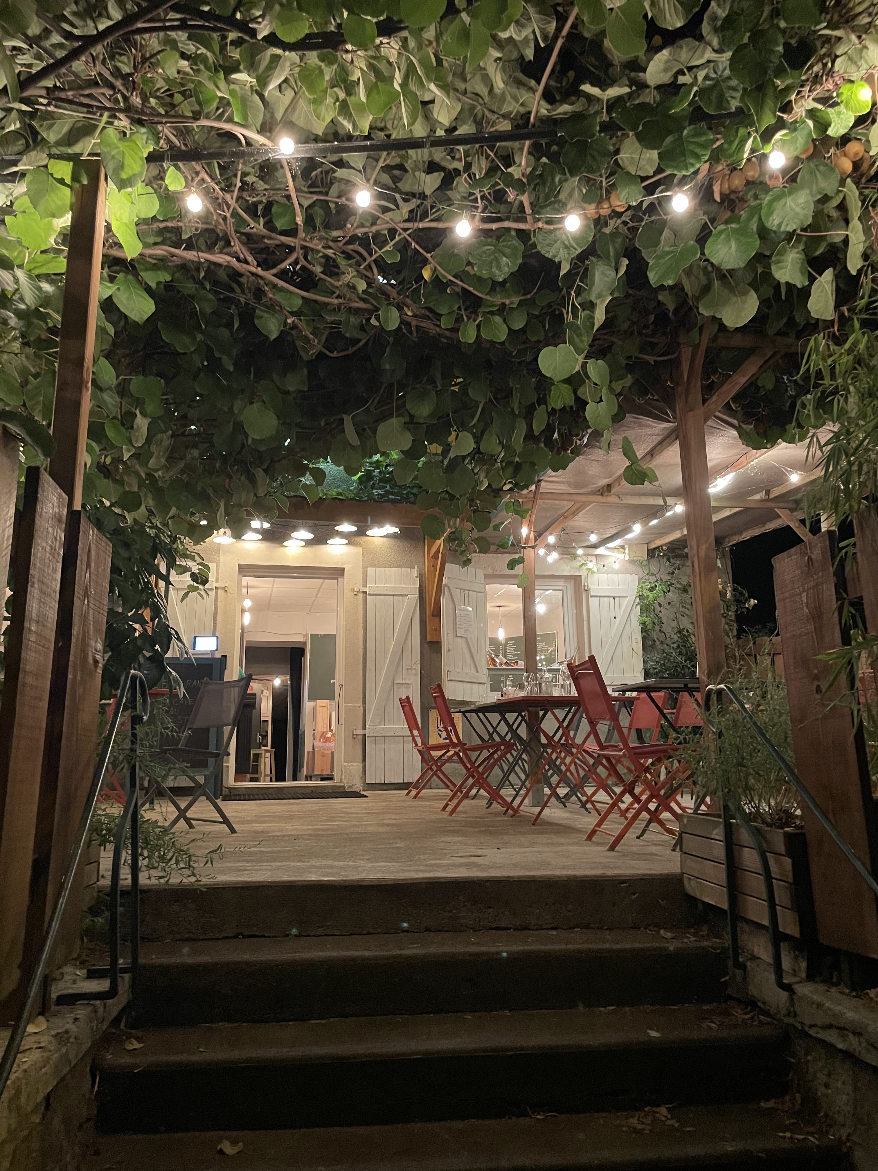 Tout est PARFAIT ! La terrasse , les petites cagettes de pousses de plants sur les tables, les canotiers...A cela s'ajoute la gentillesse du propriétaire, et de sa serveuse.La carte est juste top et les plats sont copieux et délicieux!Les explications des plats sont claires et données par le chef. Et les prix tout a fait corrects.