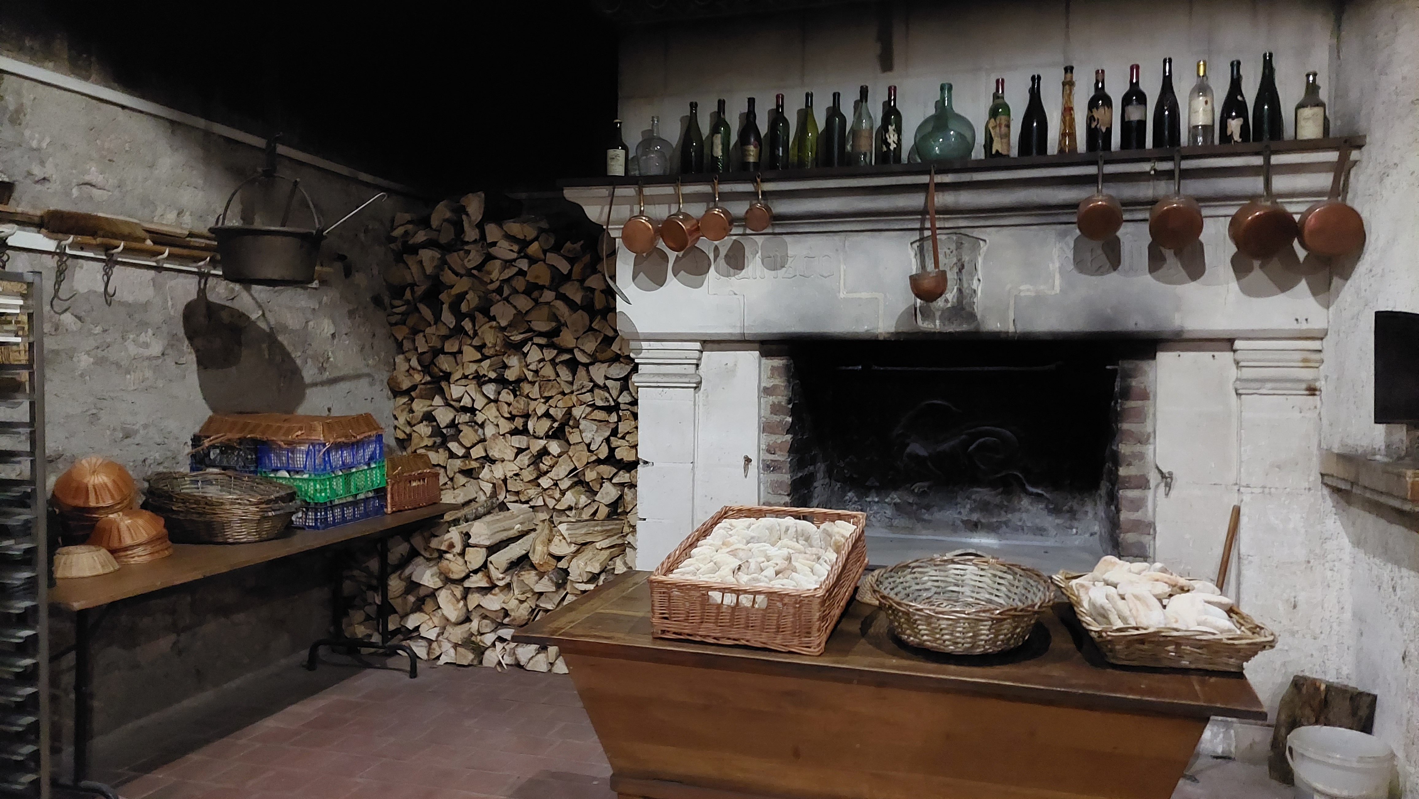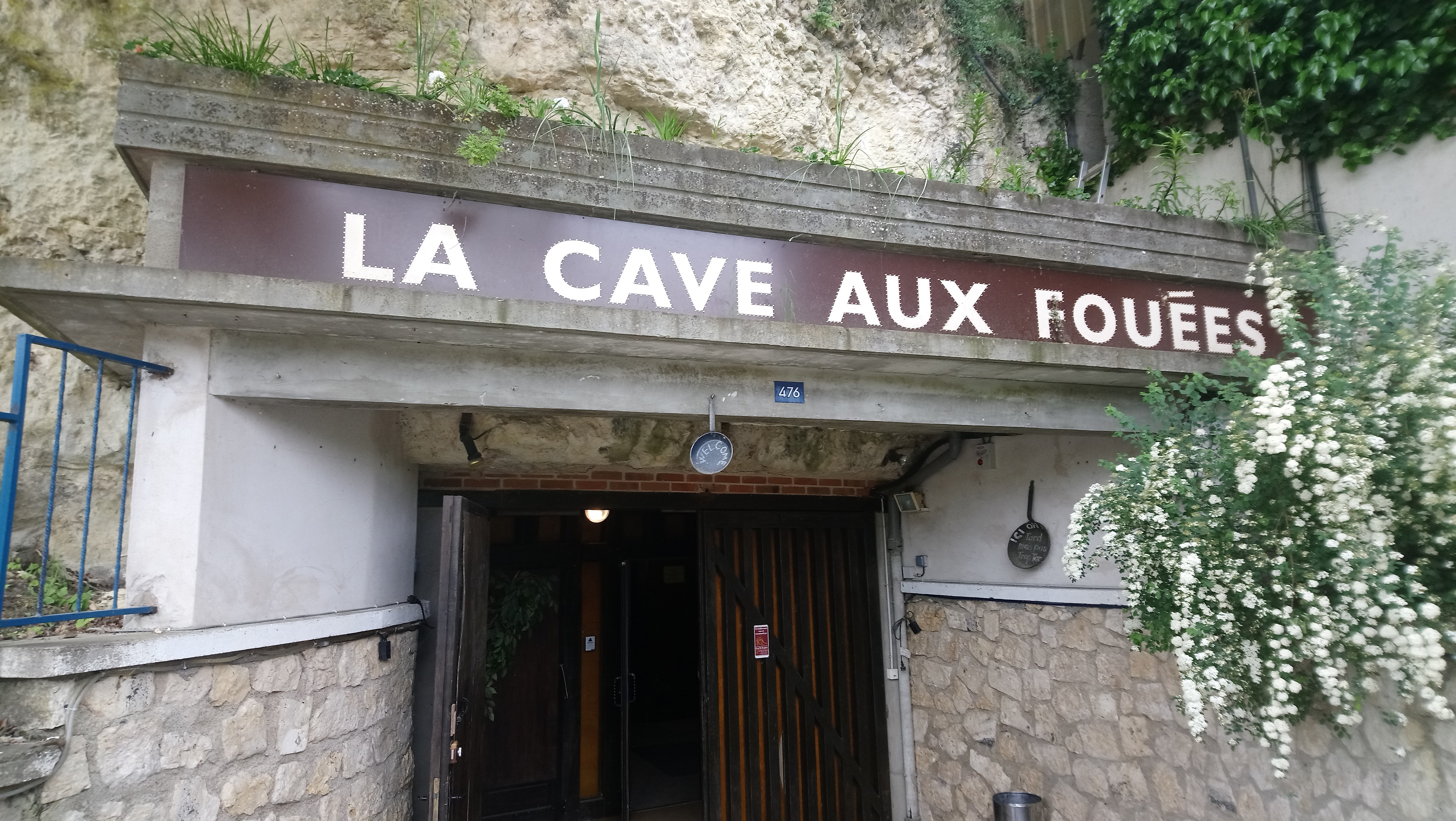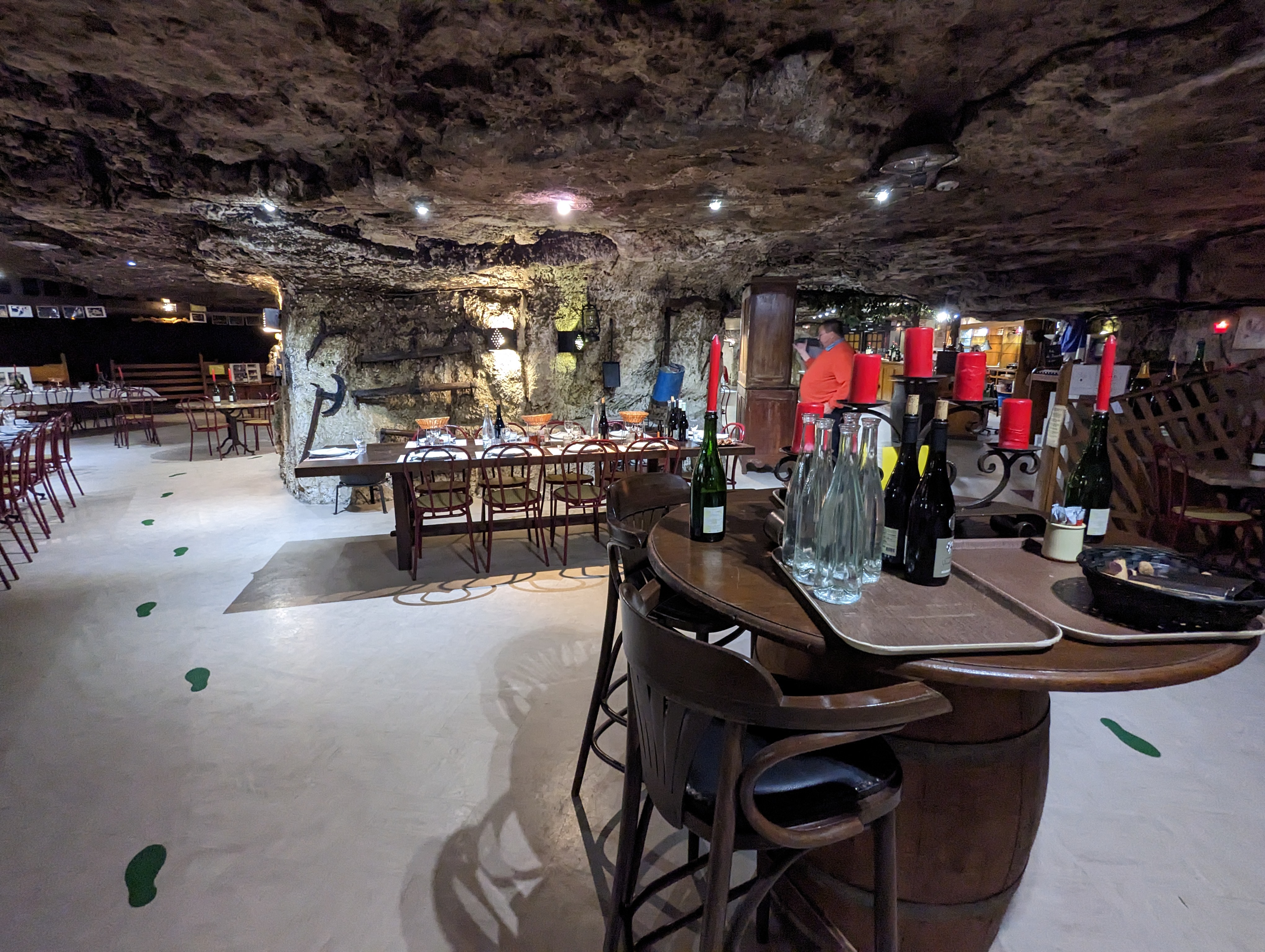 Restaurant insolite, sombre (qui fait parti de l'ambiance), éclairé par des bougies sur les tableau et quelques ptites lumière suspendues. où l'on mange avec 24m de roche au dessus de la tête. Et dont la spécialité est le Fouées, petits pain cuits au feu de bois, accompagnés d'une assiette de rillette et de lard. Un plan unique qui change régulièrement mais qui reste dans la cuisine traditionnelle.