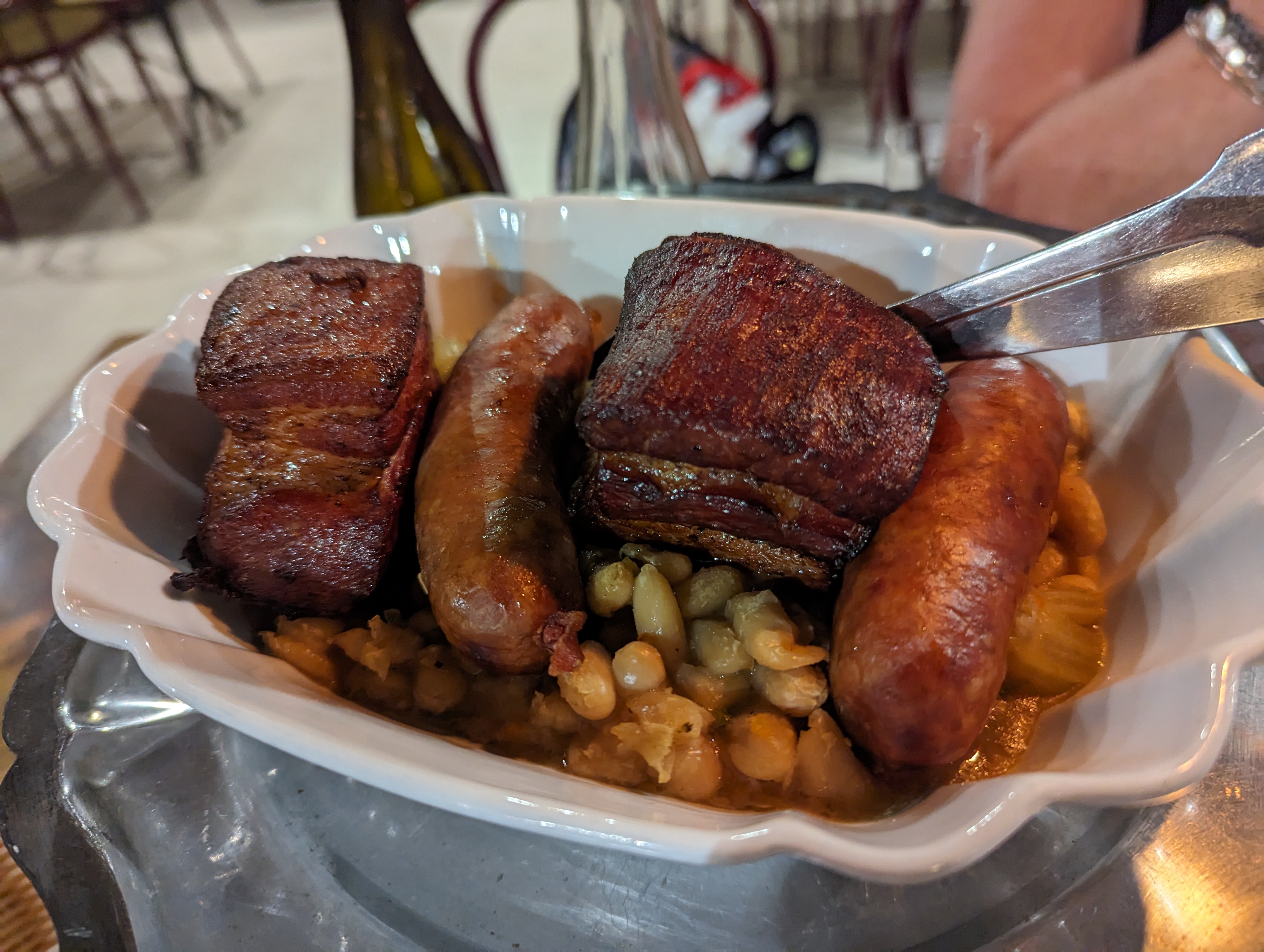 Le cadre est super dans le resto troglodyte... et les haricots et le chou agrémentés d'une saucisse et lard, c'était très bon et le chèvre chaud sur un pain très bon...