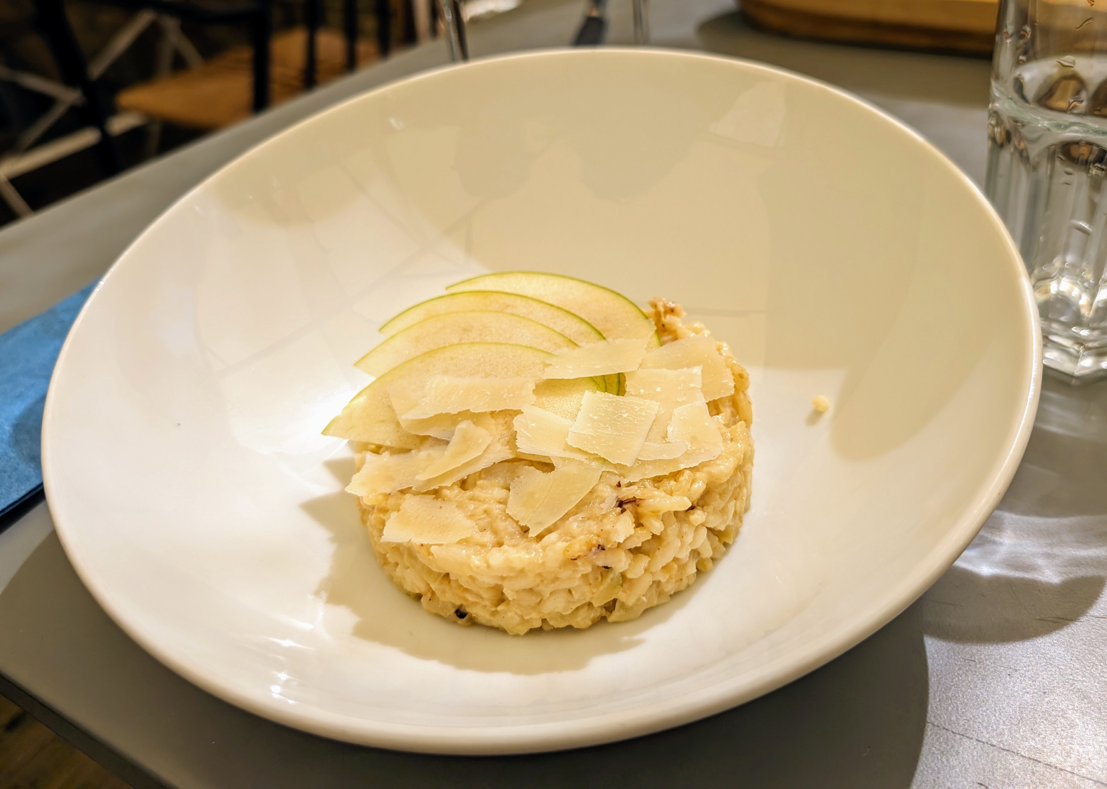 Déception quand nous avons vu arriver notre risotto : Un petit médaillon de riz vendu pour un plat à 13 euros (assorti de quelques feuilles de salade) alors que nous pensions avoir commandé une assiette bien garnie. Nous sommes repartis la faim au ventre. Dommage, nous étions des clients réguliers...