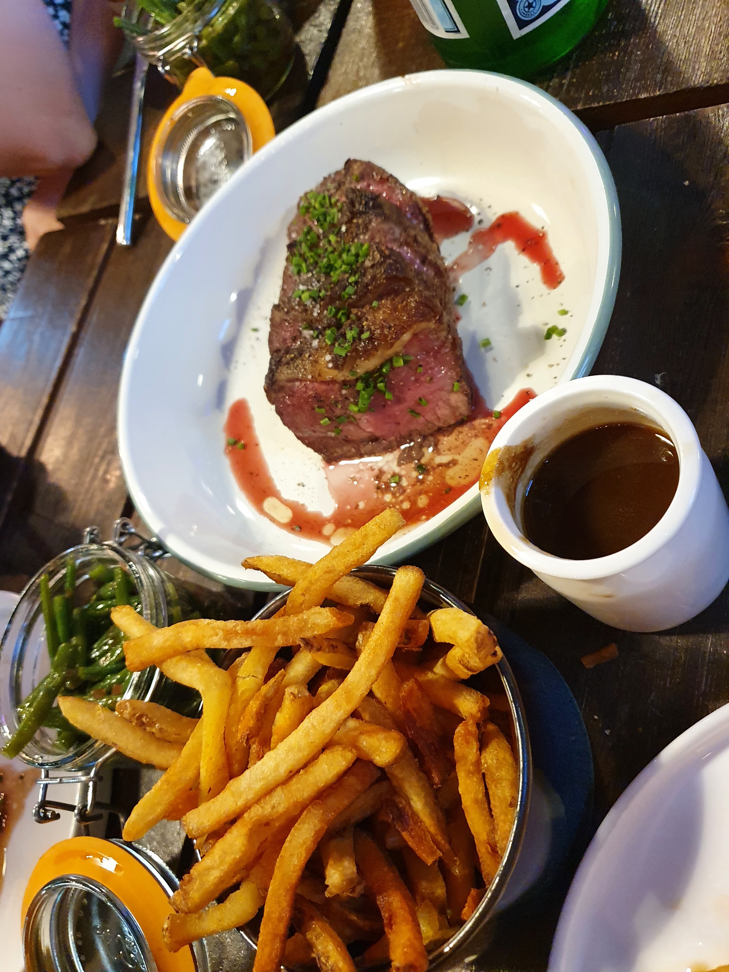 Cadre super sympa, personnel agréable et une cuisine de qualité. Nous avions pris les pièces de boeuf Angus à partager à 2. La cuisson a été parfaite, les sauces excellentes. Je recommande vivement..
