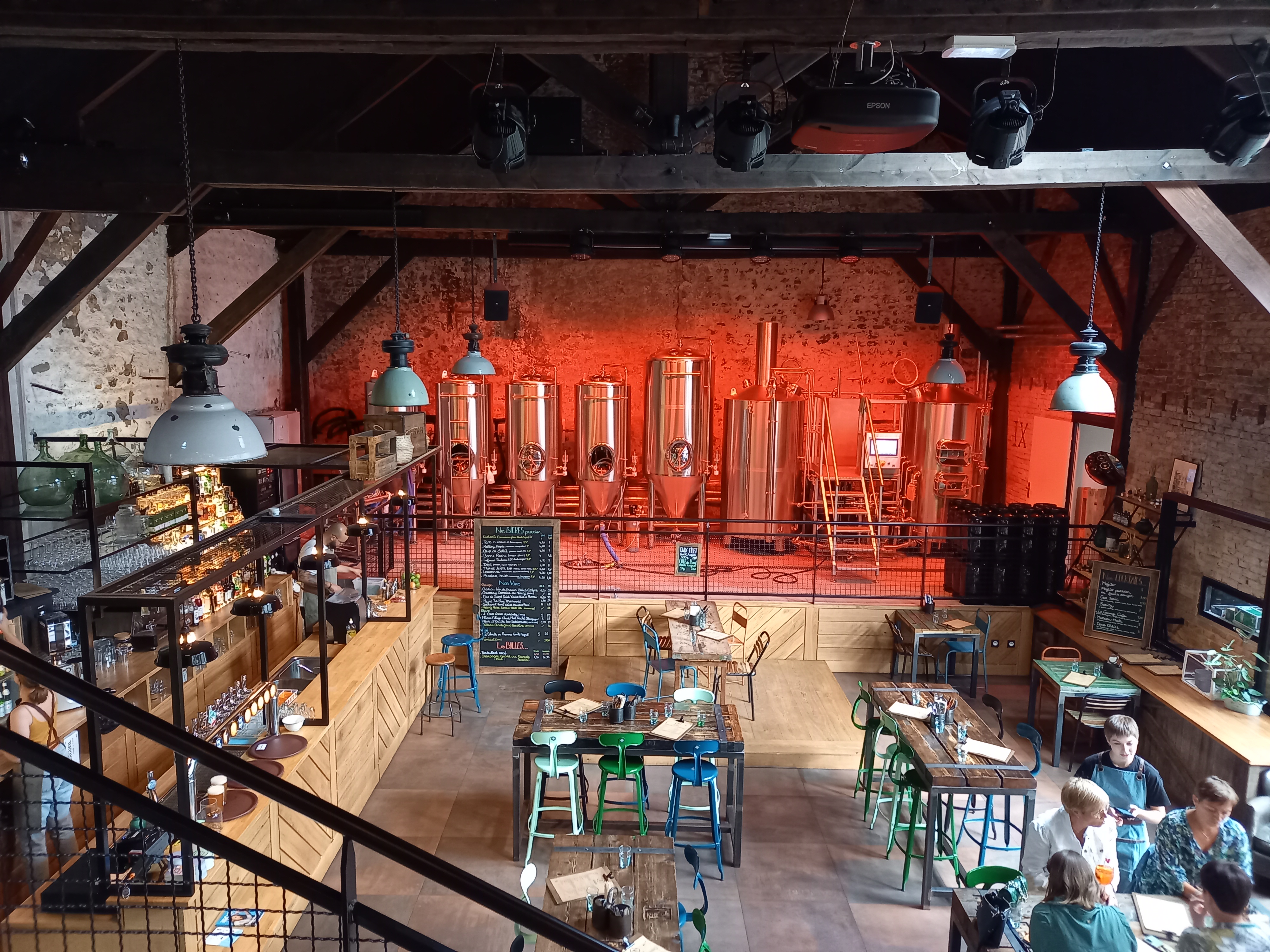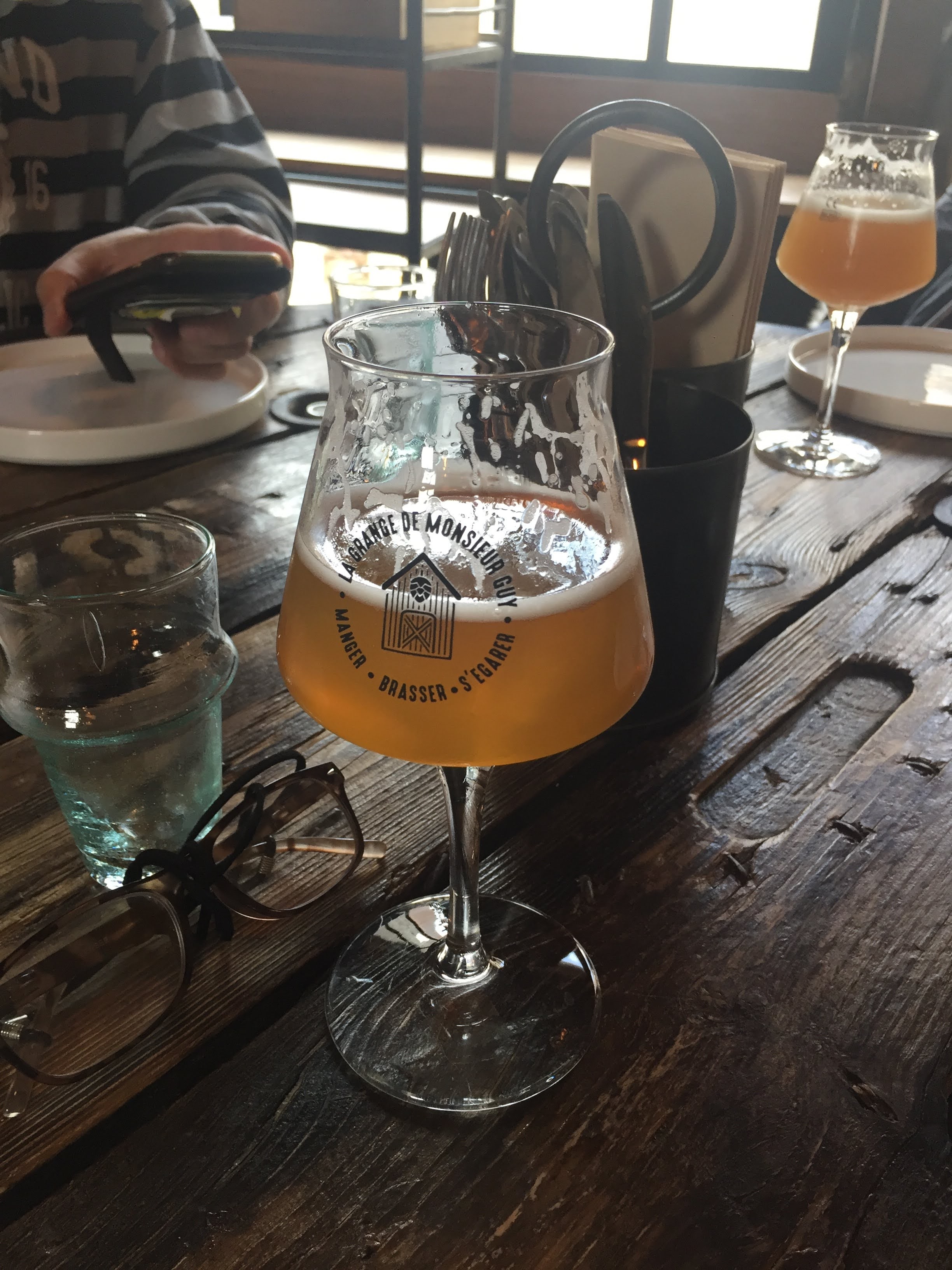 Super restaurant proposant une multitude de bières dont certaines brassées sur place. De nombreux petits plats à partager (ou pas...), c'est local, c'est frais, c'est ce qu'on aime ! Le cadre est vraiment sympa on retrouve les cuves qui servent à la bière, une immense verrière et les lumières sont tamisées pour une ambiance chaude et chaleureuse. Afin d'accéder à la grange il faut traverser la cave de monsieur Guy et le restaurant se trouve en face dans la cour. Vous pourrez retrouver d'autres adresses sur notre Mapstr: Gueyome 🙂