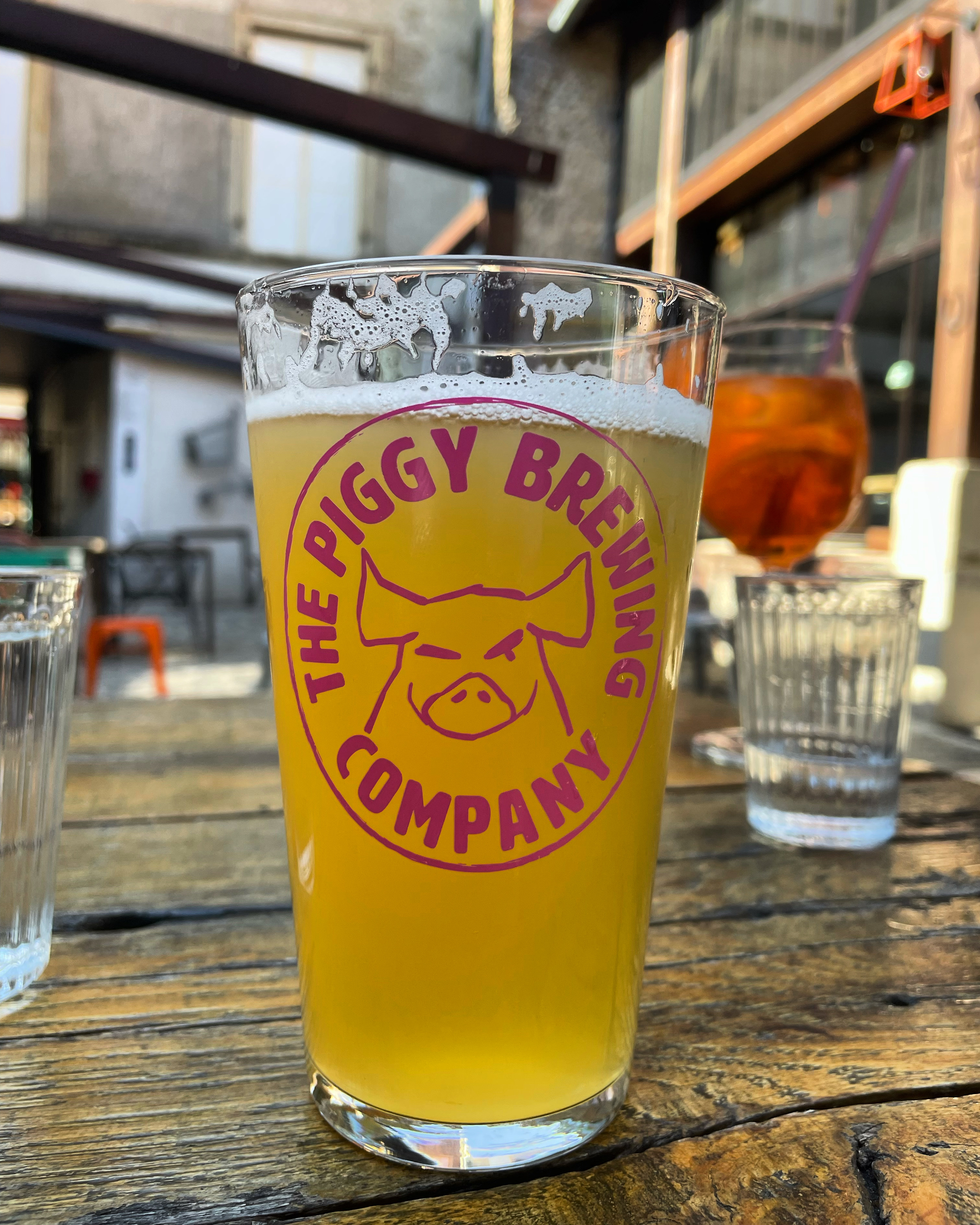 Excellente bière, fabriquée sur place et consommée dans une cour atmosphérique