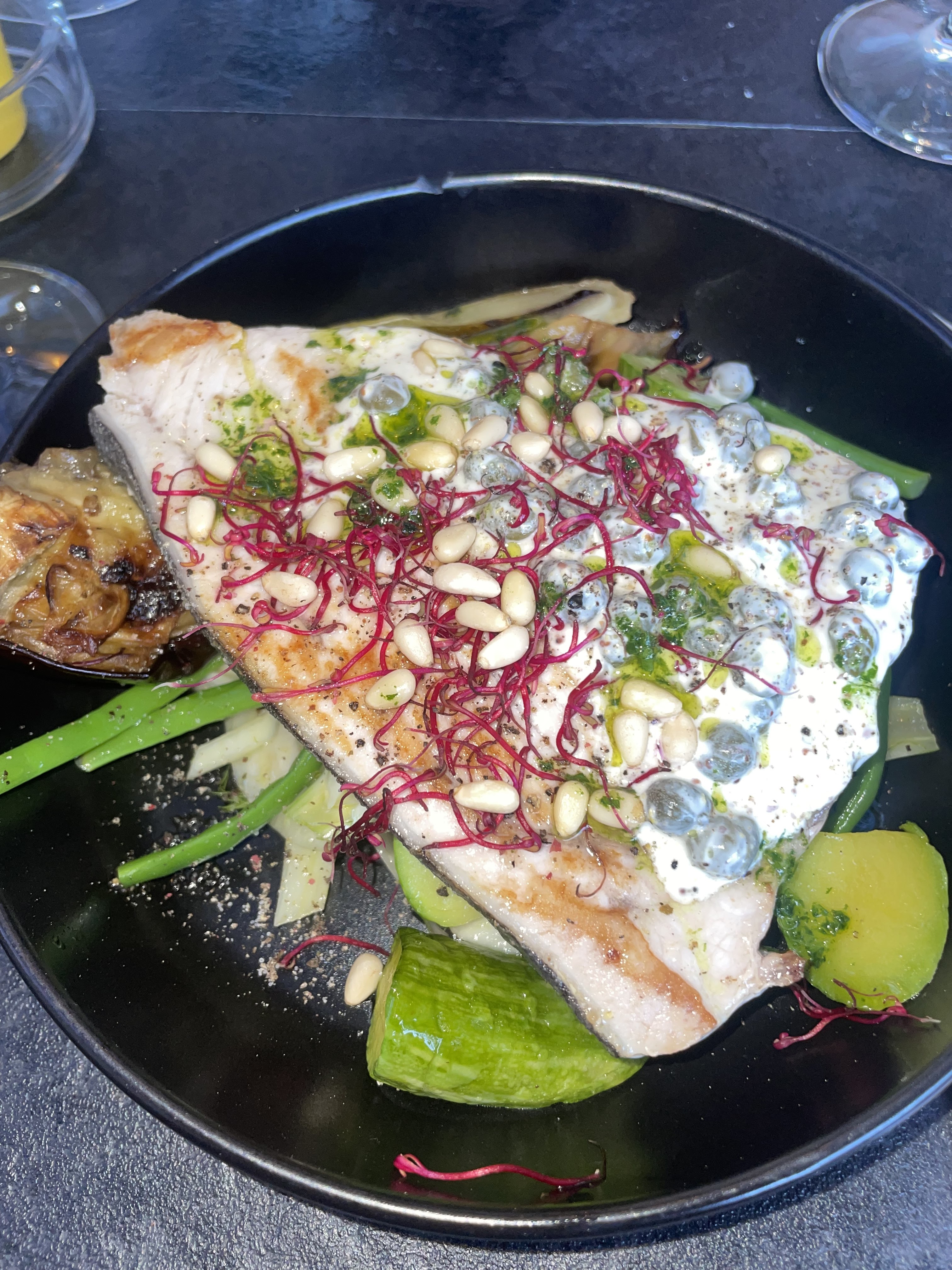 Très bel endroit, un beau choix de vins. Si vous mangez dehors côté balcon, vous profiterez d'une vue imprenable, il est possible de manger à l'intérieur et à l'extérieur côté entrée du restaurant. La nourriture était excellente, nous avions un plat de poisson et un plat de viande, tous deux appétissants. Le personnel est très gentil et très efficace, même si le restaurant était presque plein, ils ont très bien pris soin de tout le monde. Quoi d'autre ajouter sinon merci pour la belle soirée
