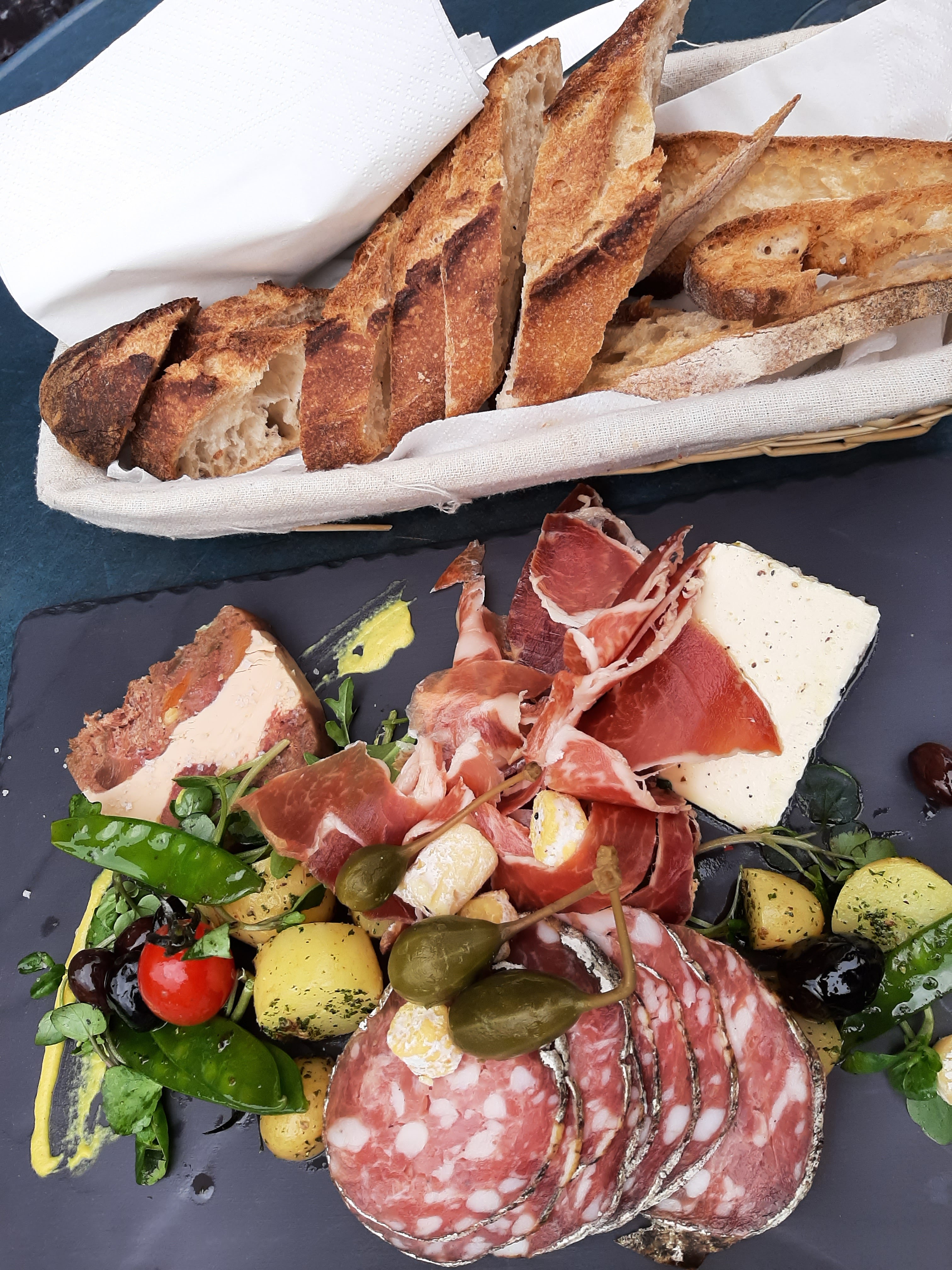 Très bons vins, les assiettes de charcuterie et fromage sont des œuvres d'art