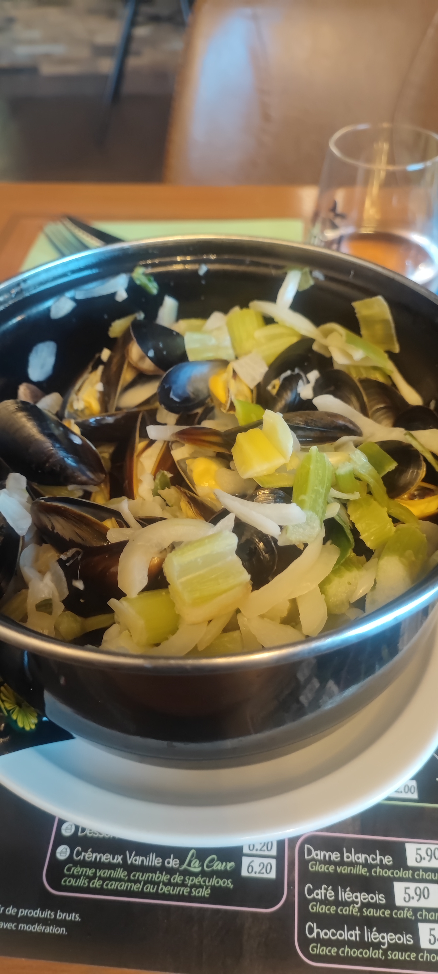 Soirée moules entre grands-parents et petits-enfants. Moules marinières cuites à l'eau, oignons et céleri pas cuits, vin blanc inexistant. Le cuisto s'excuse par l'intermédiaire des serveurs et nous offre les cafés. Nous les attendons encore. Nous ne recommandons pas cet endroit