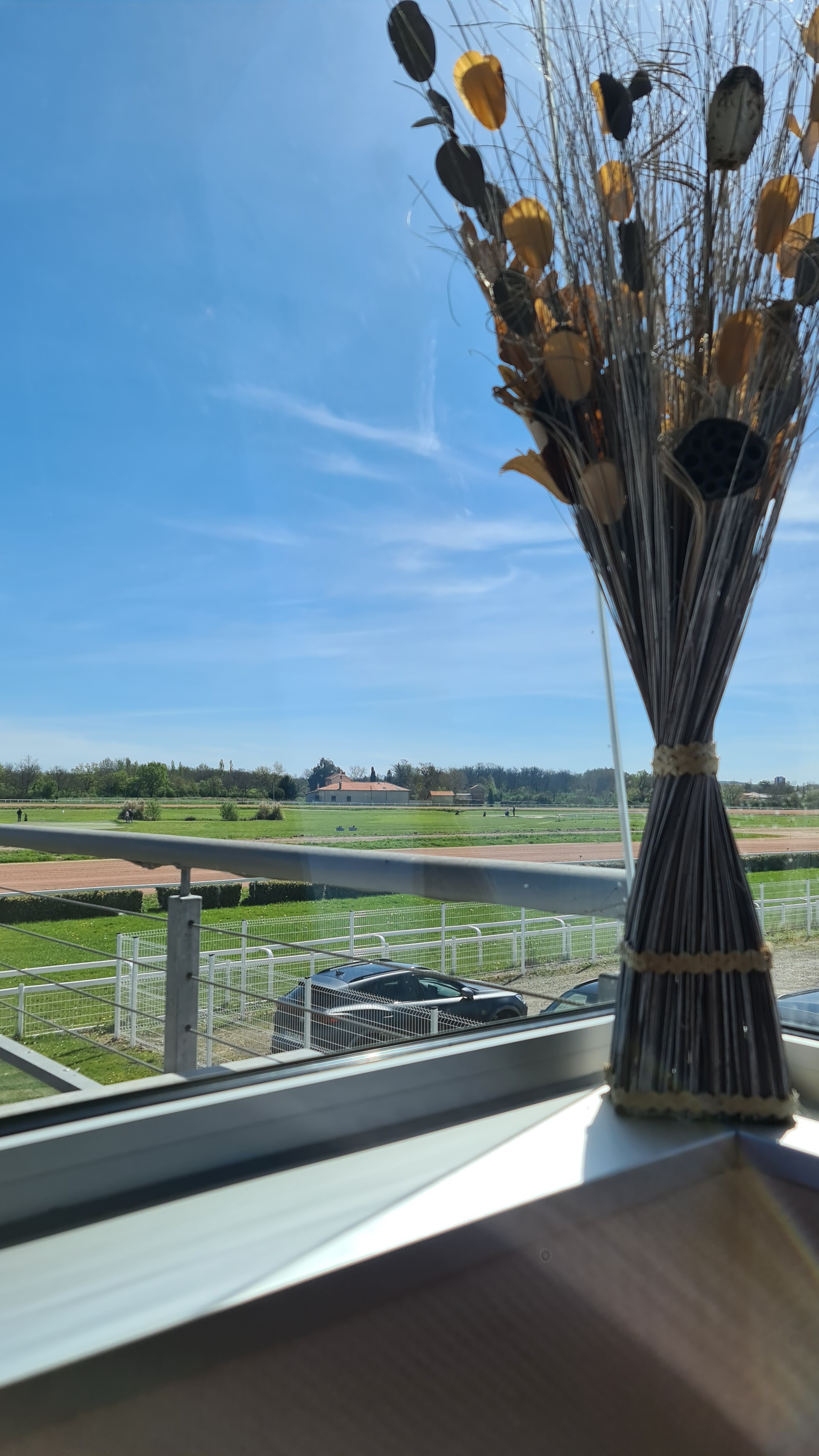 L'accès de cet établissement convient parfaitement aux personnes à mobilité réduite. Parking, ascenceur, etc. La salle du restaurant, moderne agréable & chaude, est située au 1er étage et offre une vue magnifique sur le champ de course. Pour les jours ensoleillés et chauds une terrasse permet de déjeuner en extérieur. L'accueil du personnel de salle est chaleureux, le service sympathique et rapide. Une carte offre des mets d'un très bon rapport qualité/prix, et pour ne rien gacher une très belle carte de vins vous est proposée. Nous nous sommes régalés et recommandons chaudement ce restaurant ouvert également le dimanche midi. Nous avons d'ores et déjà retenu pour le mois de mai 2024 afin d'assister aux courses à partir de 14 h.