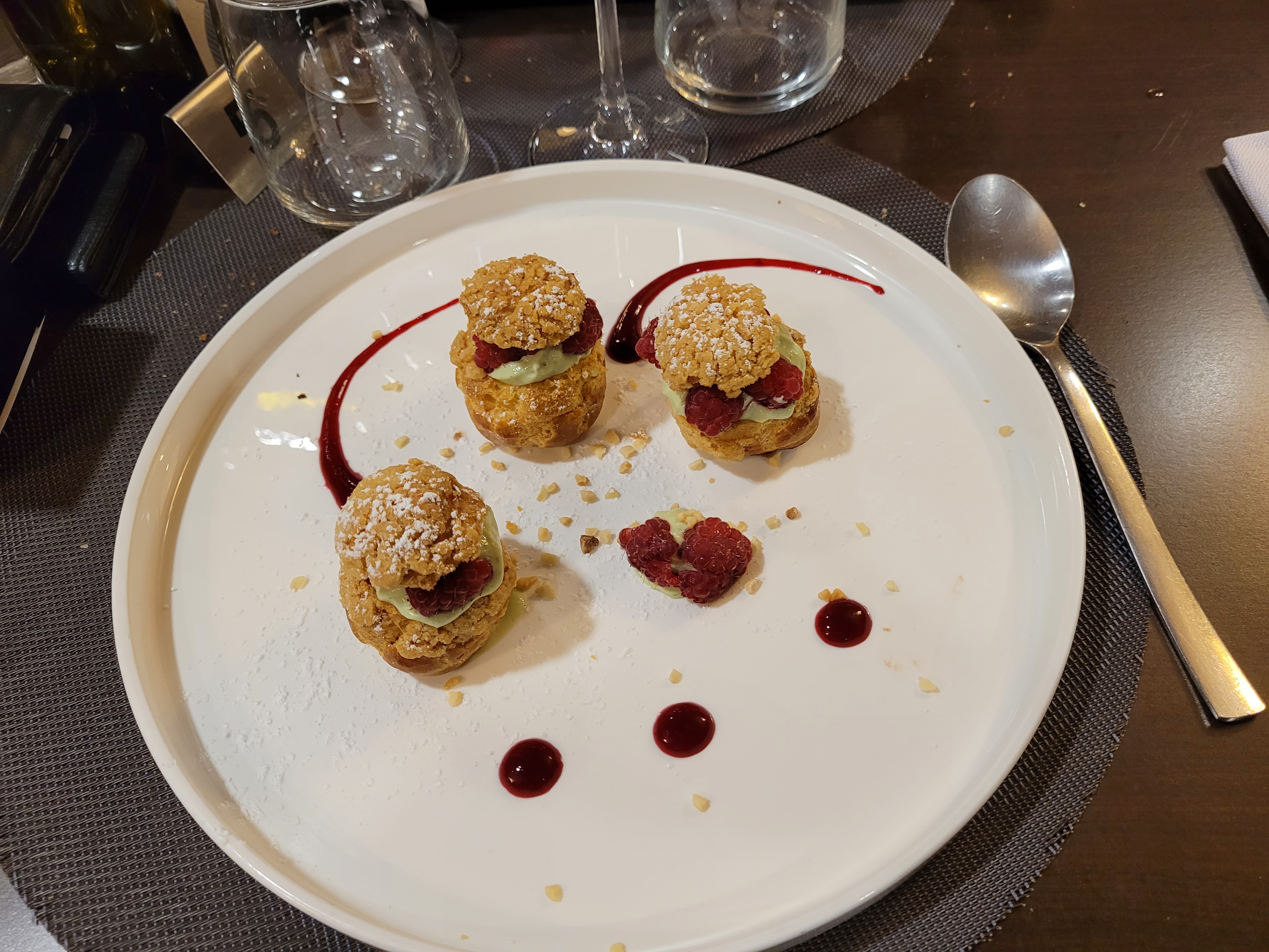 Nous sommes allé hier avec ma compagne pour nos 9 ans que dire que du bon sur les plats gouteux rafiné tout etait bon de l'apéro avec leur tapenade maison ensuite par la mise en bouche une dinguerie plus l'entrée plat dessert etc que du bonheur du début à la fin 😎