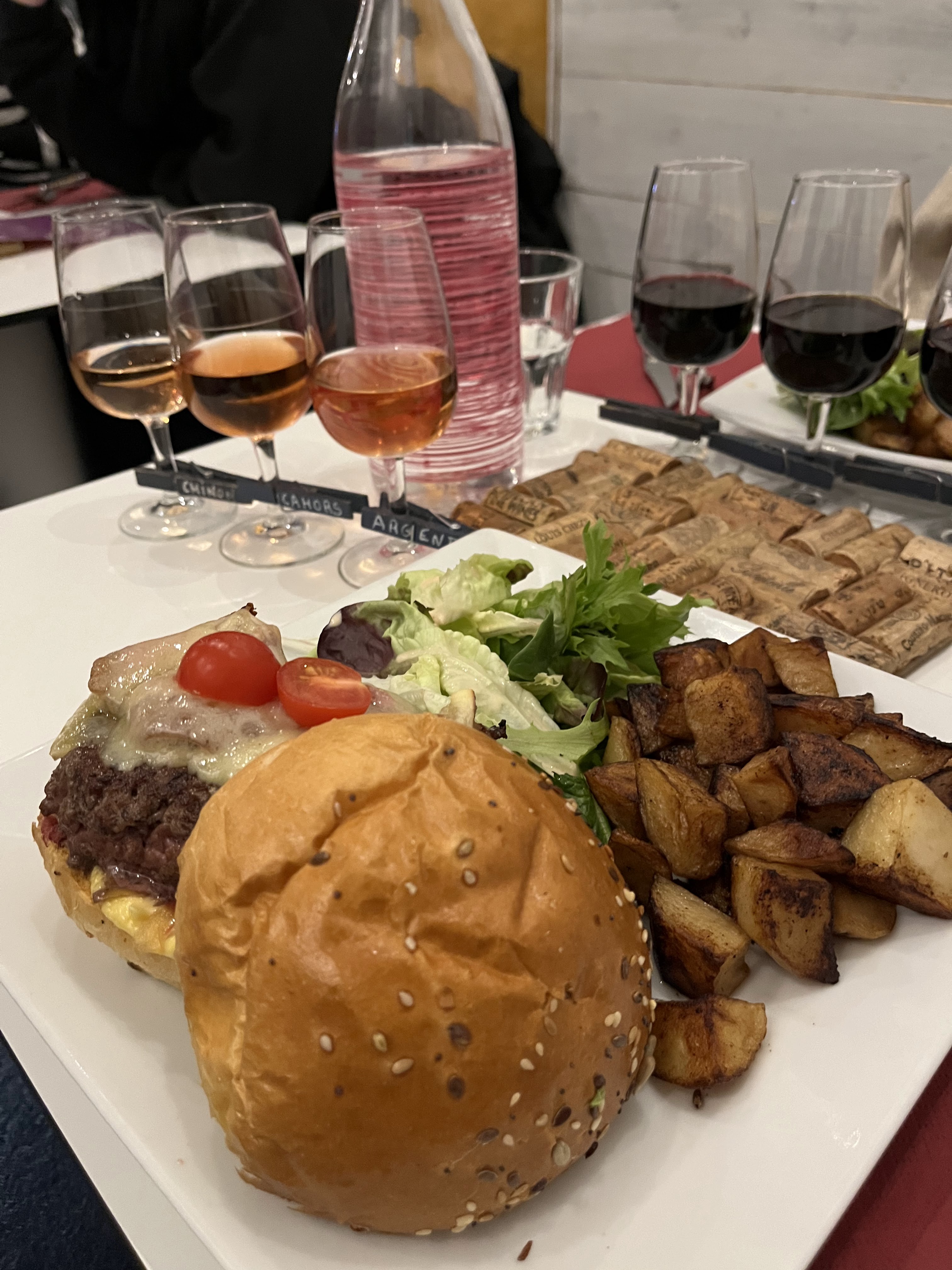 Très bon vin et très bon repas, le burger au canard est super bon! L'amabilité du patron et de la serveuse laisse à désirer...