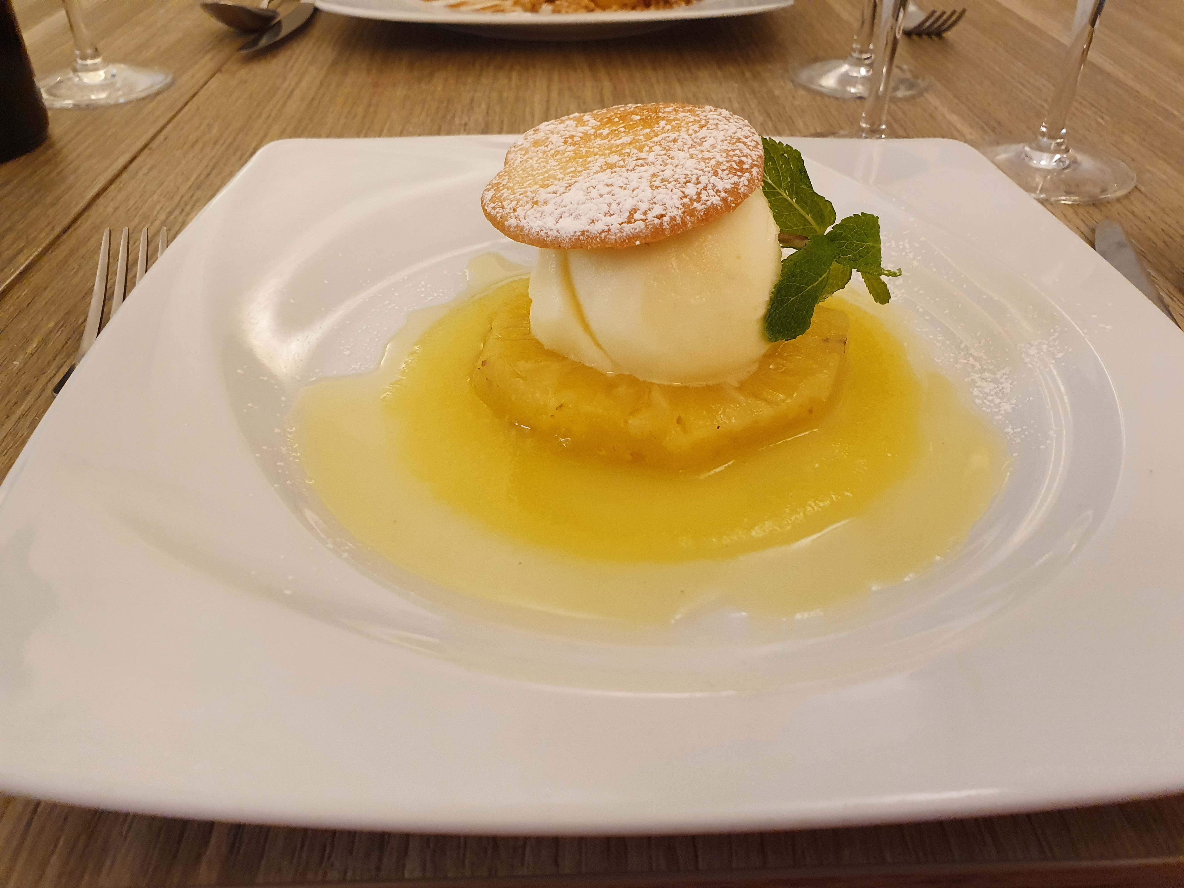 Excellent ! La crème brûlée foie gras cèpes est incroyable, l'ananas poché succulent et la mousse de citron une tuerie.... très bon rapport qualité prix. Les portions sont presque trop grandes ! On aurait envie de tout goûter 😊 et merci pour le biscuit bon anniversaire 🎂