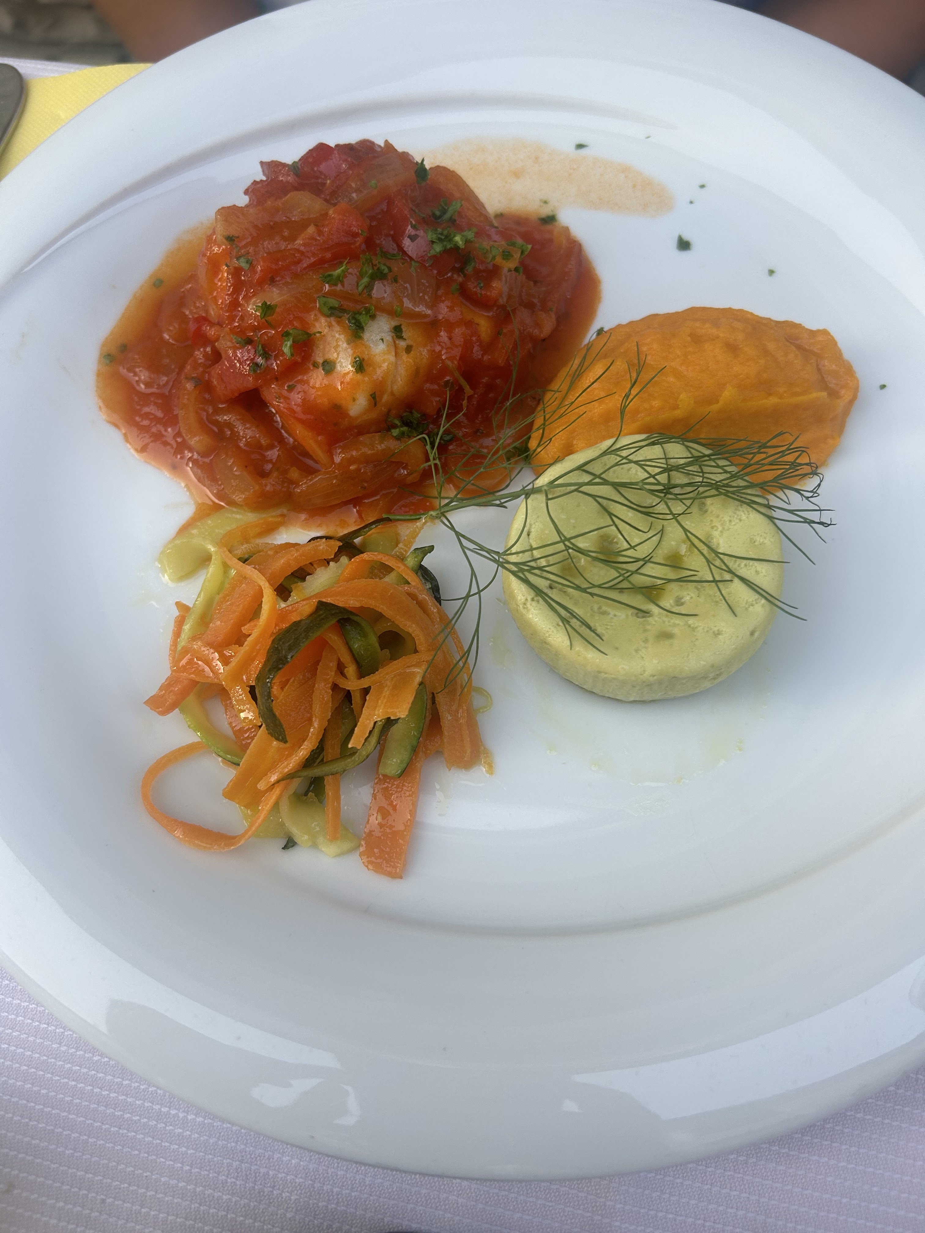 Nous avons trouvé les mets délicieux. Sans trop de chichis mais simplement beau et bon. Tous les plats goûteux. Un moelleux au chocolat très bon. Je vous le conseille. Les prix sont exact et pas exagéré.