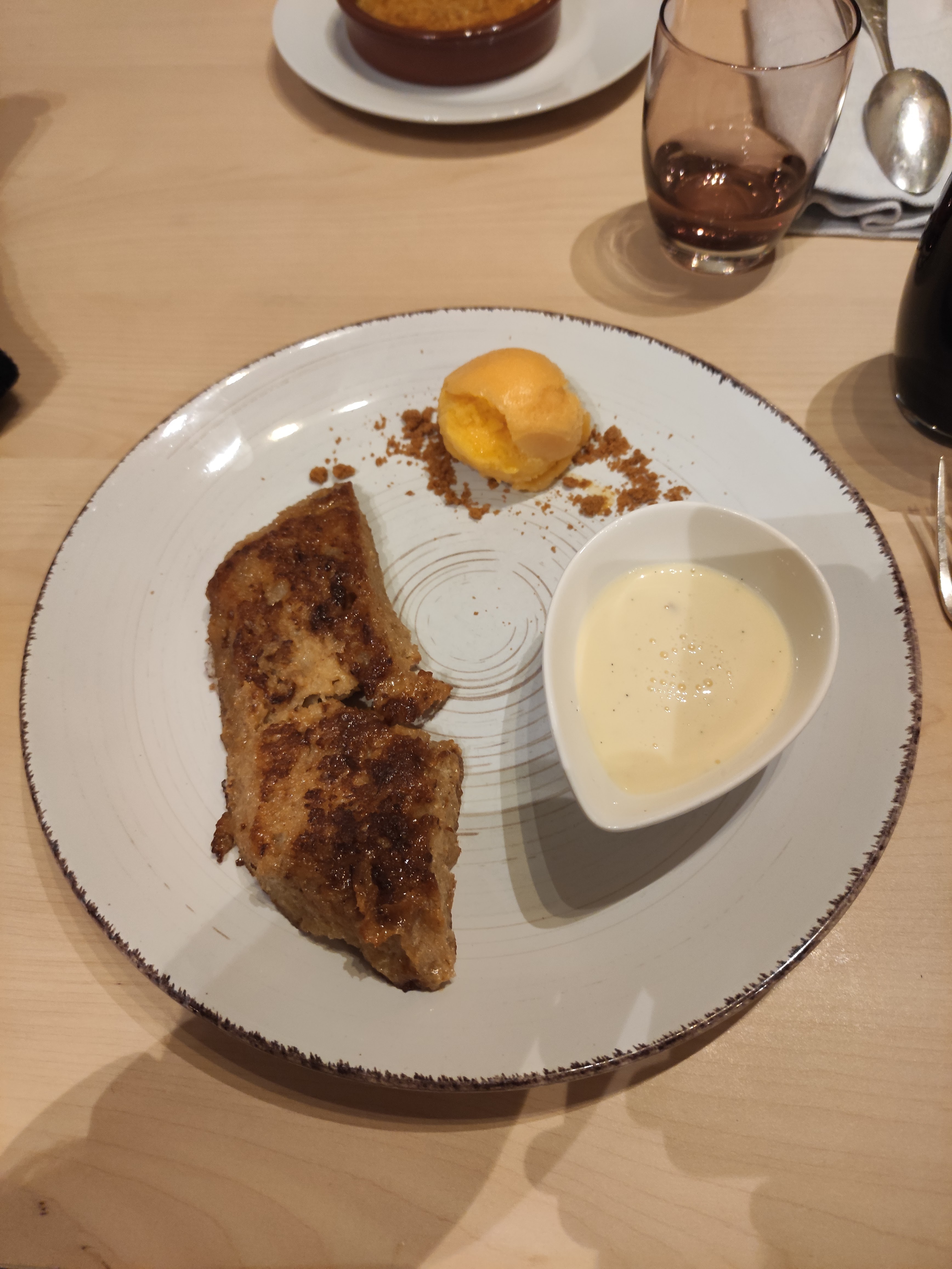 Très bel accueil. Une carte cohérente et abordable avec de bons produits. Un cadre chaleureux entre rustique et modernité. Seul petit bémol ( minime ) les frites auraient pu être un poil plus cuites. Coup de cœur sur le dessert crème catalane / verveine.