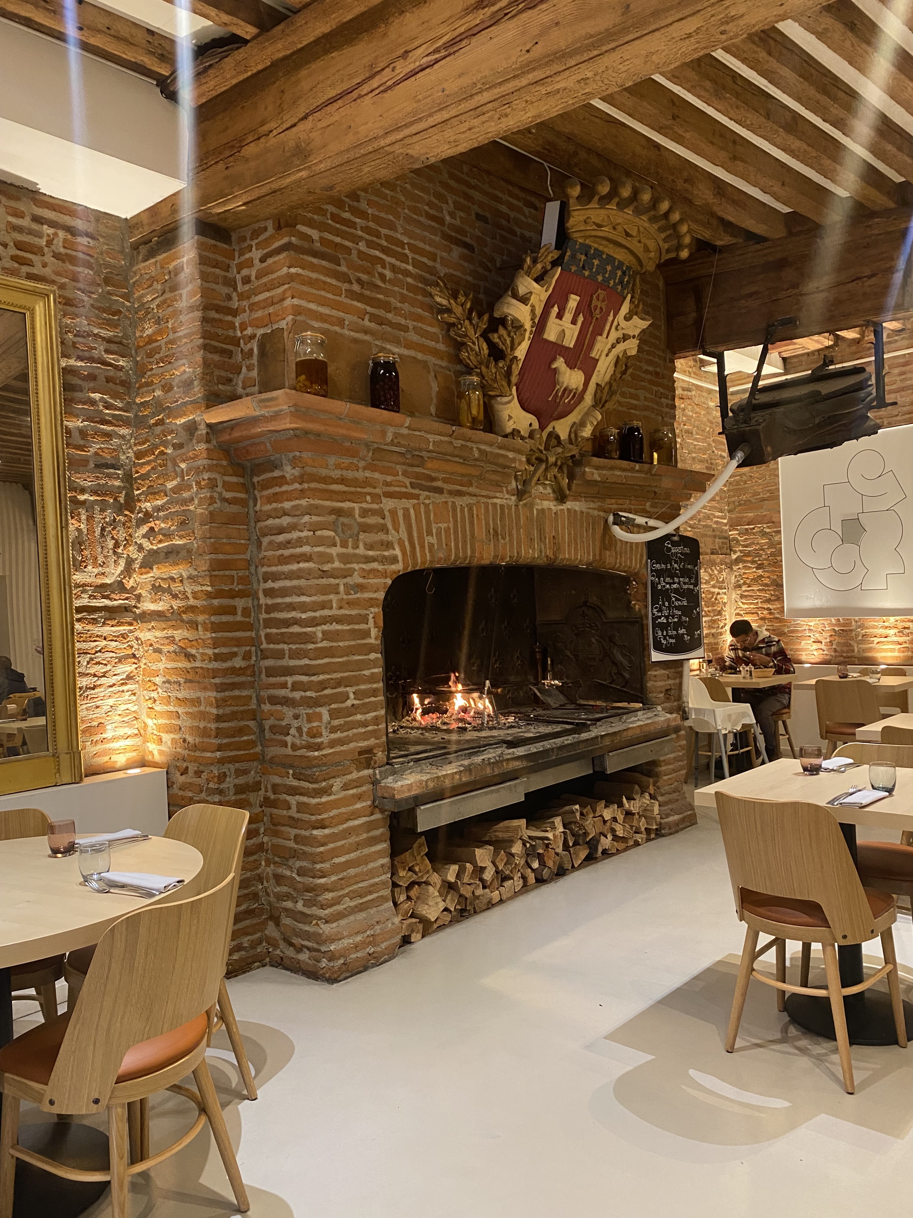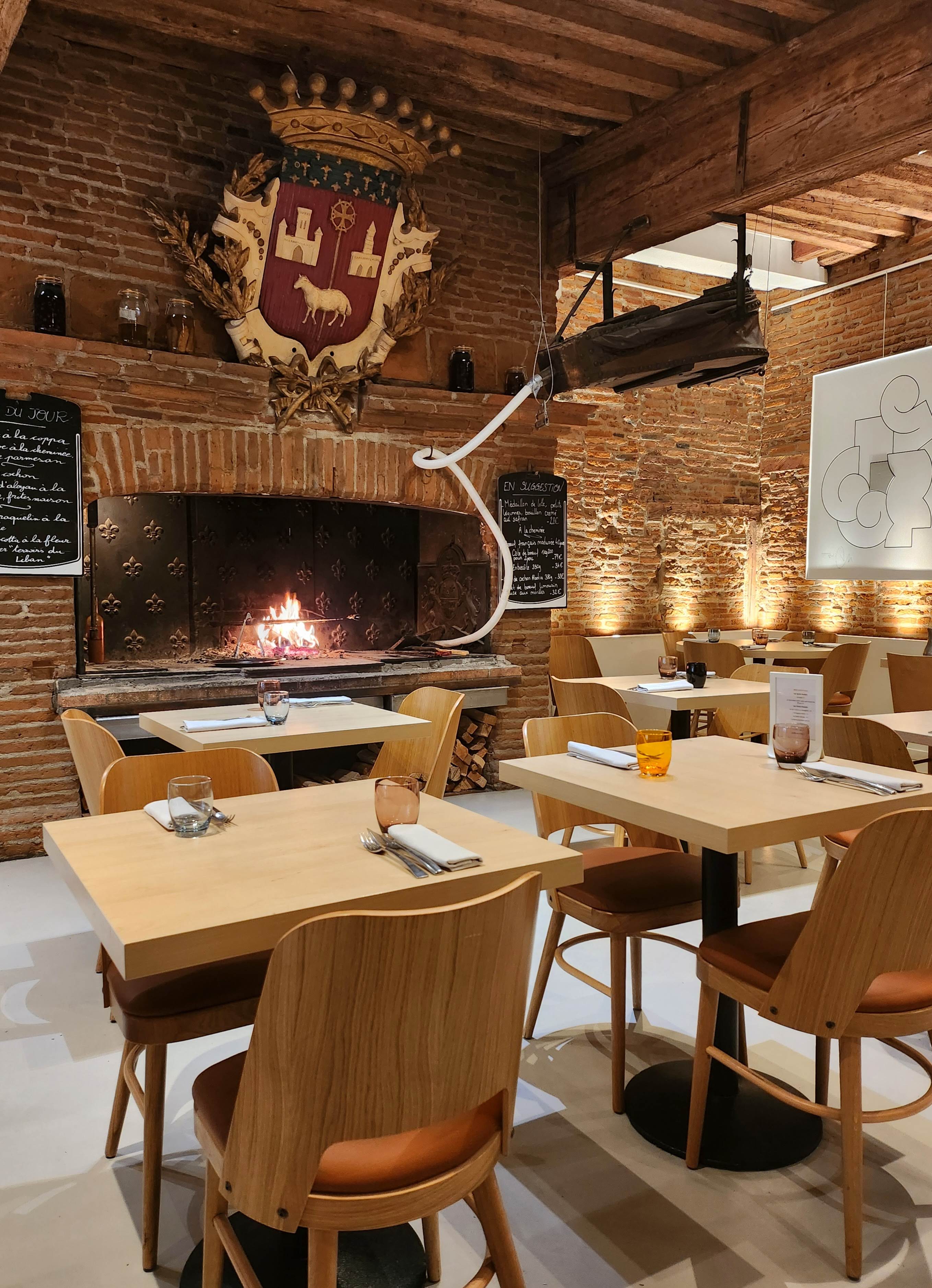 Cadre chaleureux avec la cheminée et les grillades au feu de bois ainsi que les belles briques historiques de Toulouse. Service de qualité par Laurent qui a été très serviable, merci encore. La cuisine est bonne, j’aurais apprécié une carte de grillade plus étoffée mais la qualité est au rendez vous 🙏