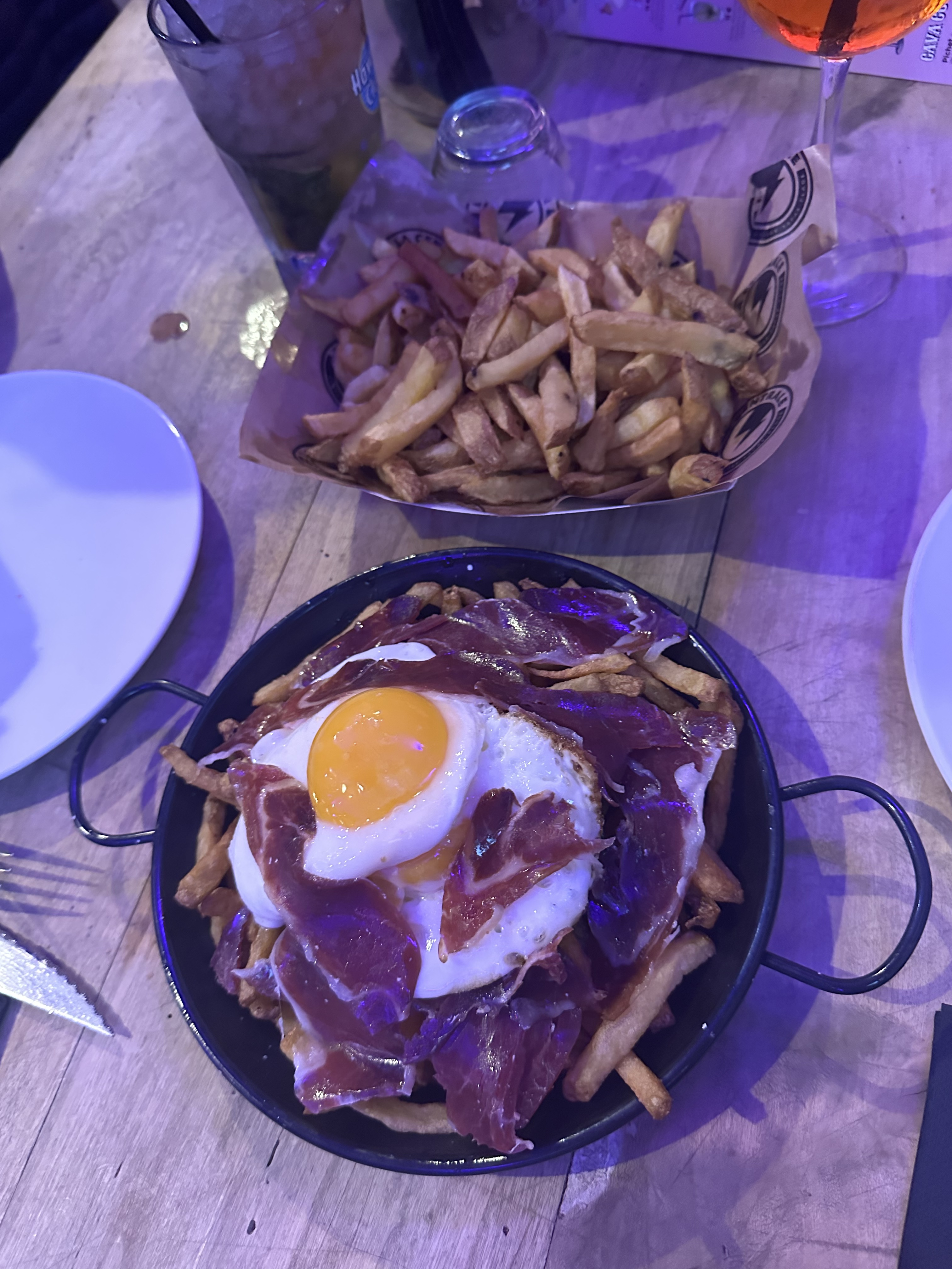 Alors je suis partagée en mettant cet avis. Nous sommes des habitués de ce lieu. Mais cette fois l’accueil est déplorable. Nous avions réservé pour regarder un match sur “écran géant” comme ils le prétendent. Autant vous dire que la table était derrière un arbre, et qu’on ne voyait pas le petit écran. Après avoir râlé, et ils nous ont expliqué que des clients avaient réserver y’a un mois (sûrement leurs amis) ils nous ont avancé d’une table. Et ensuite elle est allée rigoler et chuchoter avec le responsable de salle. Comportement de gamins irrespectueux envers leurs clientèles. Bref. Ils ont mis à jour la carte des tapas. Pas une très grande réussite. La stracciatella était acide donc je pense périmé, ils ont fait des frites avec œuf vraiment à bannir de la carte. Les tenders sont bons mais on avait un insecte dedans. Le reste s’est plus ou moins bien passé 😂. Service par contre au top. Merci aux serveurs de ce soir la.