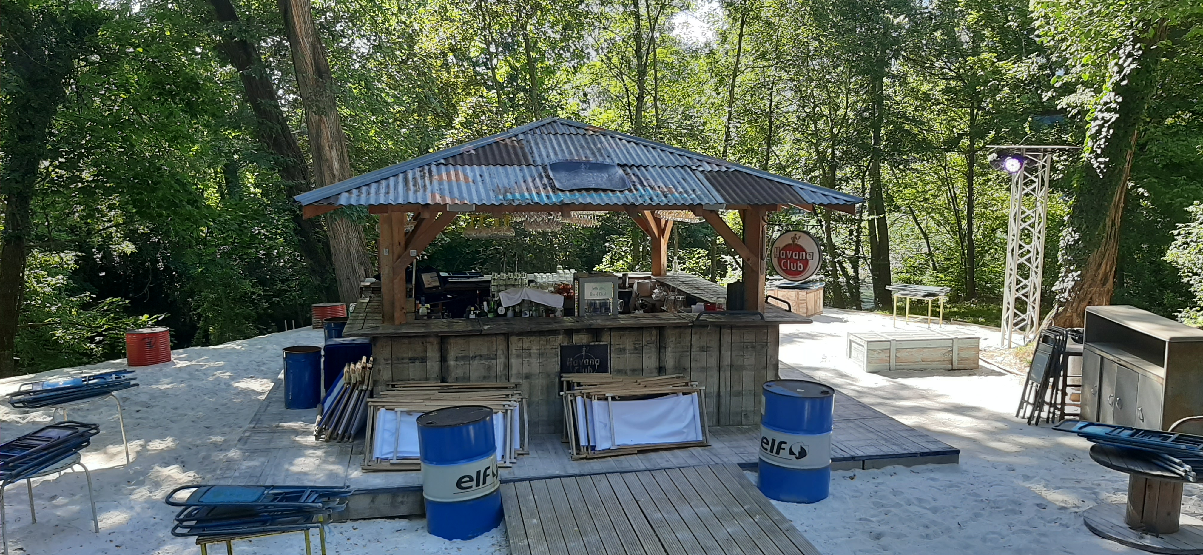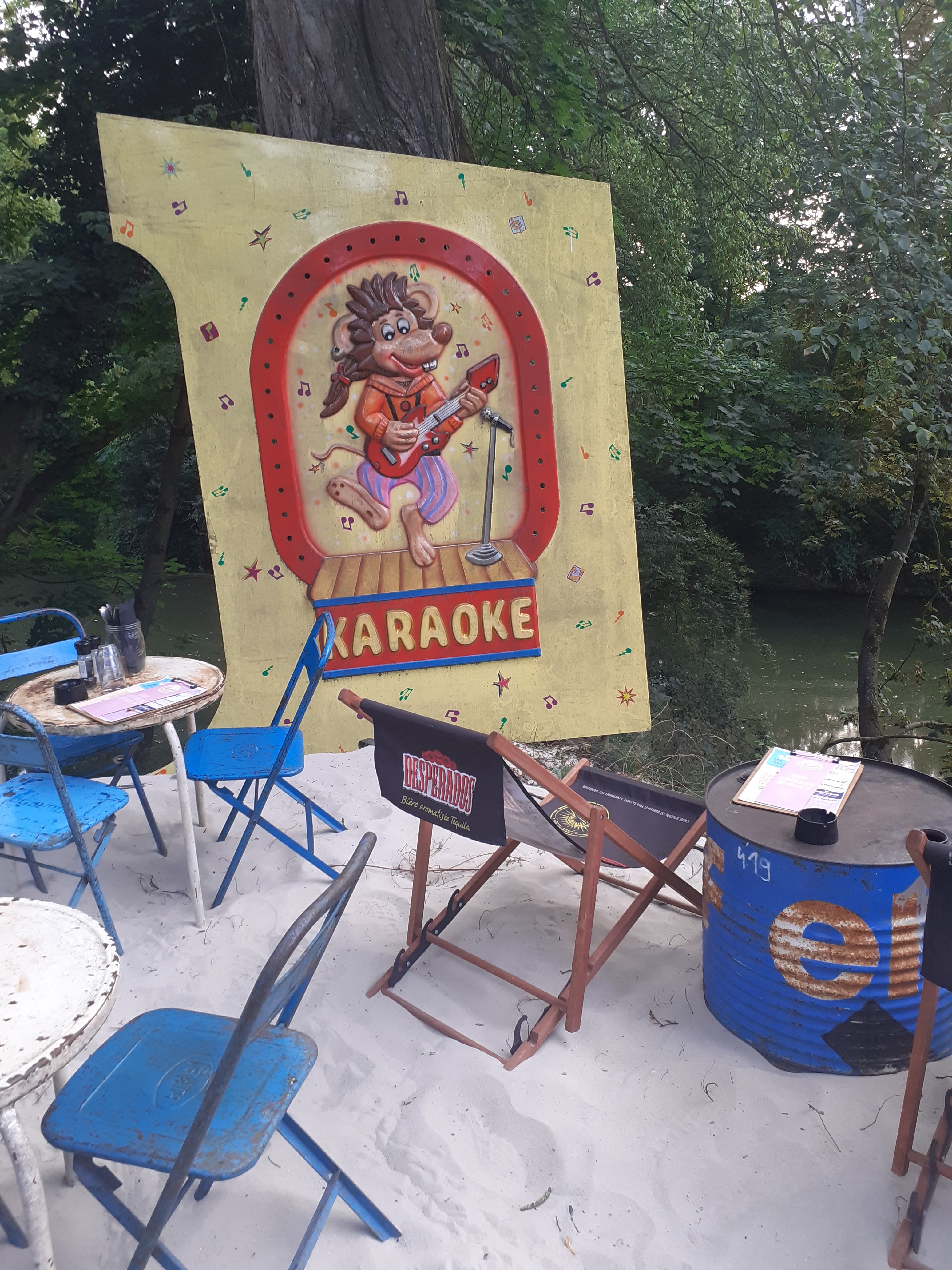 Ambiance au top ! Les décors sont supers, les meubles de la récup, de la musique, des lumières… En plein milieu d'arbres avec le fleuve qui passe à côté… Un poil cher pour ce que c'est, mais l'expérience en vaut la peine !