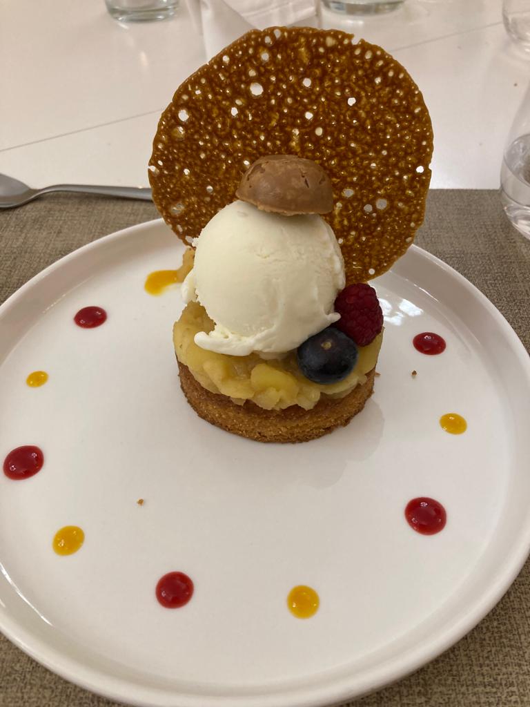 Un jeune chef parfait qui fait une cuisine raffinée et la jeune avec lui fait de jolies fleurs. La serveuse chaleureuse et qui en plus connaît parfaitement l accord mets et vin que dire du cadre juste superbe je recommande. Nous avons passé une super soirée