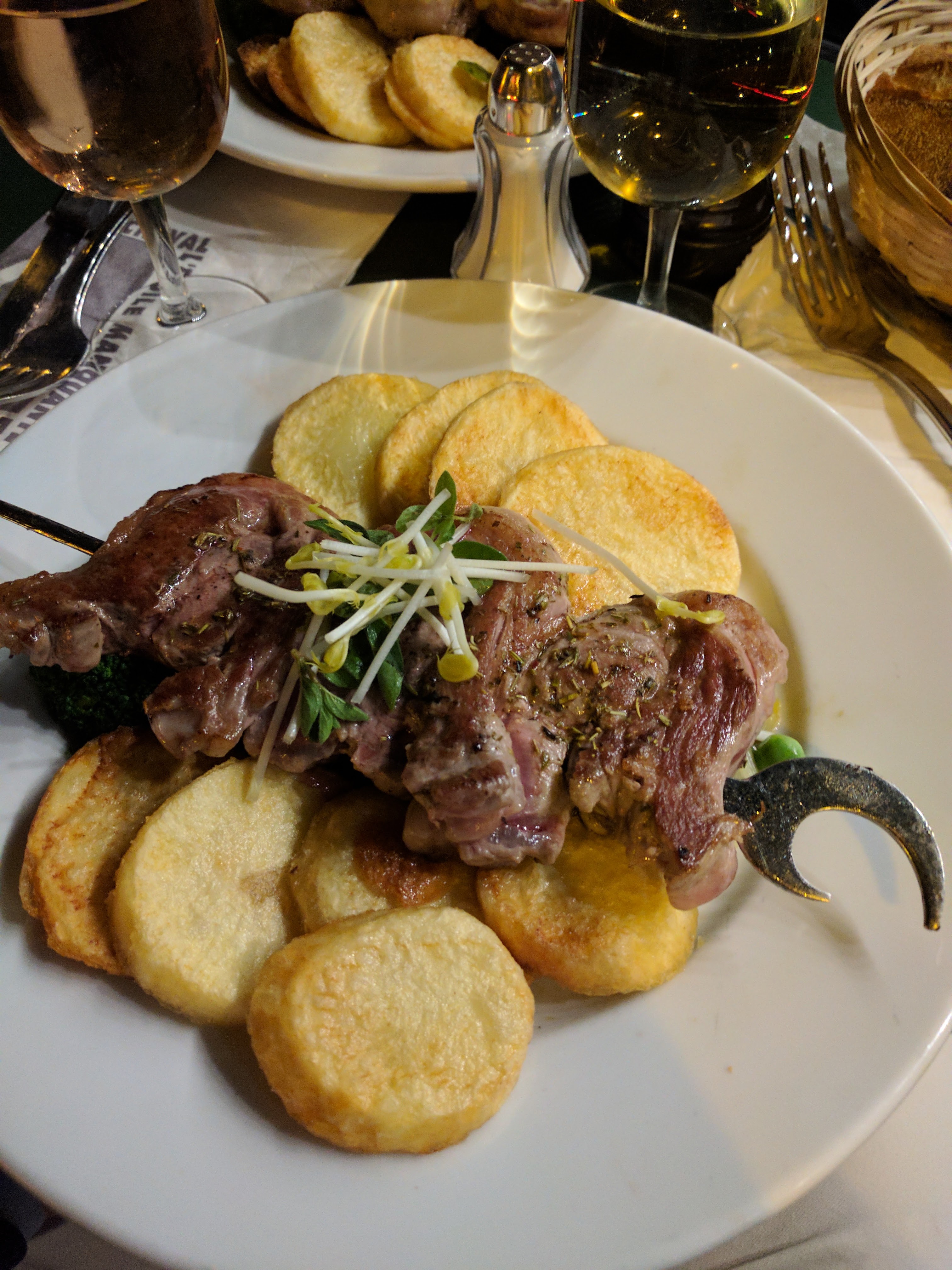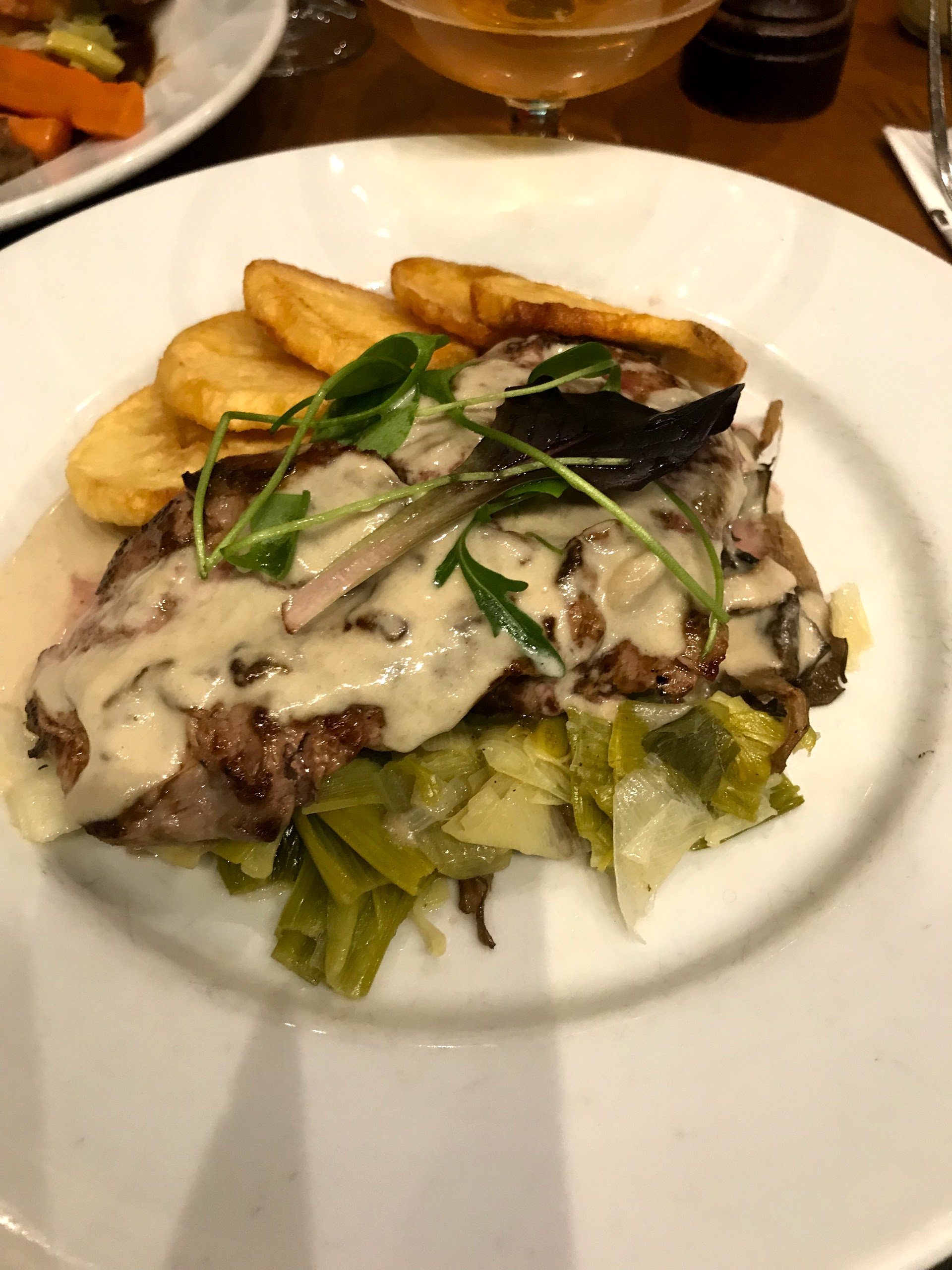 Des viandes à la cuisson parfaite mais des accompagnements qui font grise mine. Voilà comment résumer notre expérience dans ce restaurant. Trois pauvres patates et de la salade sans sauce dans une assiette. Un peu de salsifi et du poireaux en très petite quantité dans l'autre. Le tout pour un plat d'au minimum 25 euros. C'est cher, trop cher pour le bonheur minime que nous procure chaque bouchée. À noter cependant une bonne crème brûlée en dessert pour finir sur une bonne note.