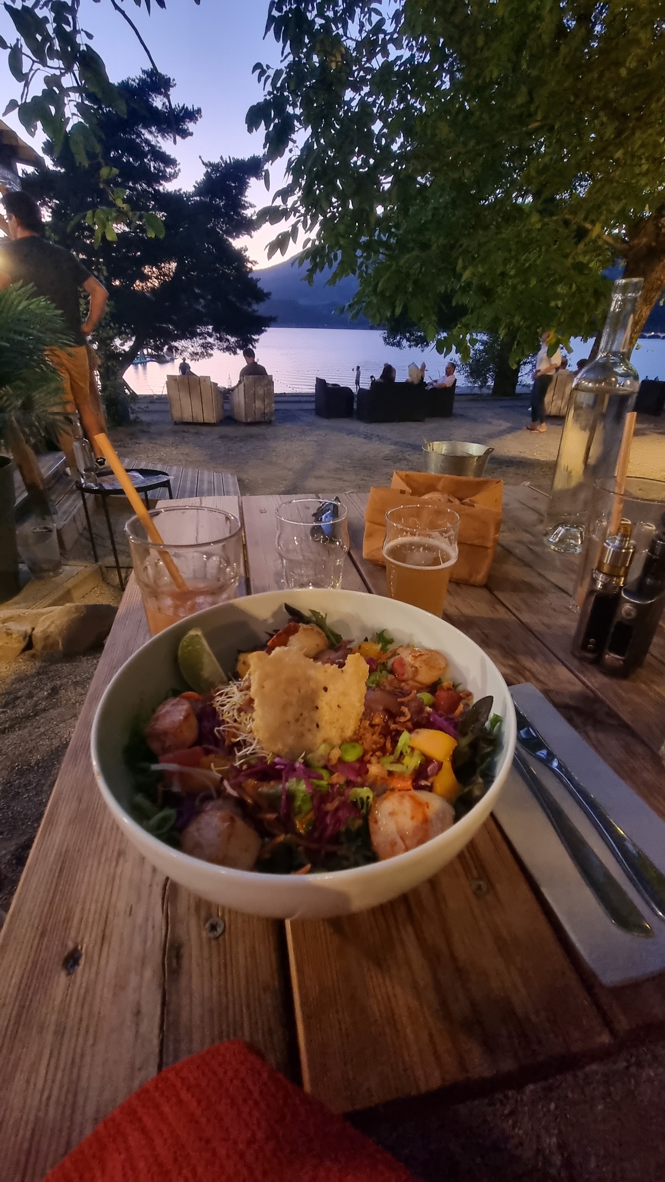 Bon accueil, bon service, plats simple mais avec une touche d'originalité et des saveurs asiatiques, des produits de qualité, un cadre incroyable avec vue sur le lac au coucher de soleil. Et sûrement la meilleure Pina Colada que j'ai bue de ma vie !
