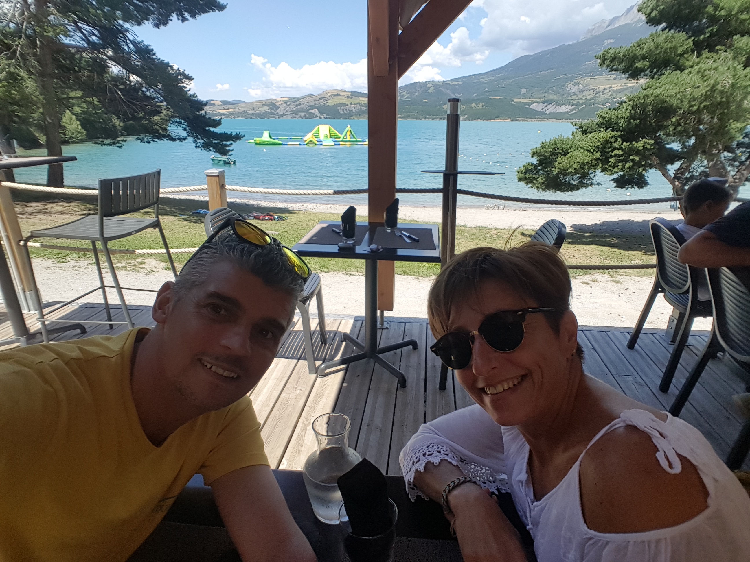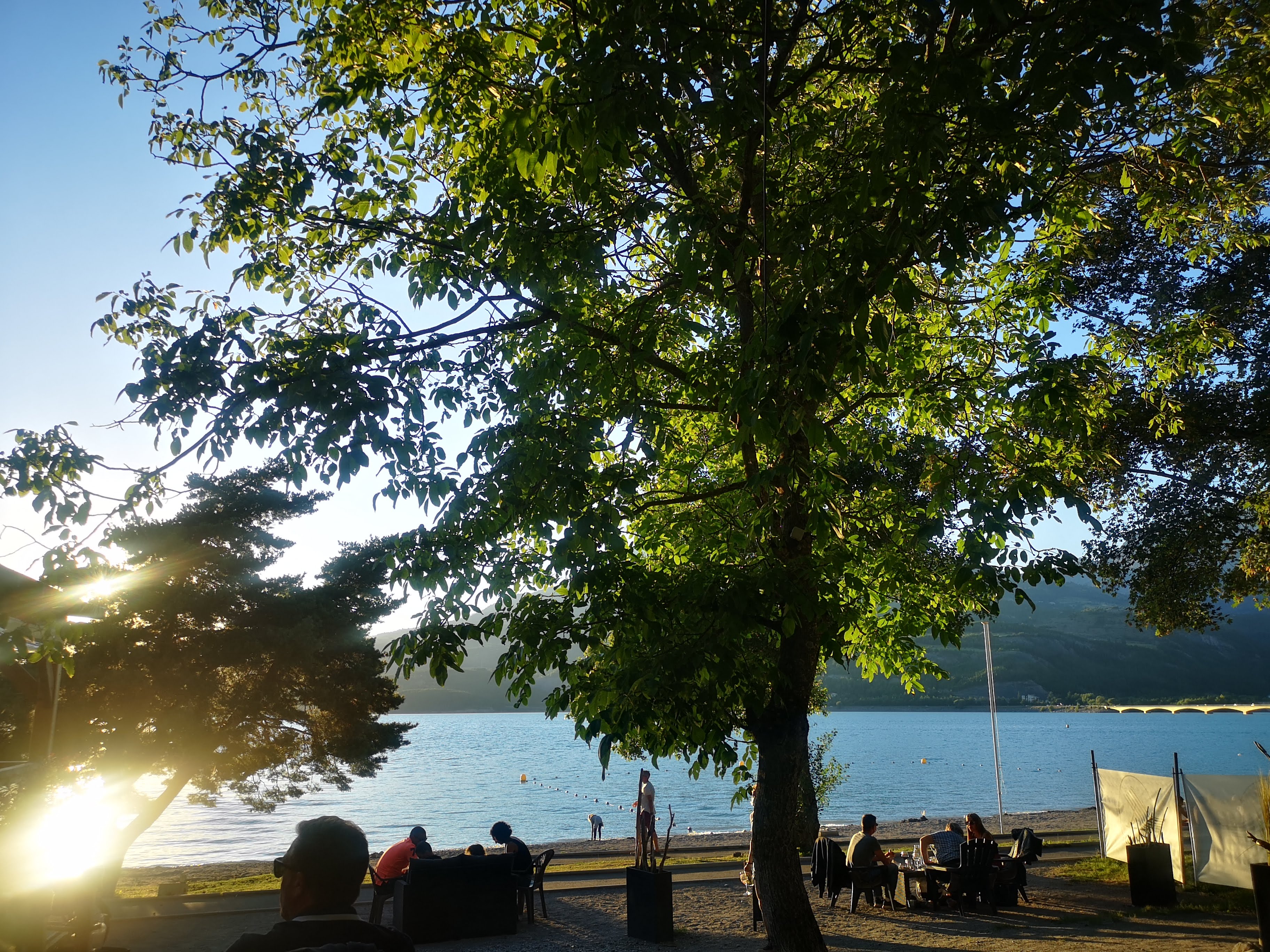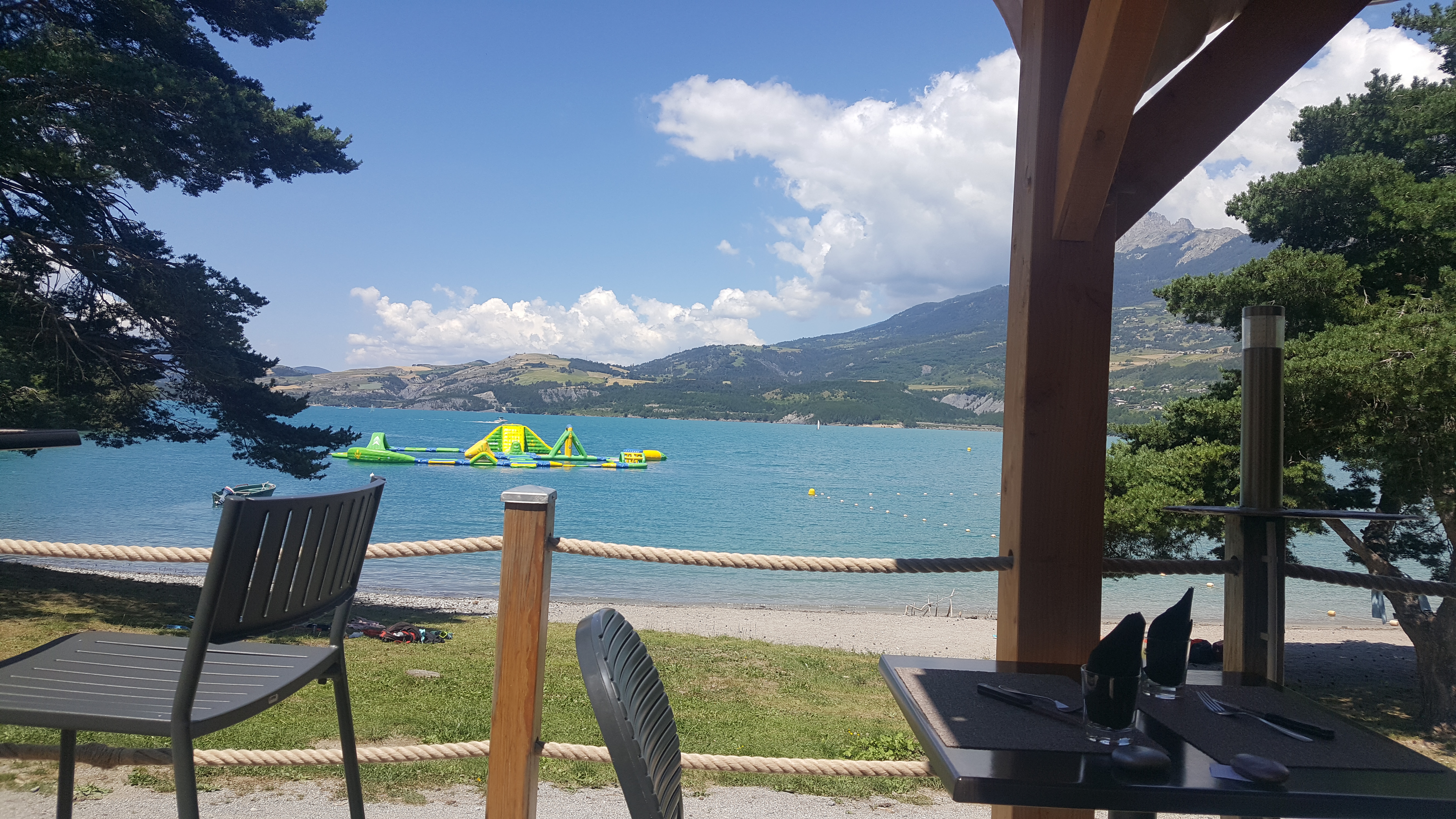 Passez le seuil de cette terrasse et vous entrez dans un autre monde fait d'une vue magnifique sur le lac, d'une ambiance apaisée et de mets composés avec un goût certain. Merci pour cette dernière soirée de vacances au bord du lac de Serre Ponçon.