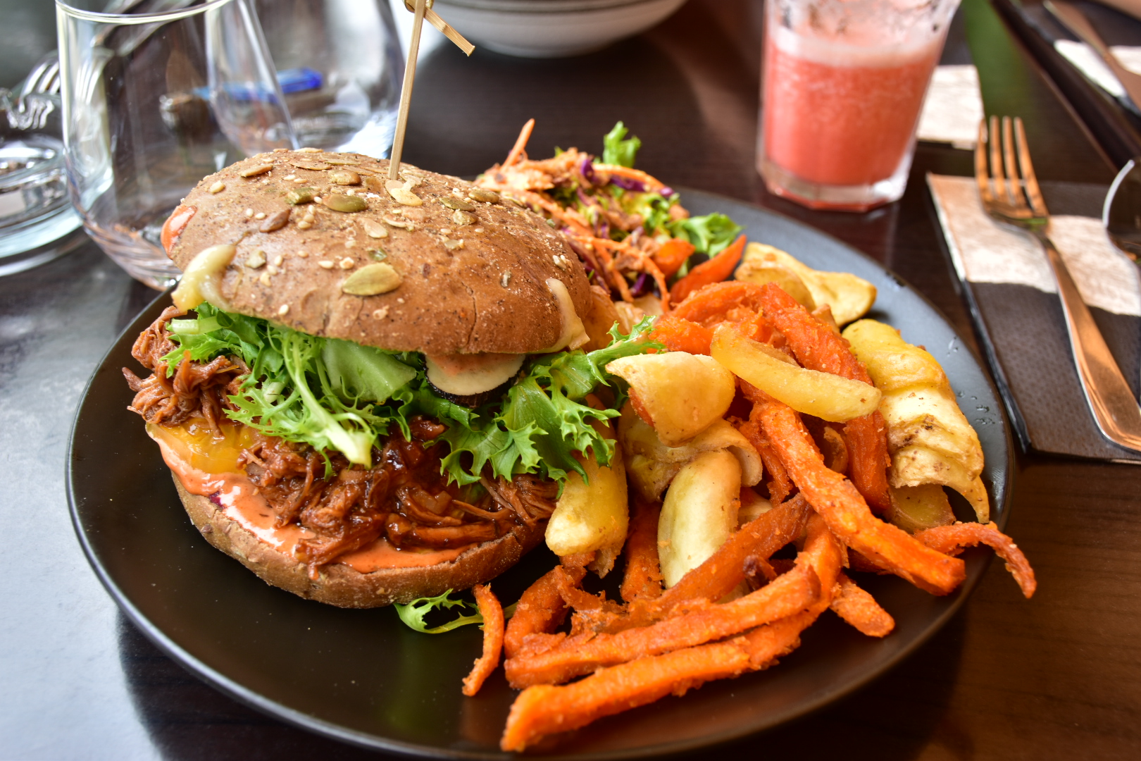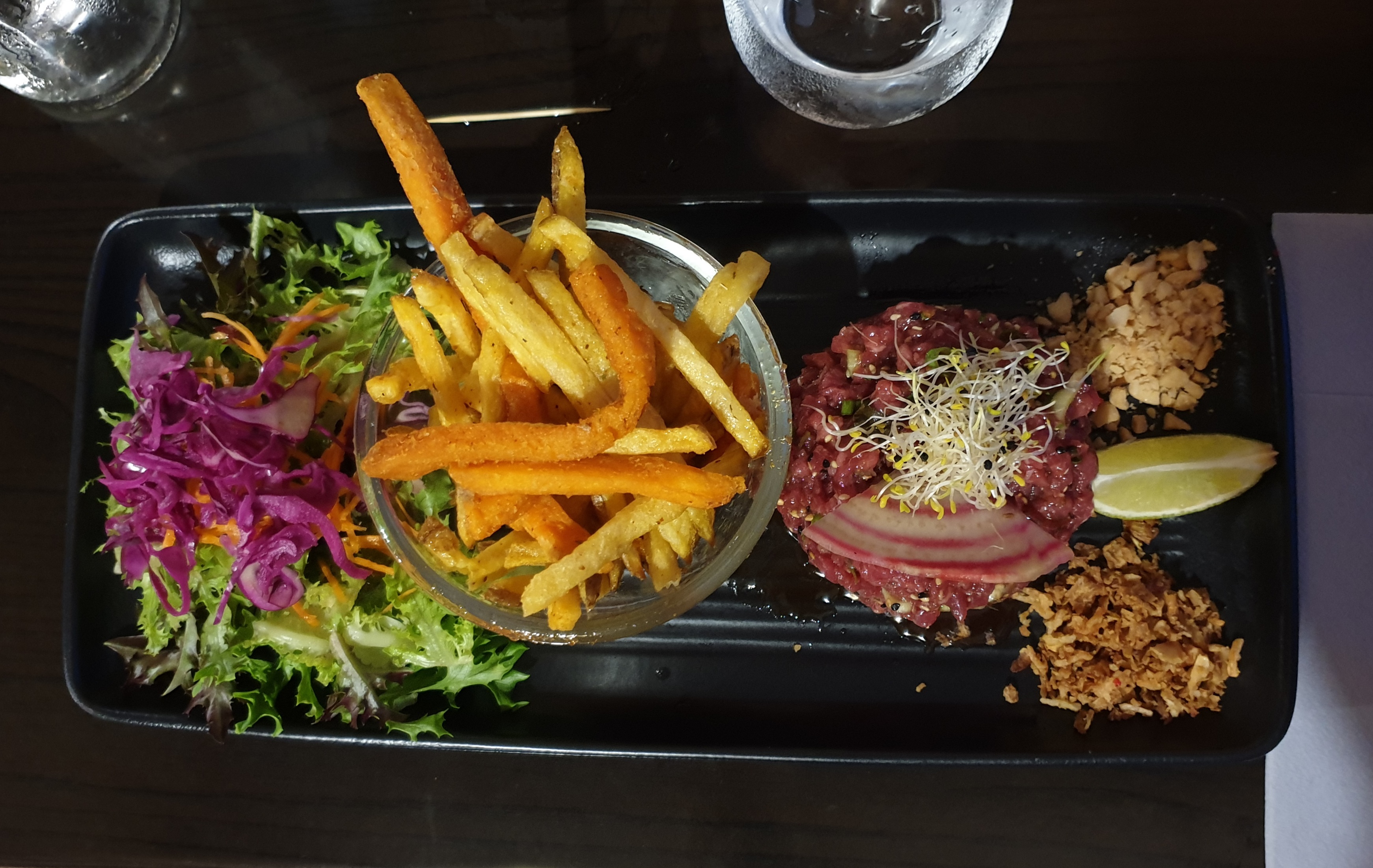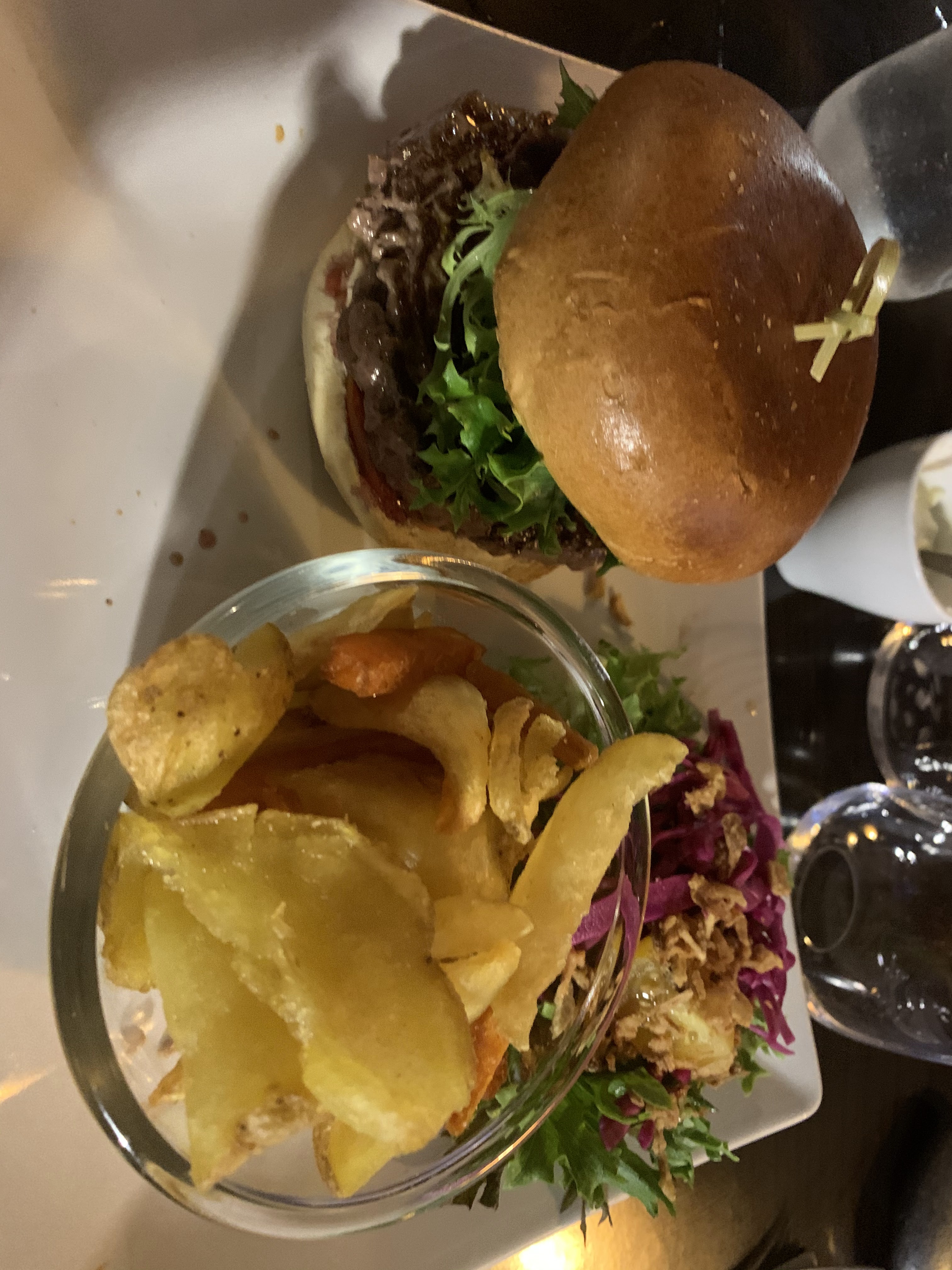 Cuisine visiblement faite maison. Belle présentation des assiettes . Un burger, comme je n'avais pas mangé depuis longtemps. Des frites maison de pommes de terre et de patates douces. Un service très pro et attentionné. Belle adresse